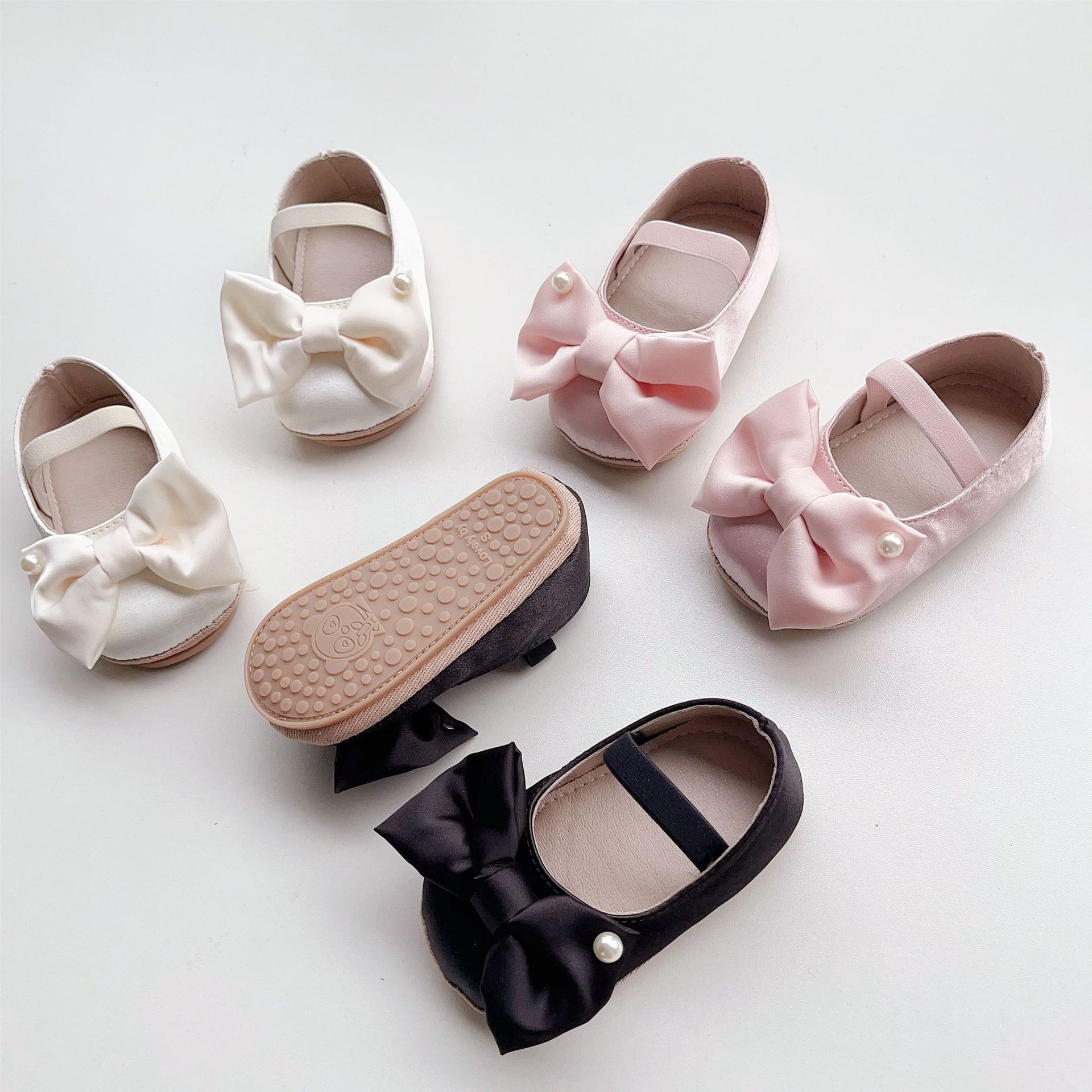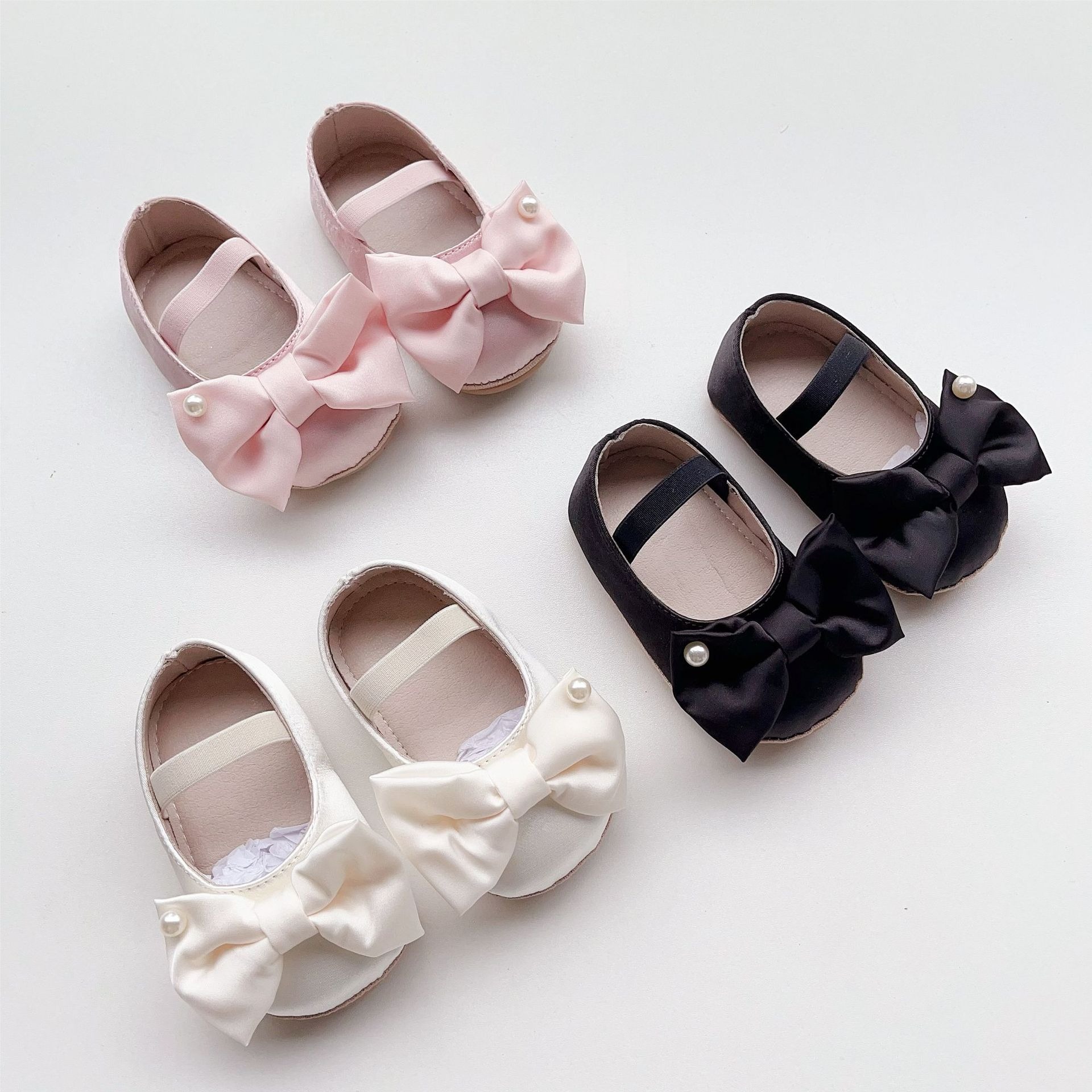 蝴蝶結緞面珍珠學步鞋