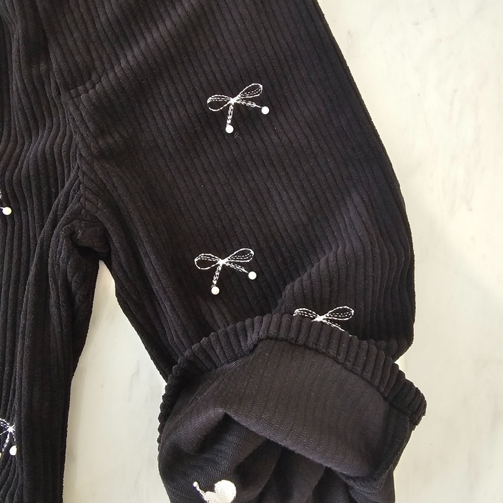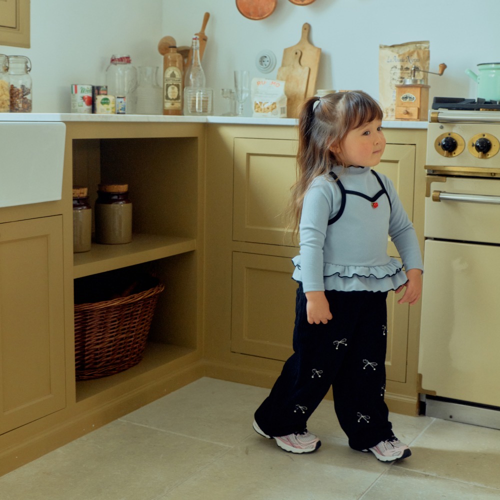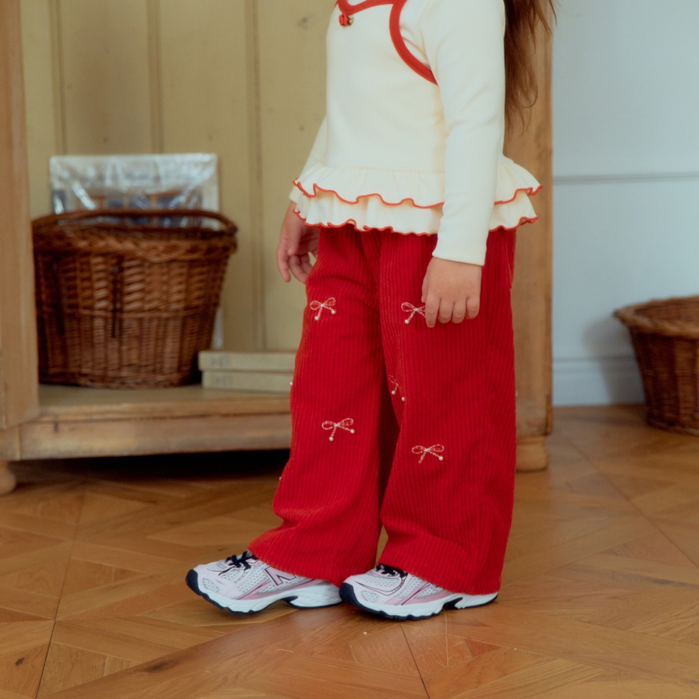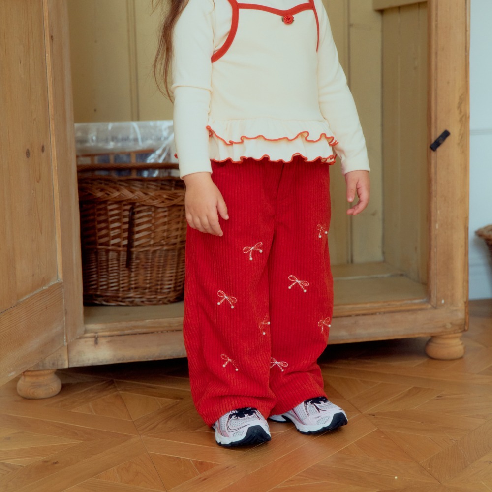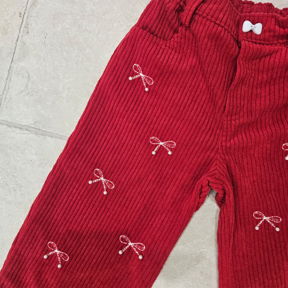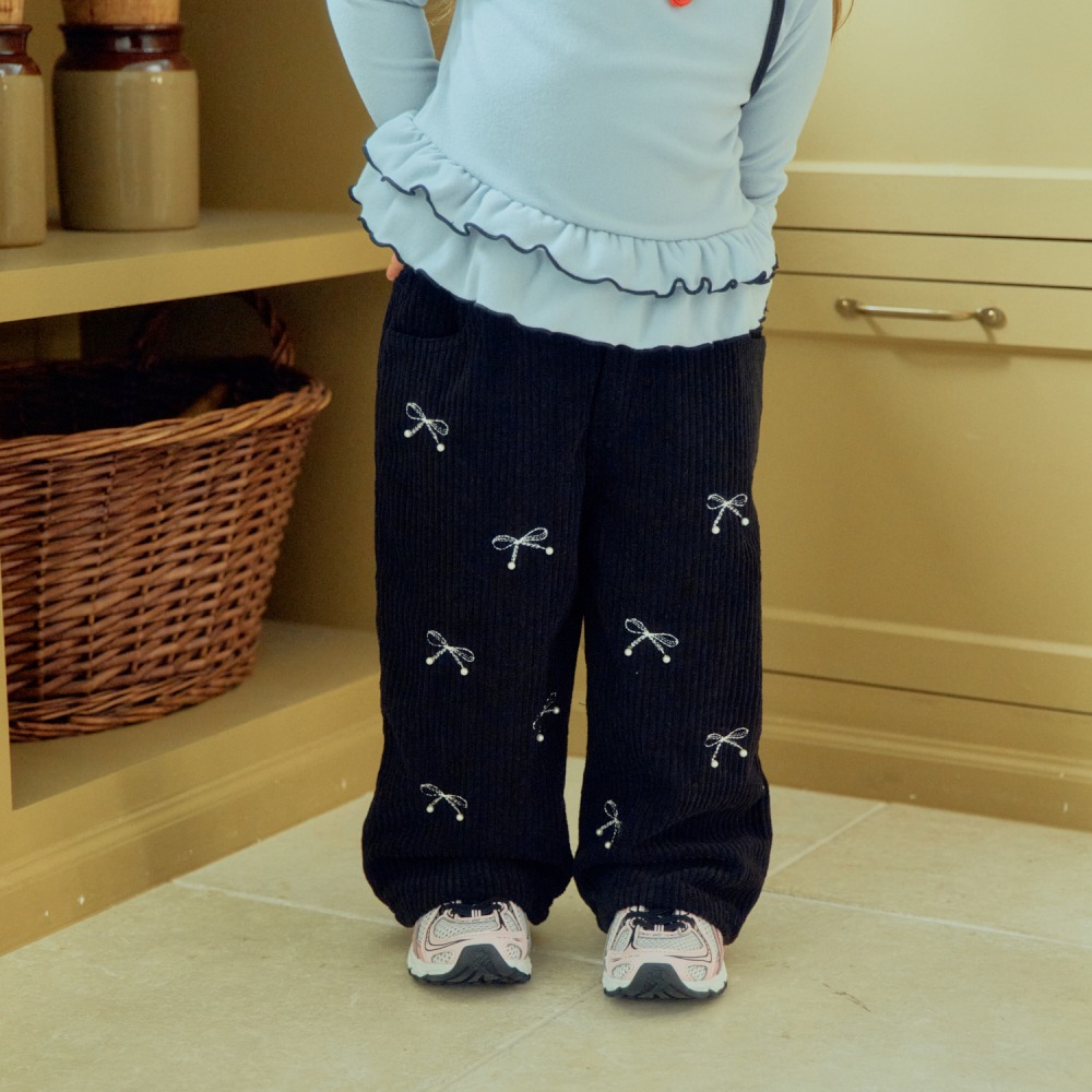 1st blue 02|(80-118cm) 2色燈心絨蝴蝶結直筒褲