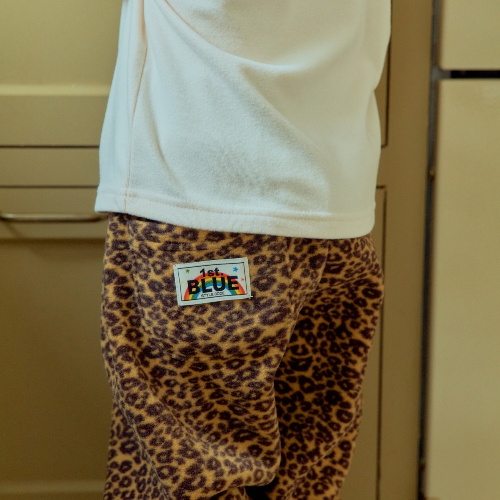 1st blue 07|(80-118cm) 2色豹紋起毛縮口長褲