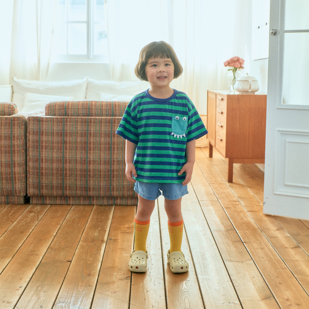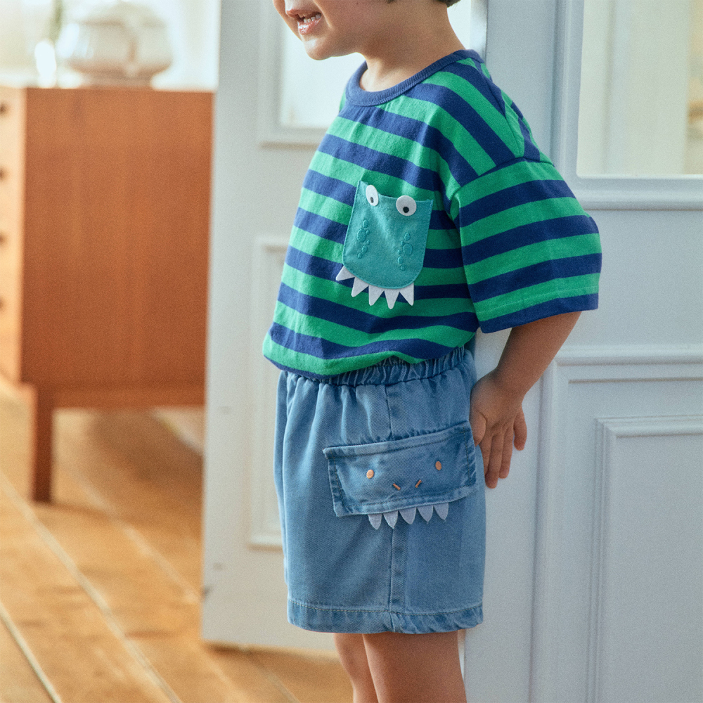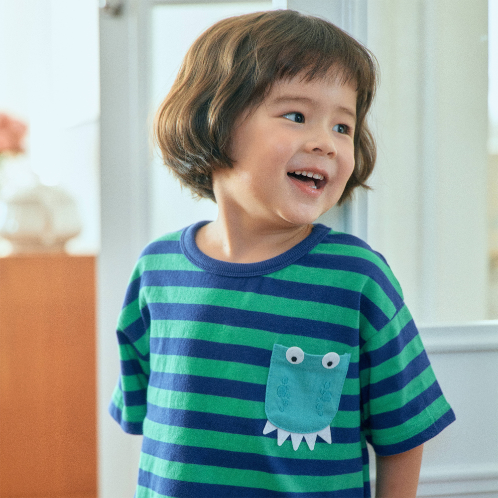 1st blue28|(~93-118cm) 恐龍口袋條紋上衣