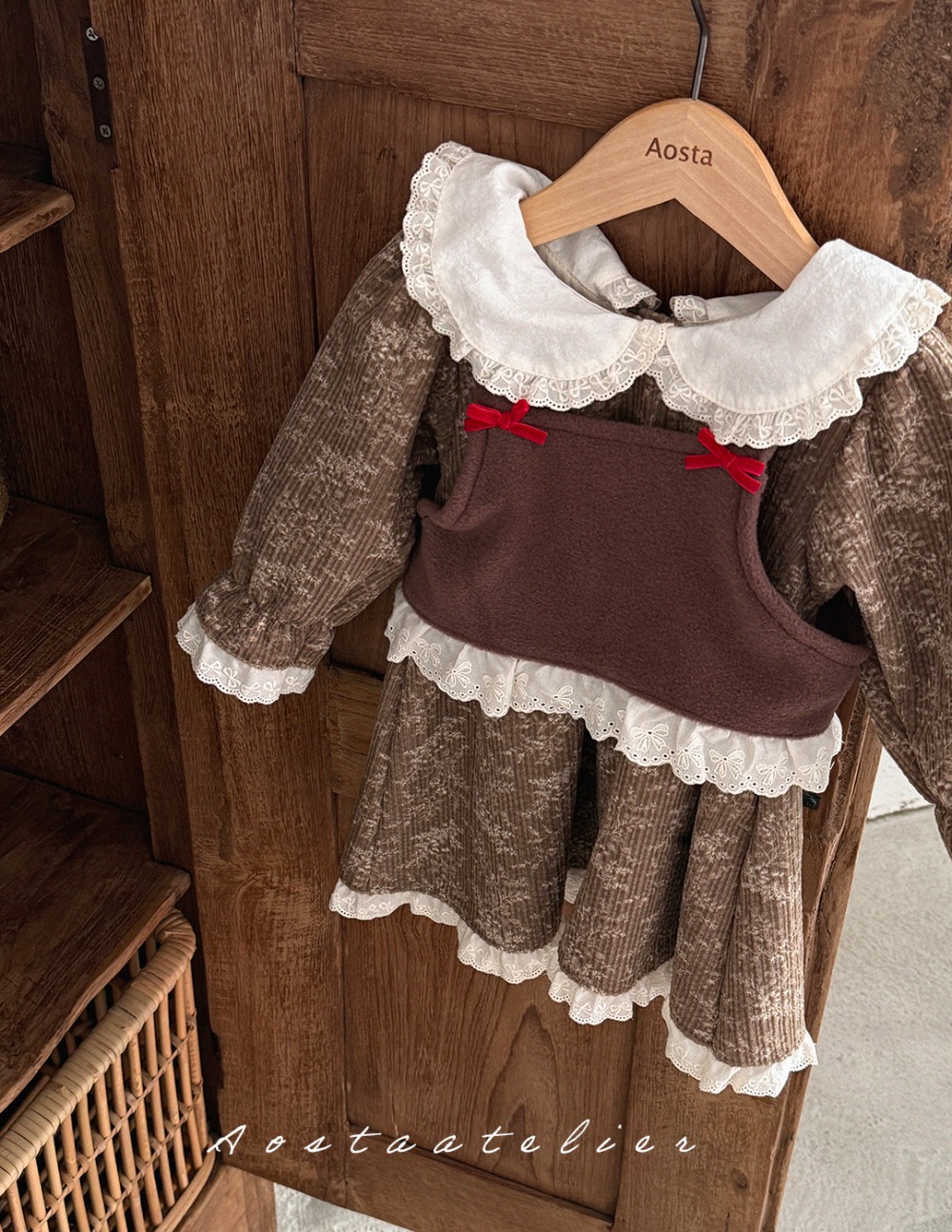 AOSTA26|(6m-5y) 冬季磨毛蝴蝶結洋裝