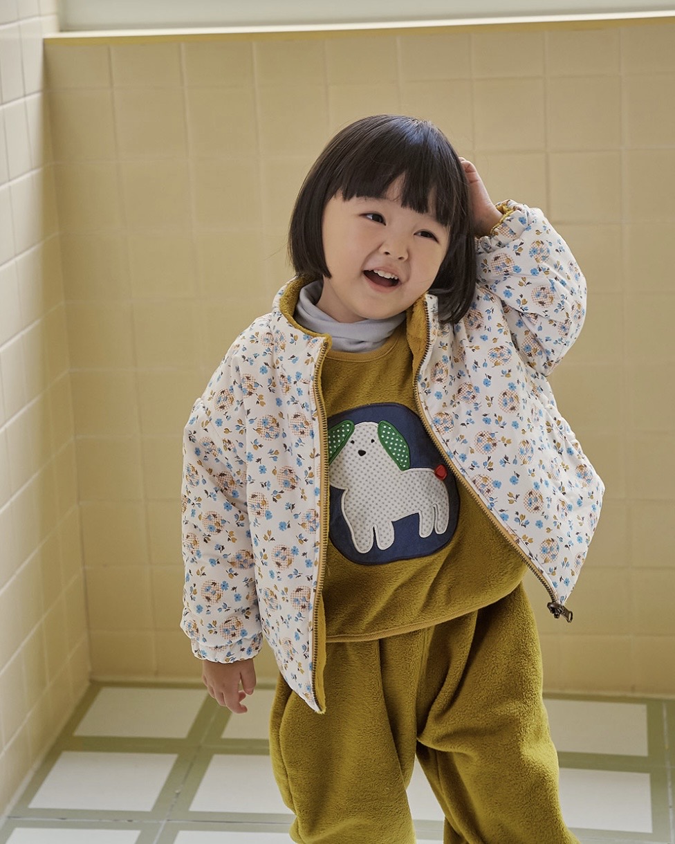 Amber 07|(90-130cm) 2色碎花刷毛雙面拉鍊外套