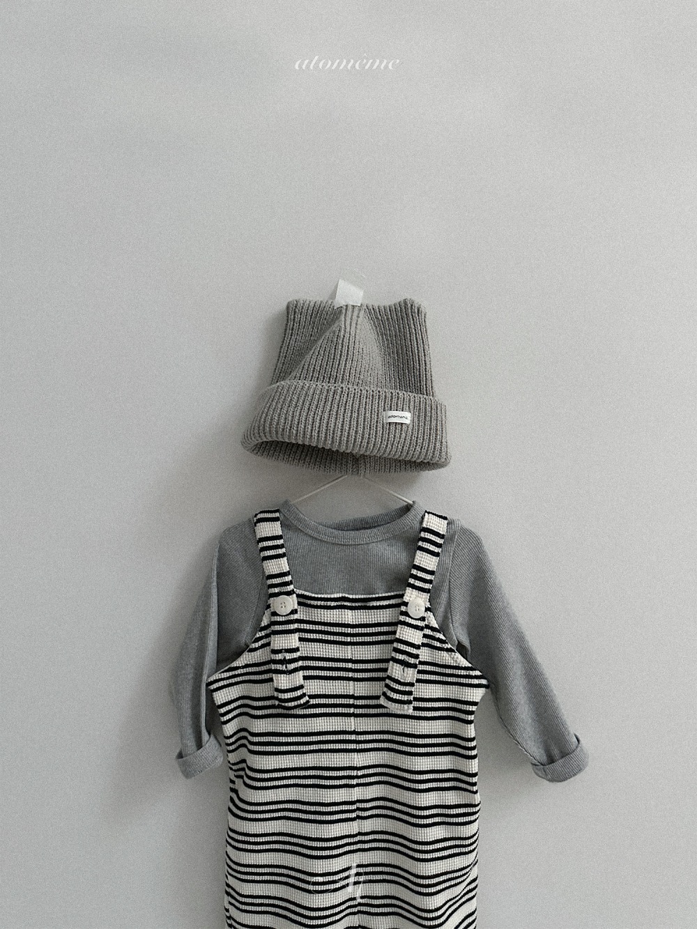 MONBEBE10|(0m-6m) 坑條針織包屁衣含帽子