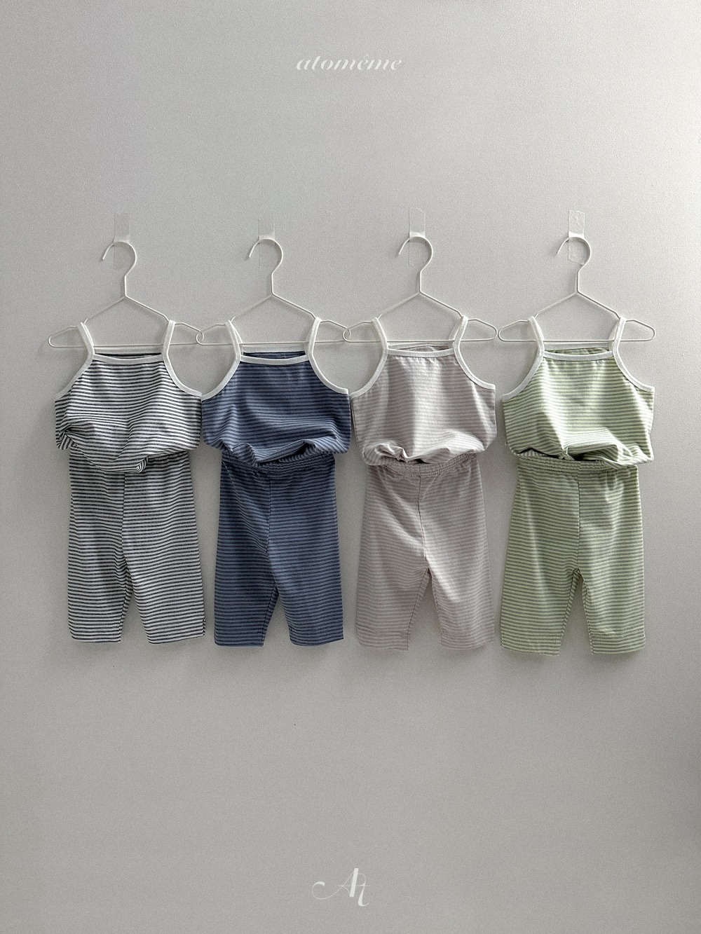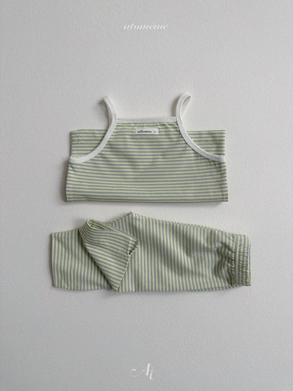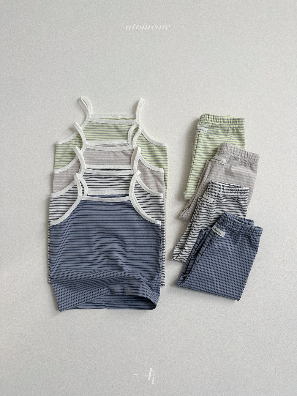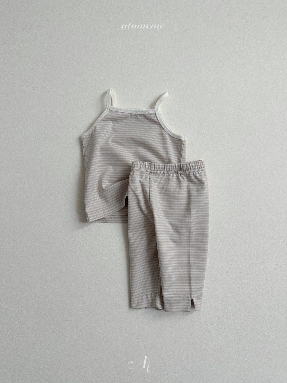 Atomeme07|(70-110) 細肩條紋背心/七分緊身褲