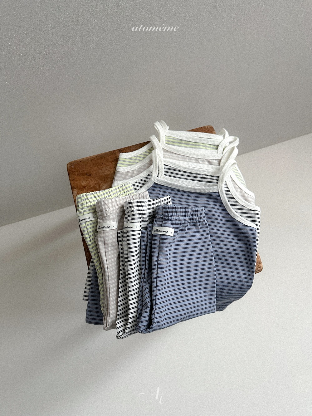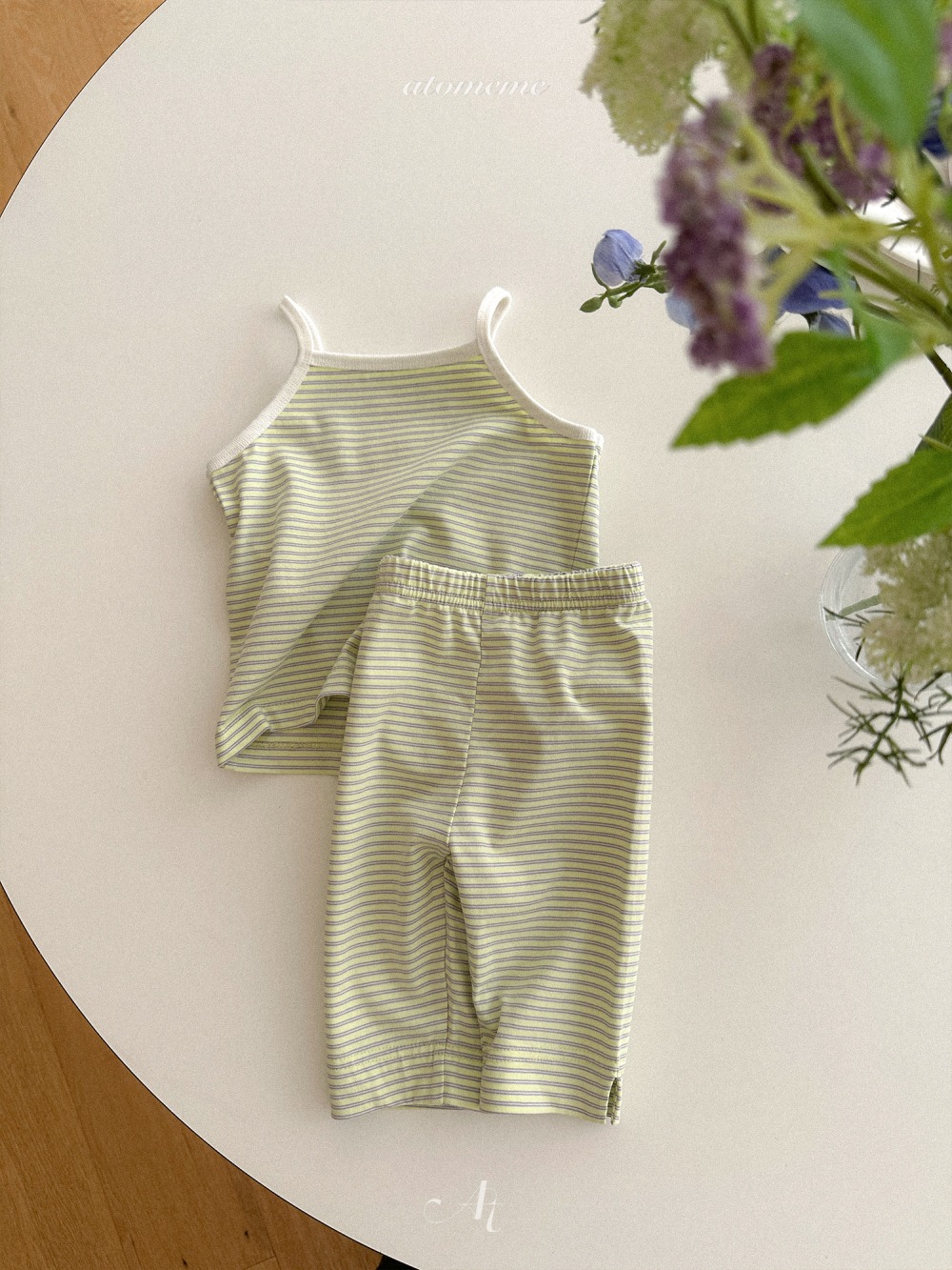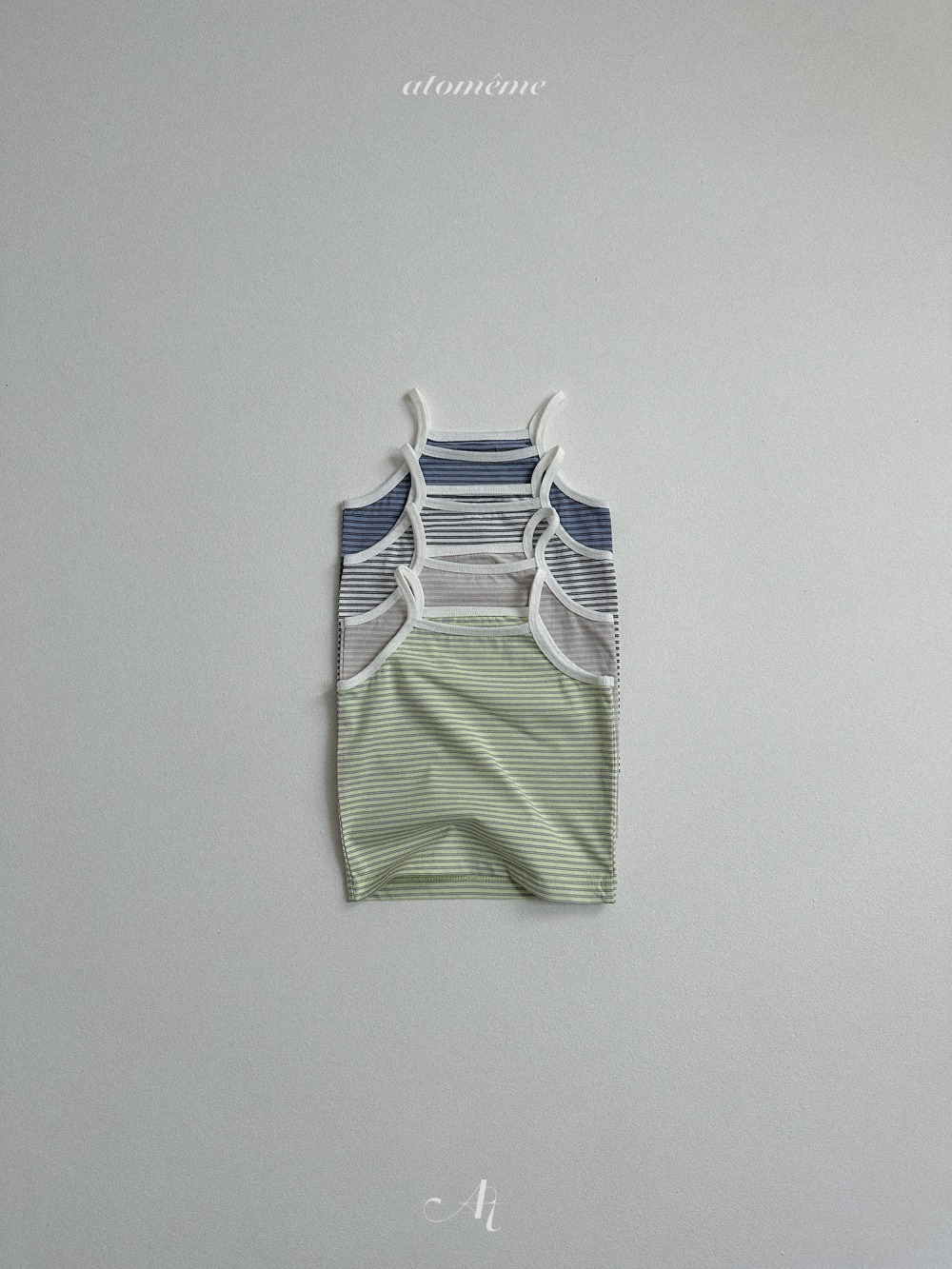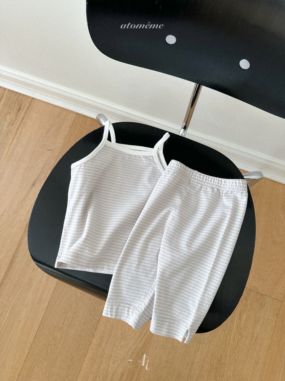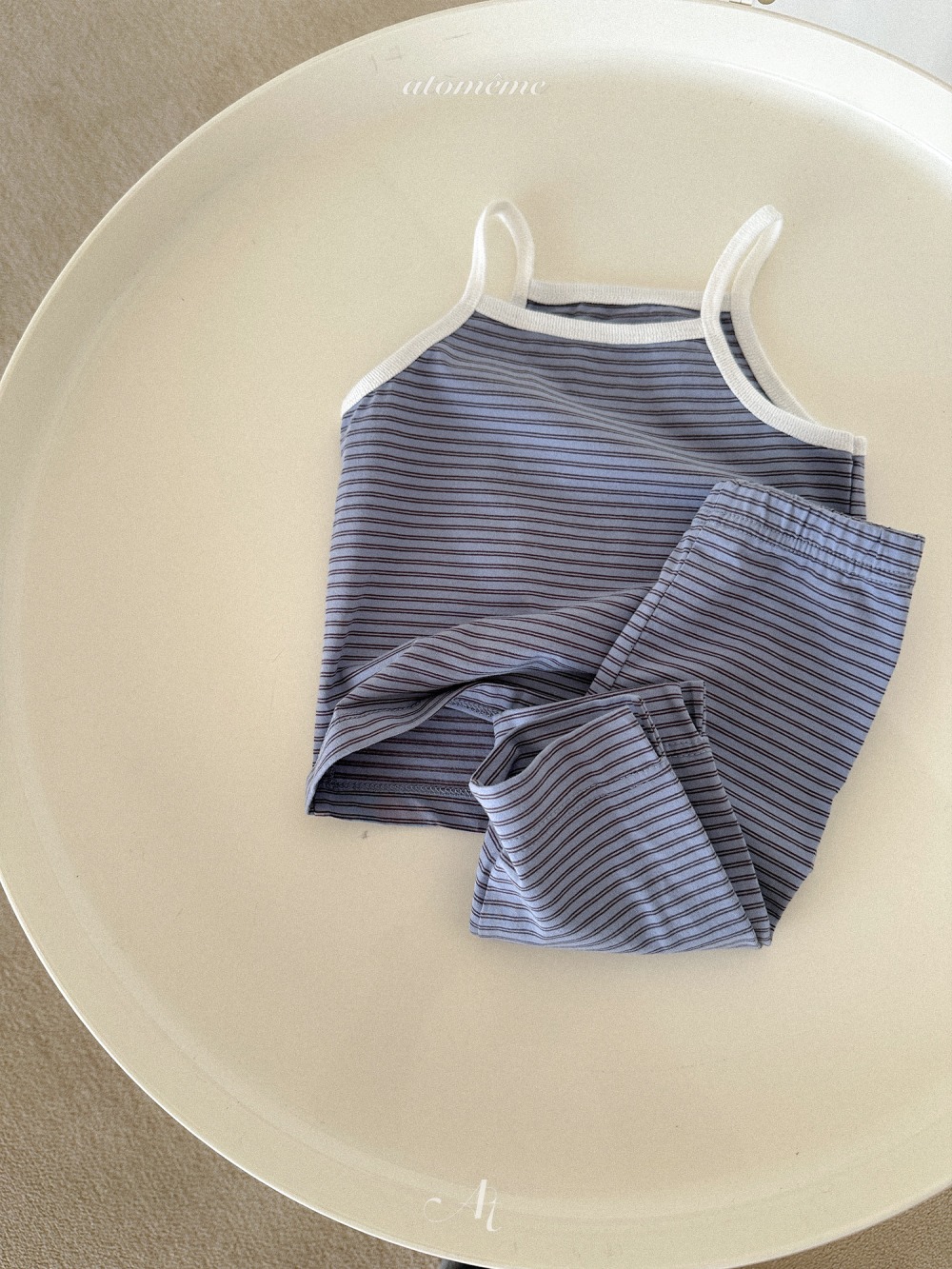 Atomeme07|(70-110) 細肩條紋背心/七分緊身褲