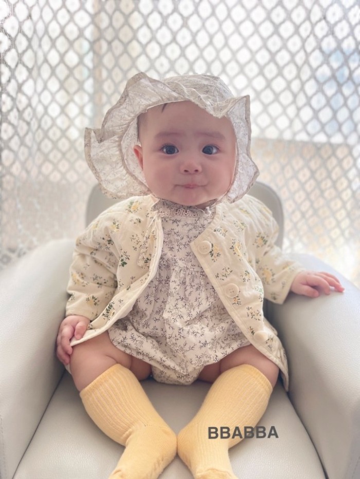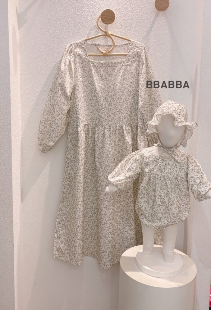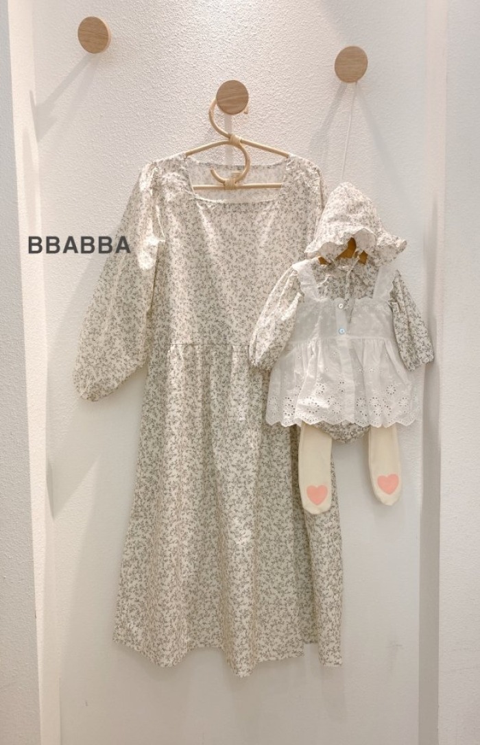 BBABBA05|(60cm-83cm-mom) 2色碎花蕾絲花邊包屁衣含帽子/洋裝