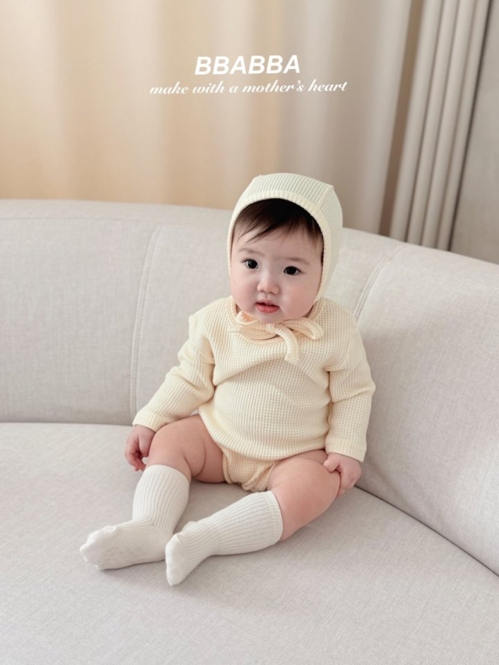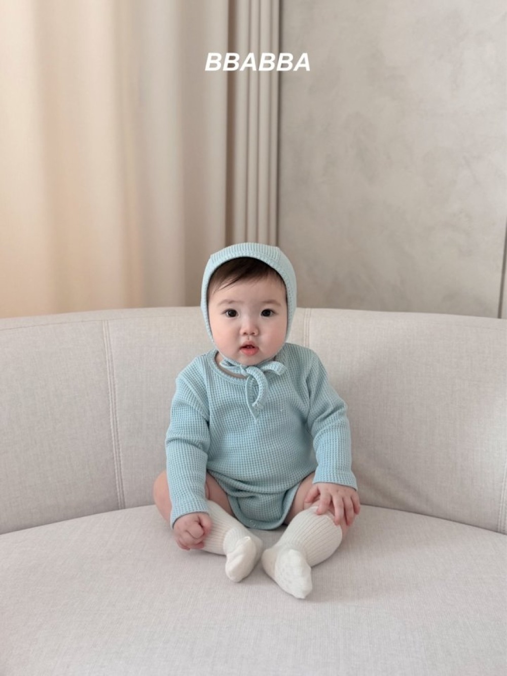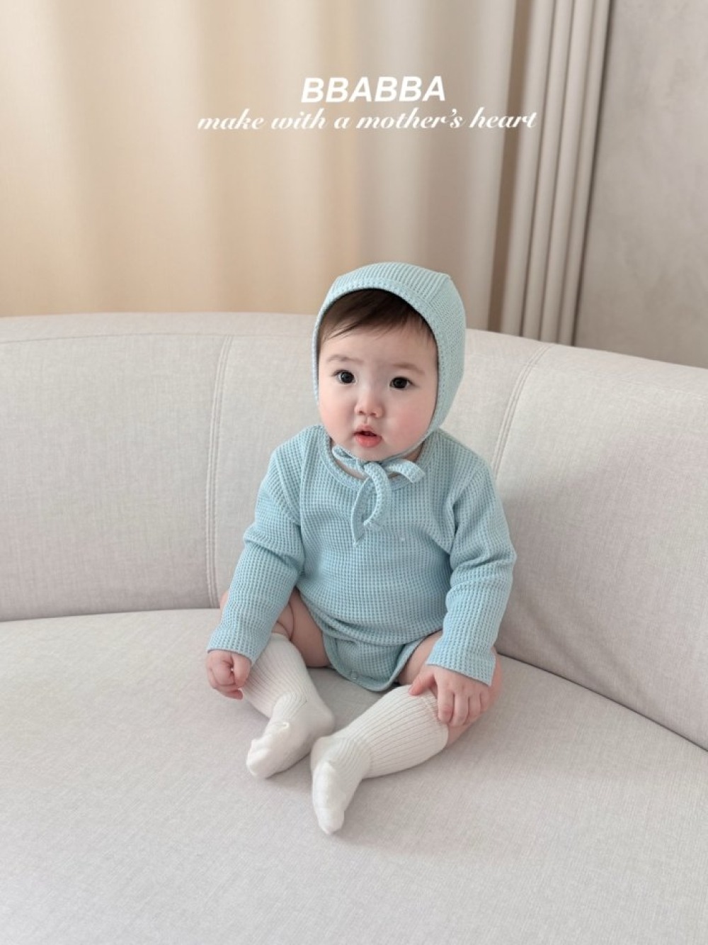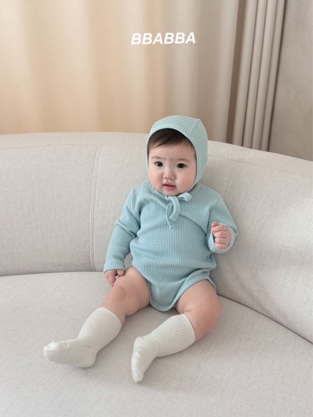 BBABBA32|(60cm-83cm) 3色素色華夫格包屁衣含帽子