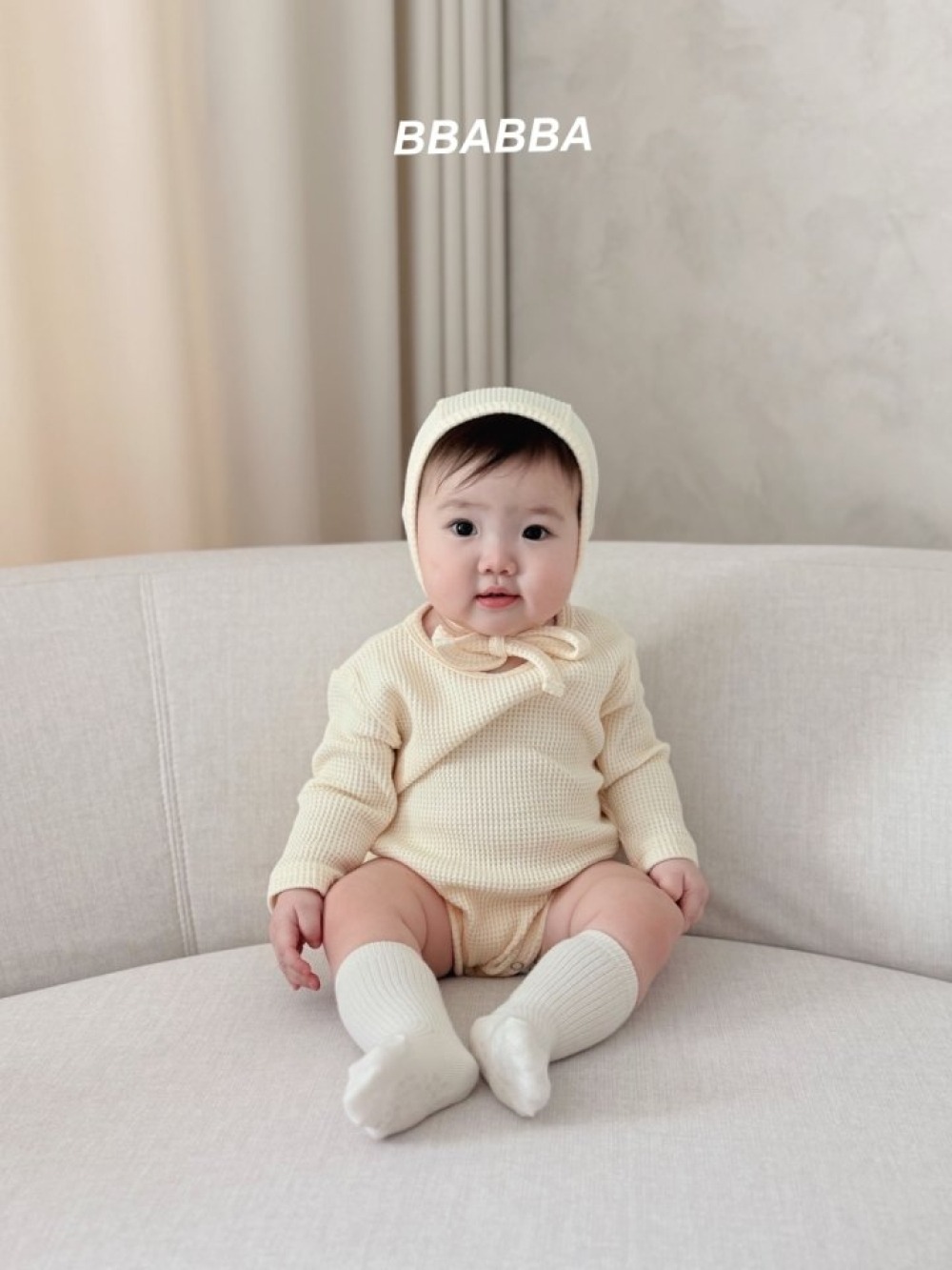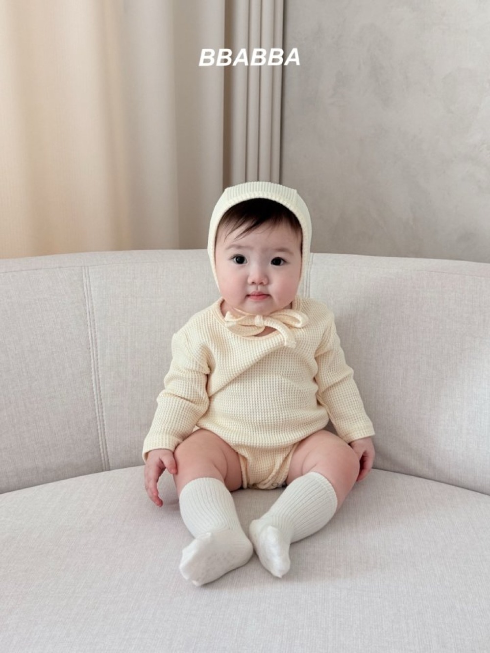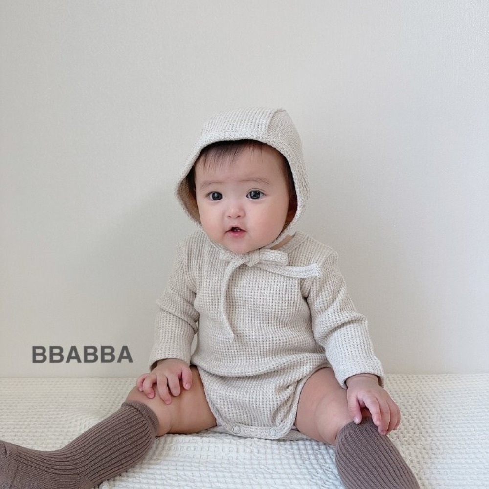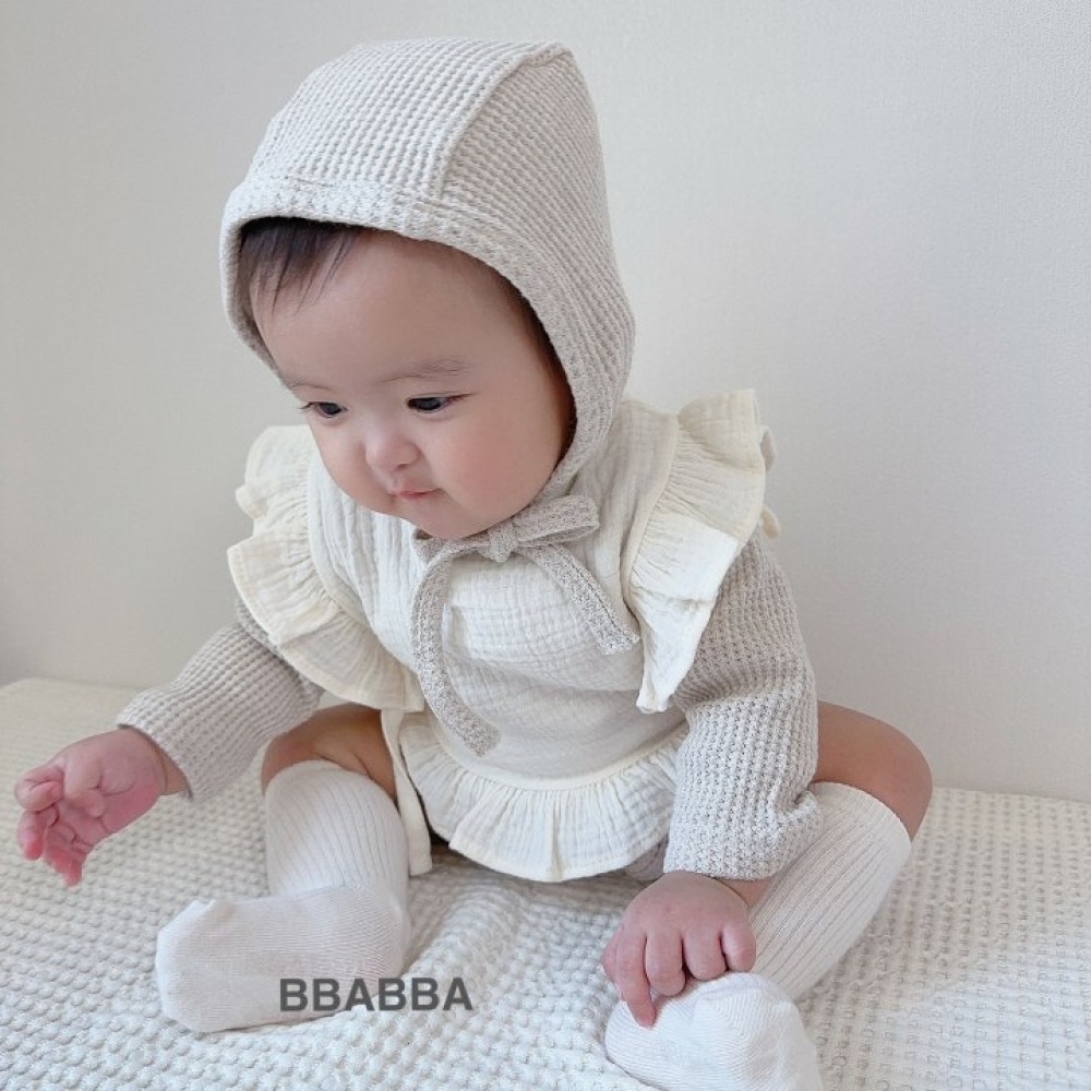 BBABBA32|(60cm-83cm) 3色素色華夫格包屁衣含帽子