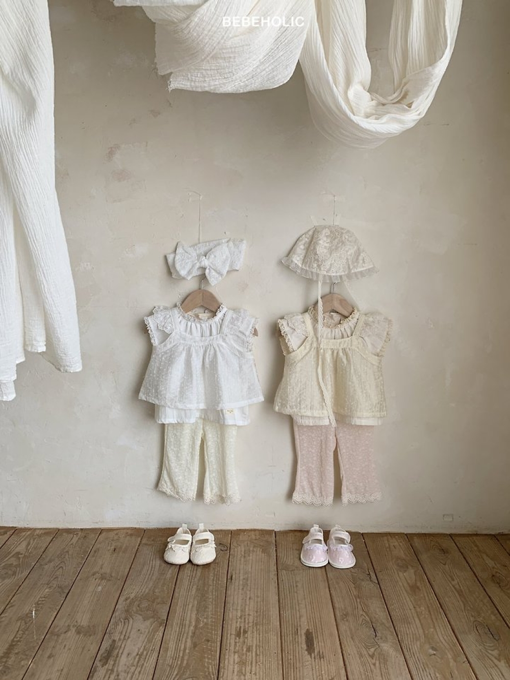 Bebe holic53|(3m-18m) 滾邊壓紋無袖長褲套裝
