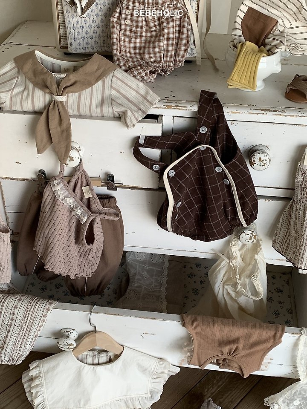 Bebe holic25|(3m-18m) 棉麻滾邊包屁衣