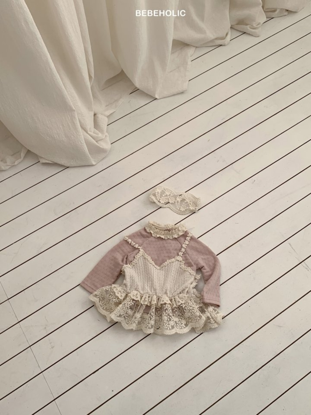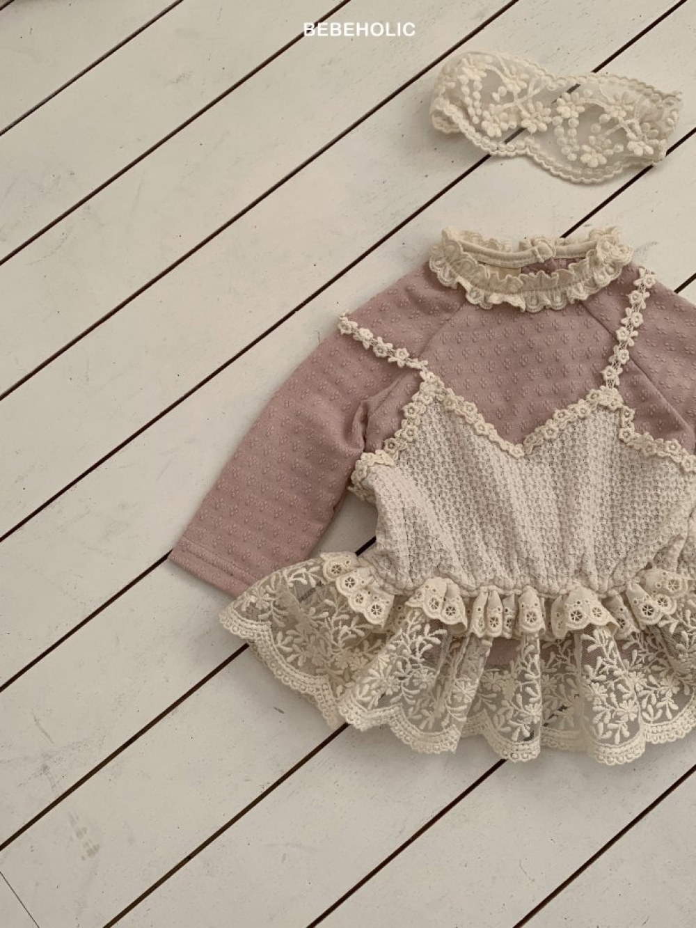 Bebe holic34|(3m-18m) 花瓣蕾絲立領上衣