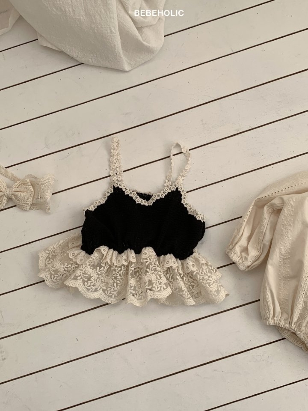Bebe holic15|(3m-18m) 針織蕾絲小花背心