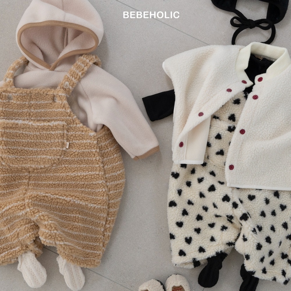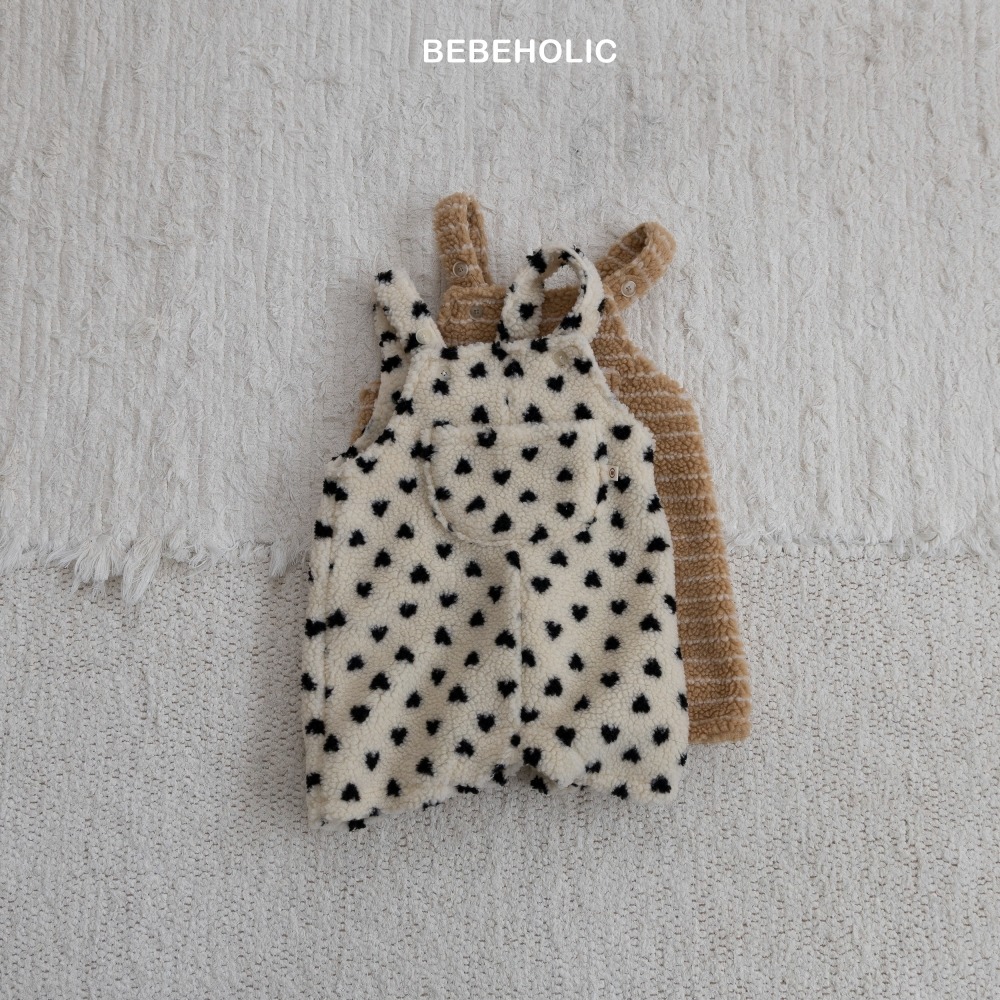 Bebe holic19|(3m-18m) 羊羔毛吊帶包屁連身褲