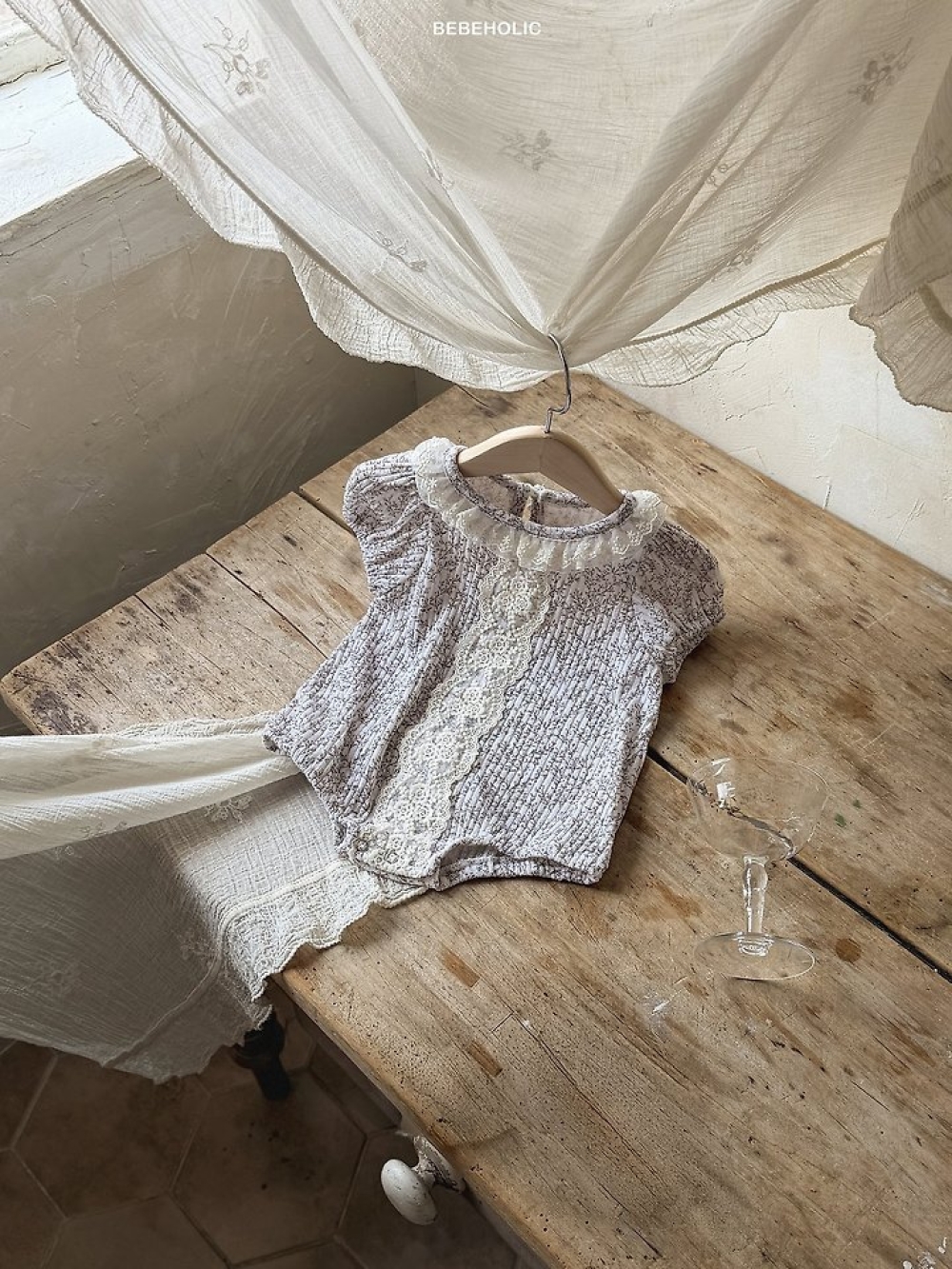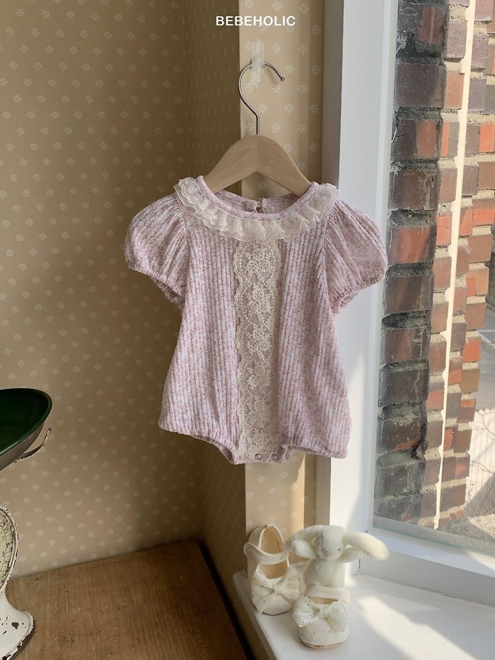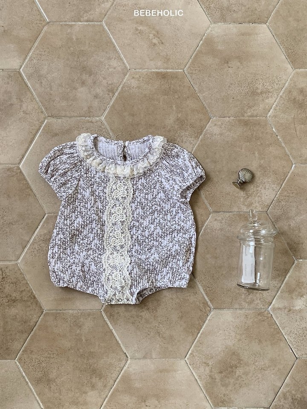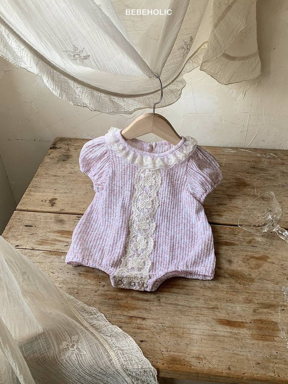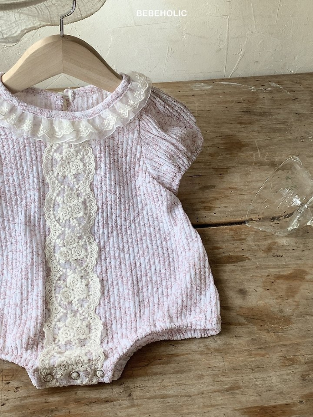 Bebe holic42|(3m-18m) 蕾絲滾邊設計包屁衣