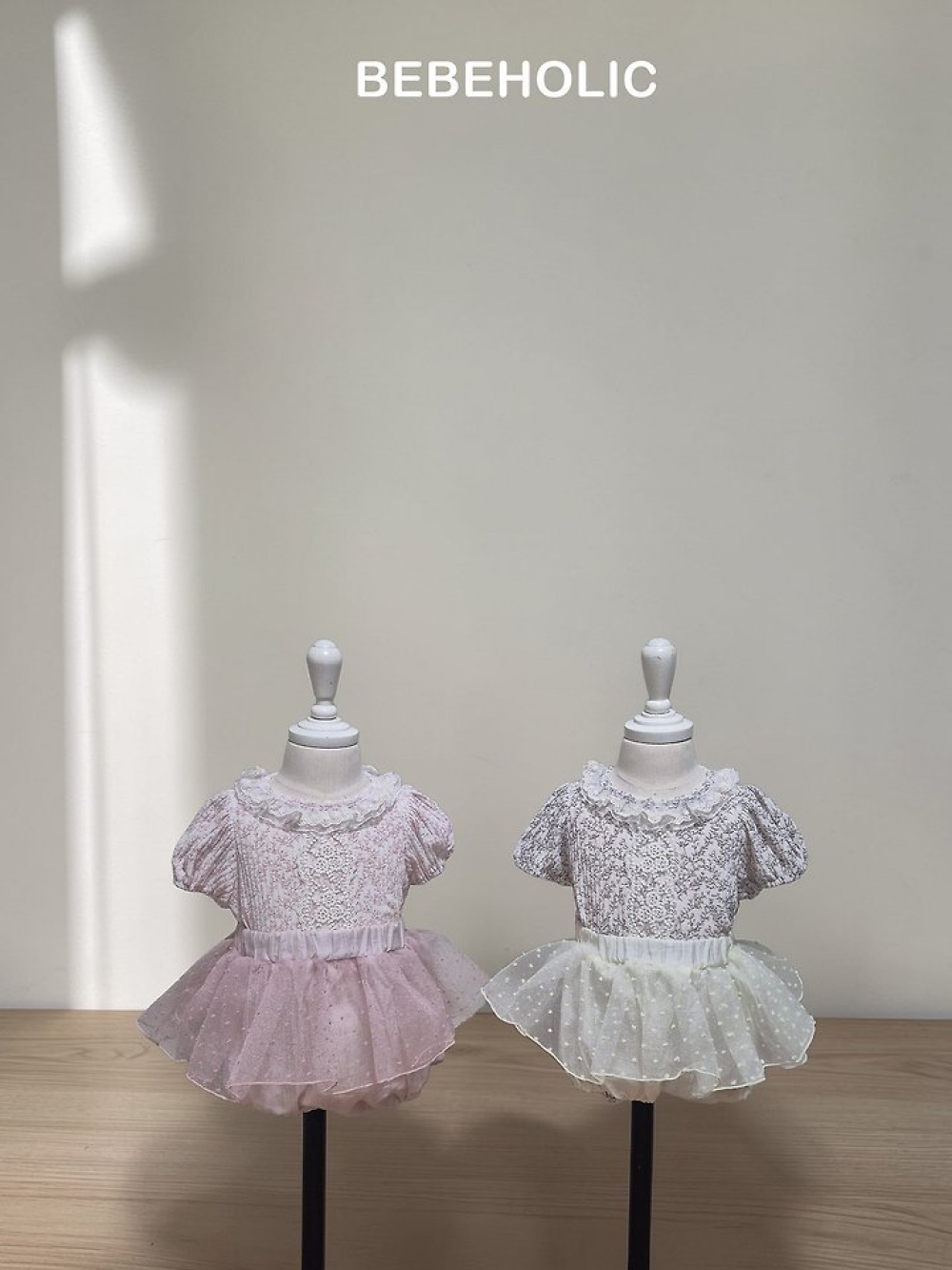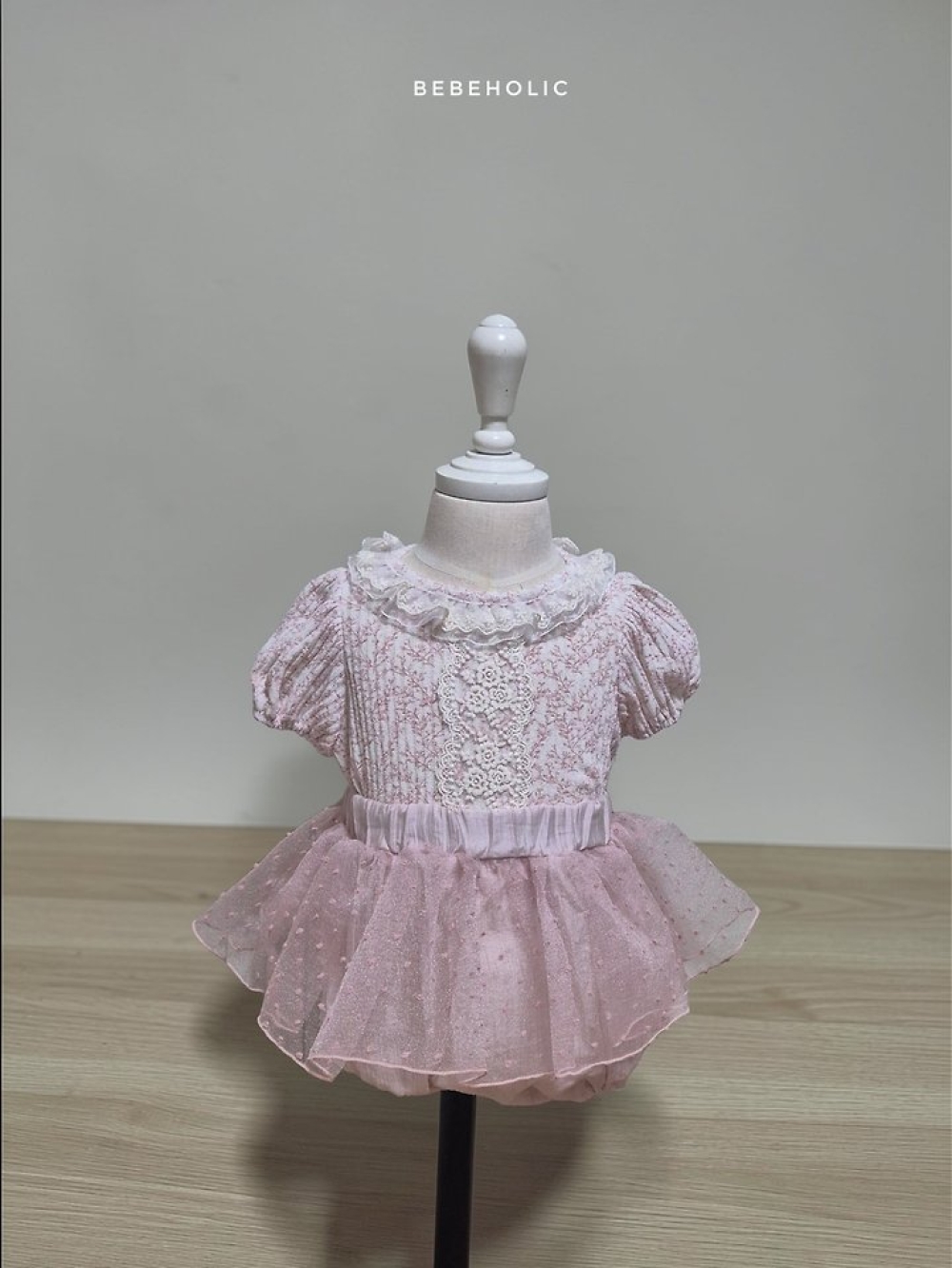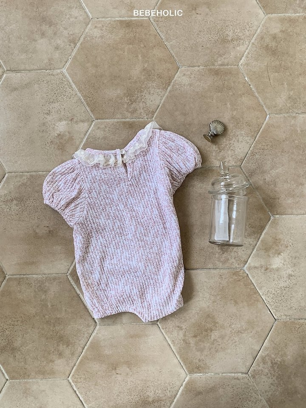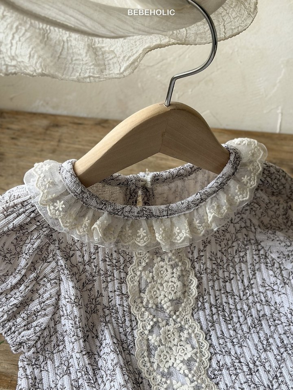 Bebe holic45|(3m-18m) 壓紋褶皺領包屁衣