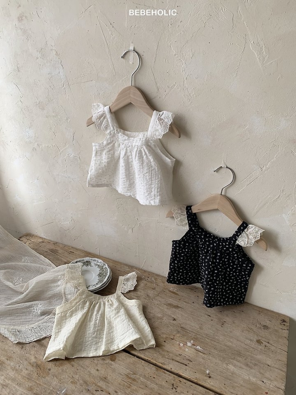Bebe holic16|(3m-18m) 摺邊背心/摺邊帽子套裝