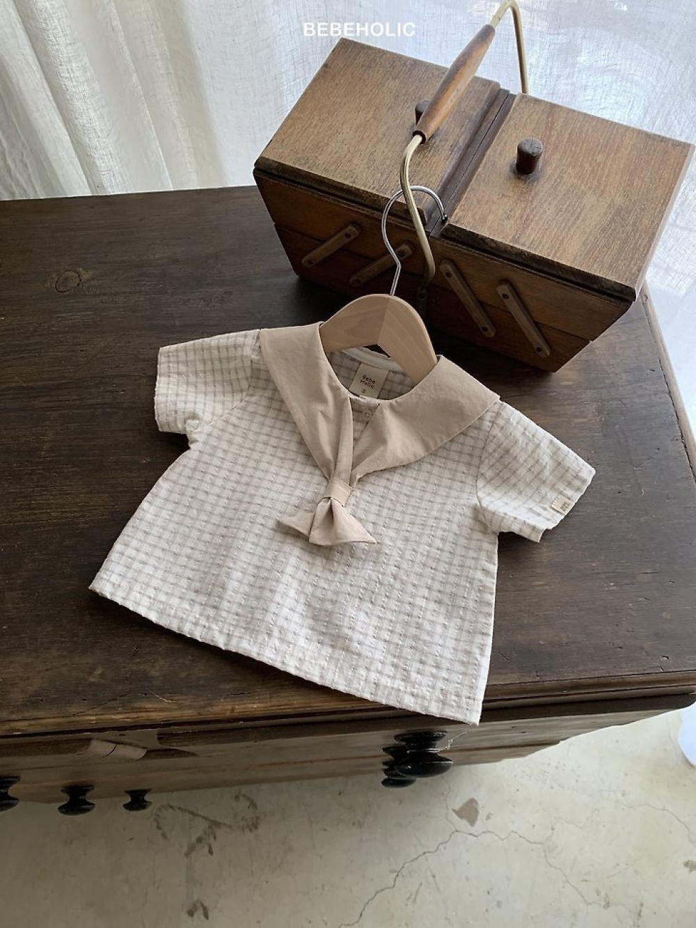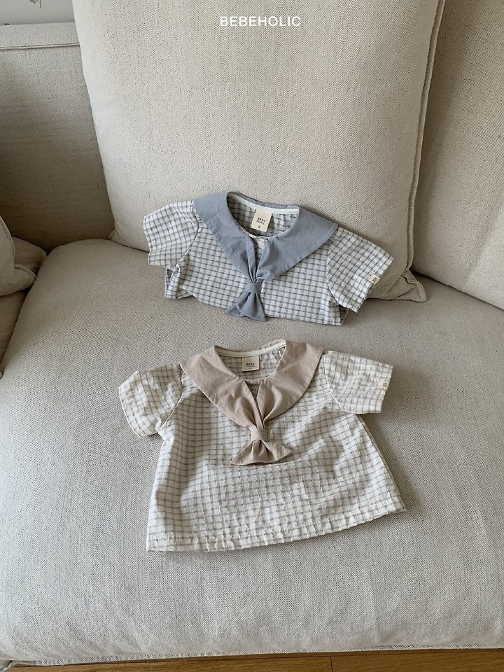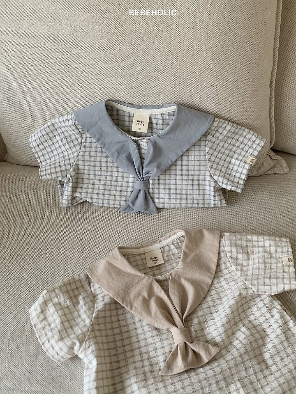 Bebe holic25|(3m-18m) 棉麻滾邊包屁衣