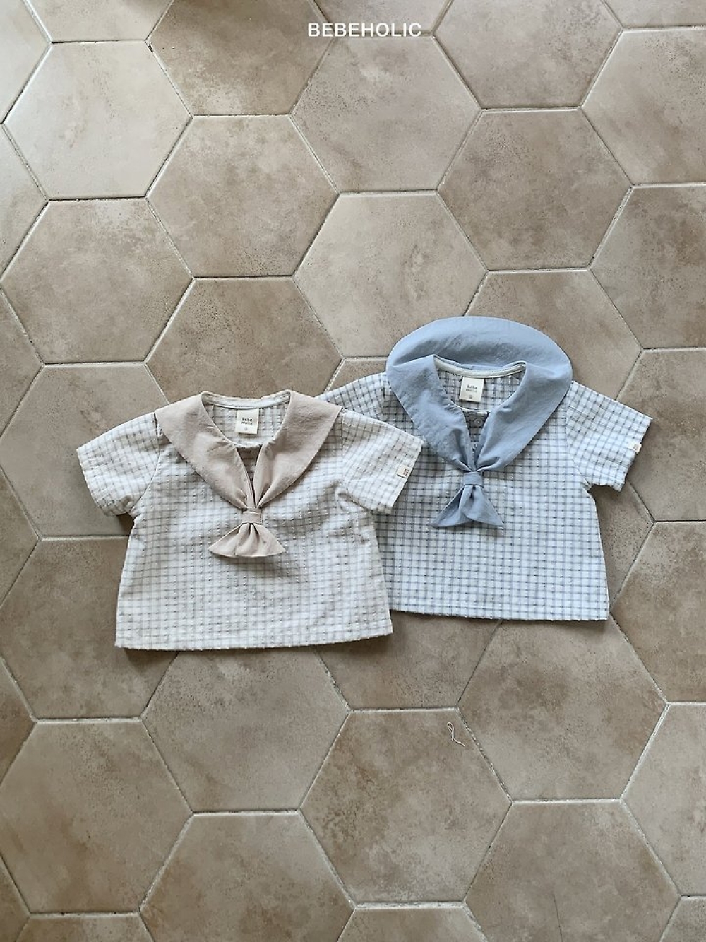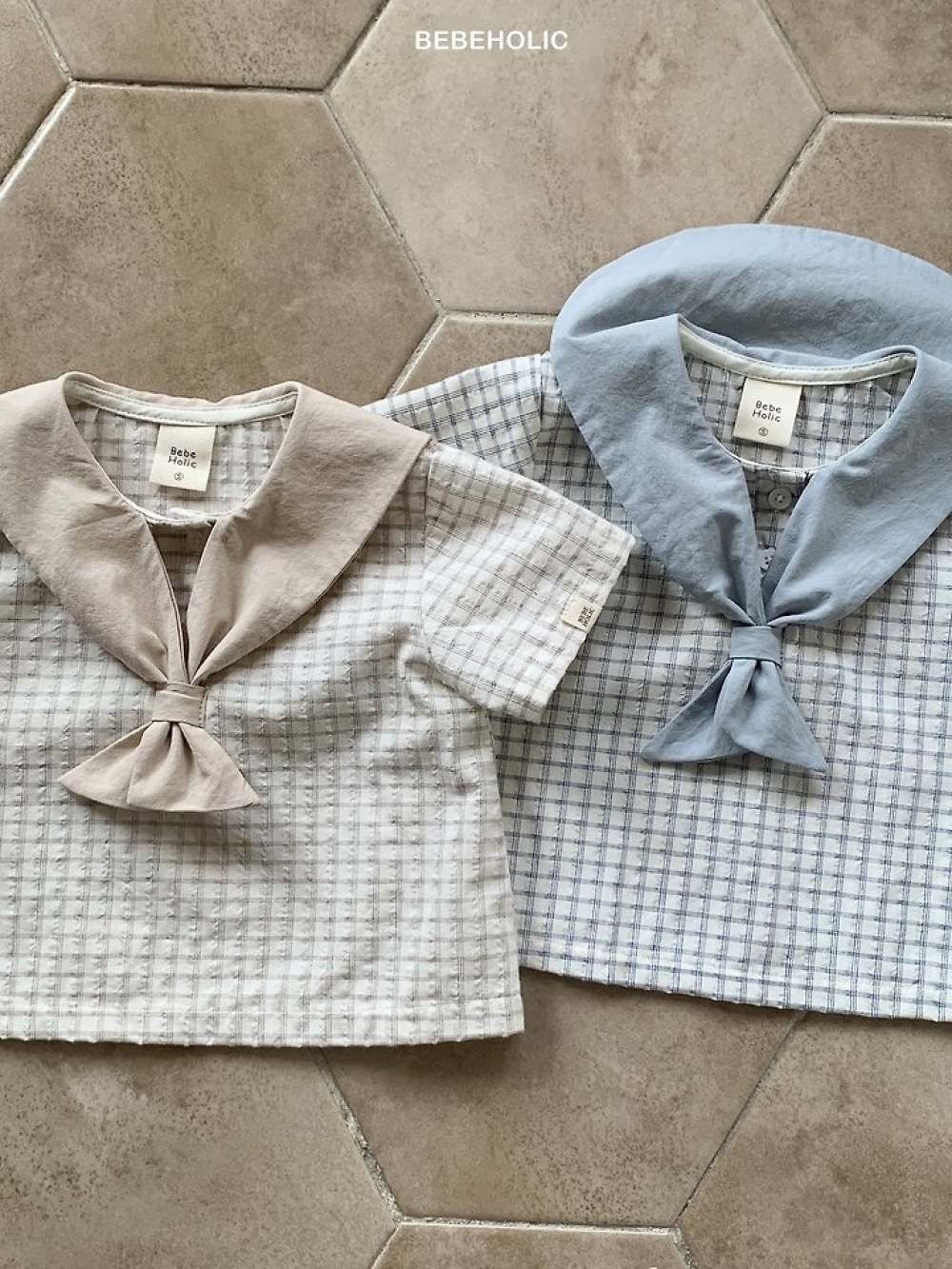 Bebe holic20|(3m-18m) 翻領條紋連身服