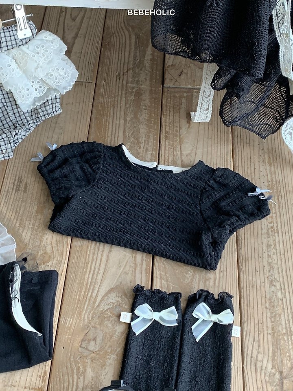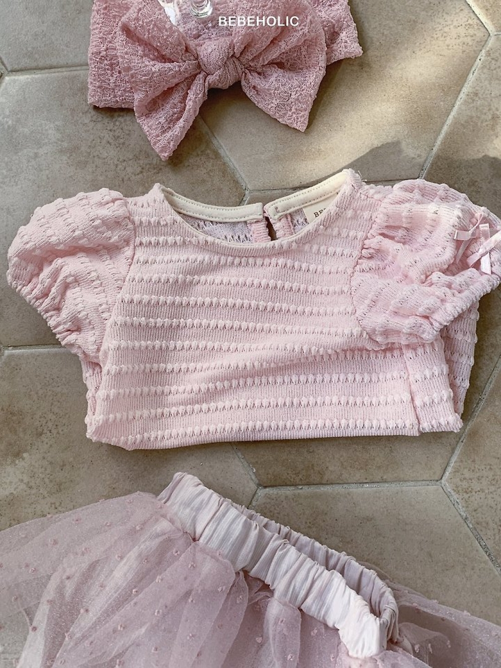 Bebe holic43|(3m-18m) 蕾絲泡泡袖上衣