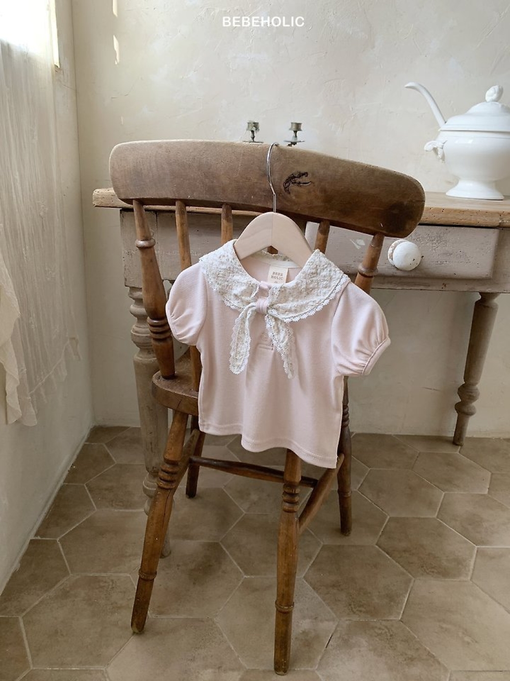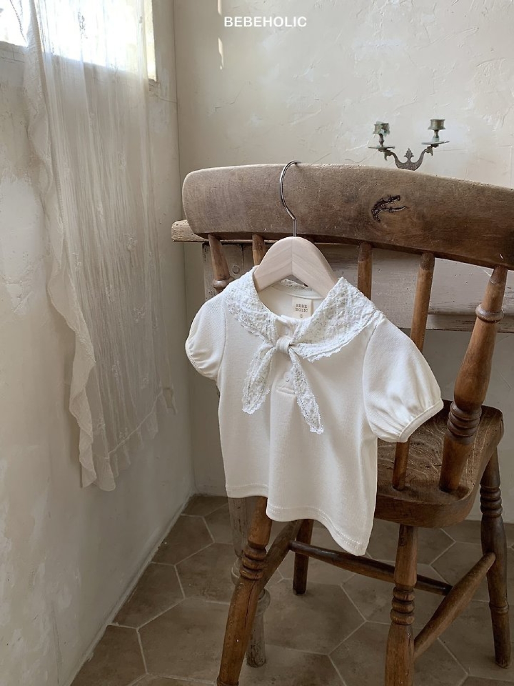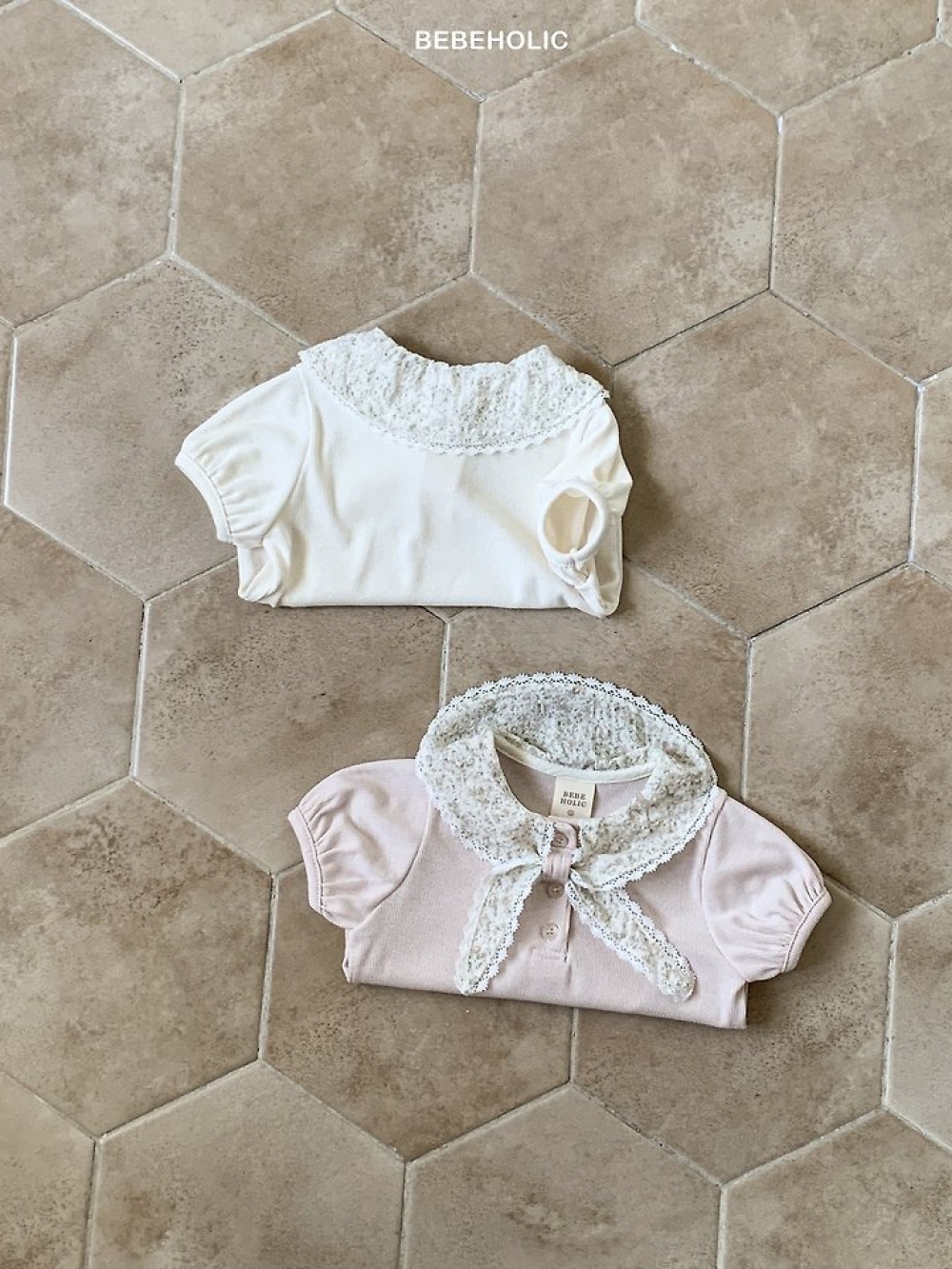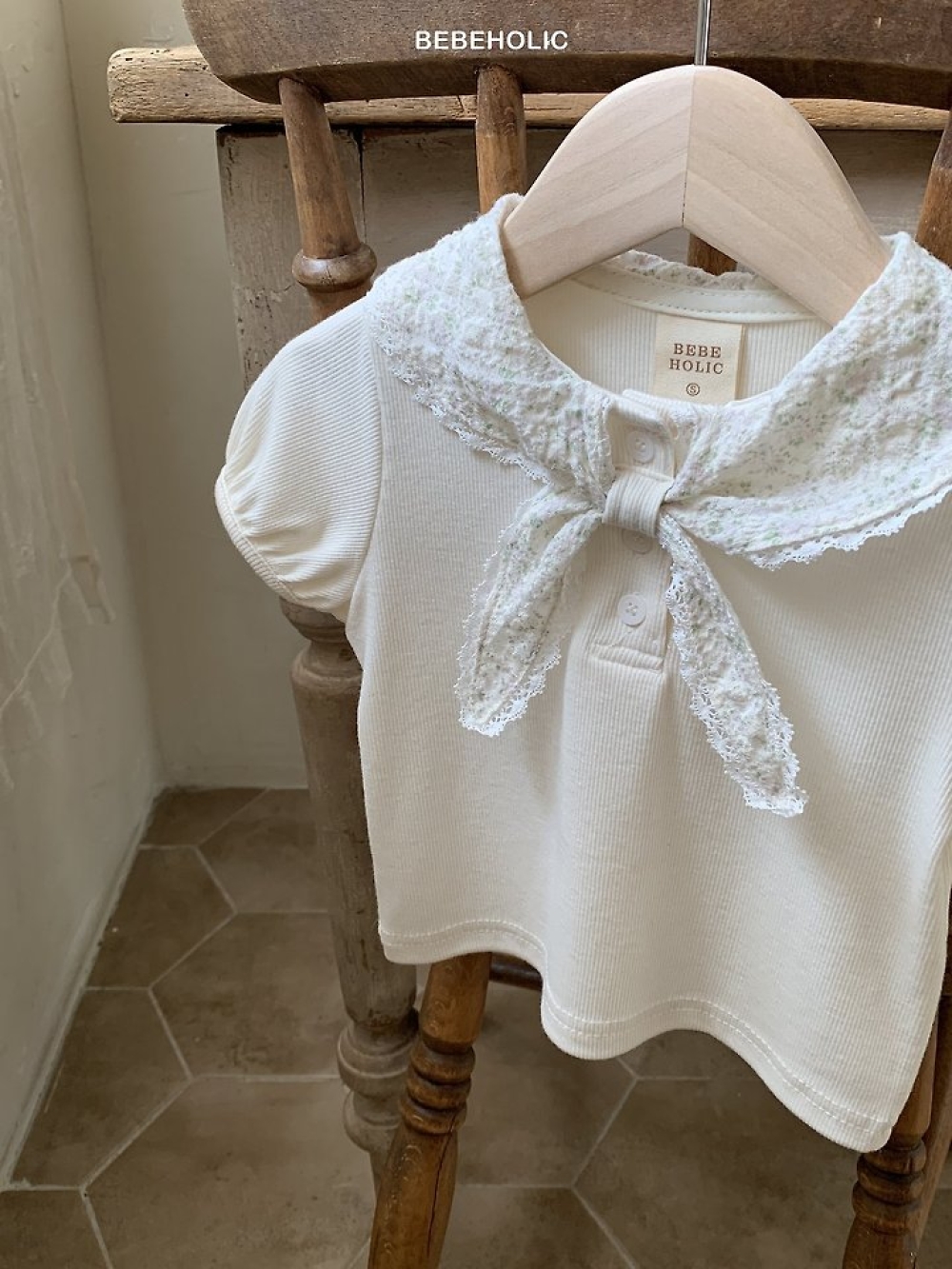 Bebe holic45|(3m-18m) 海軍蕾絲領上衣