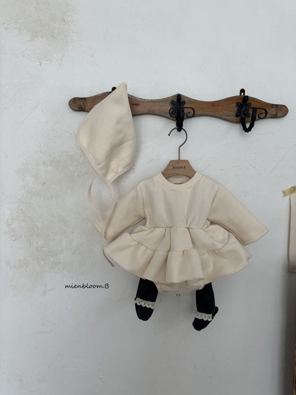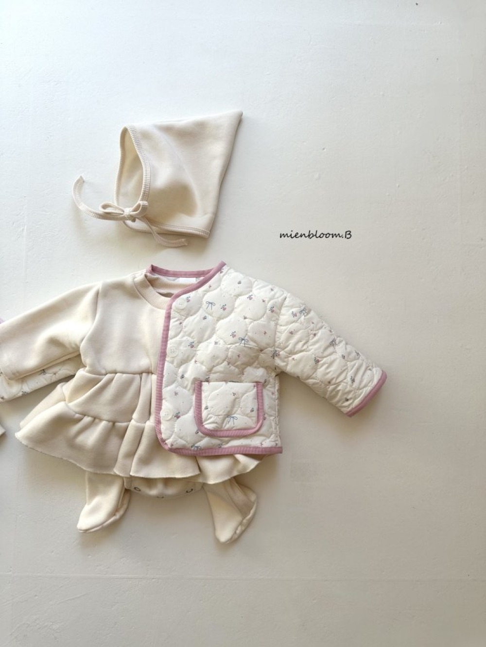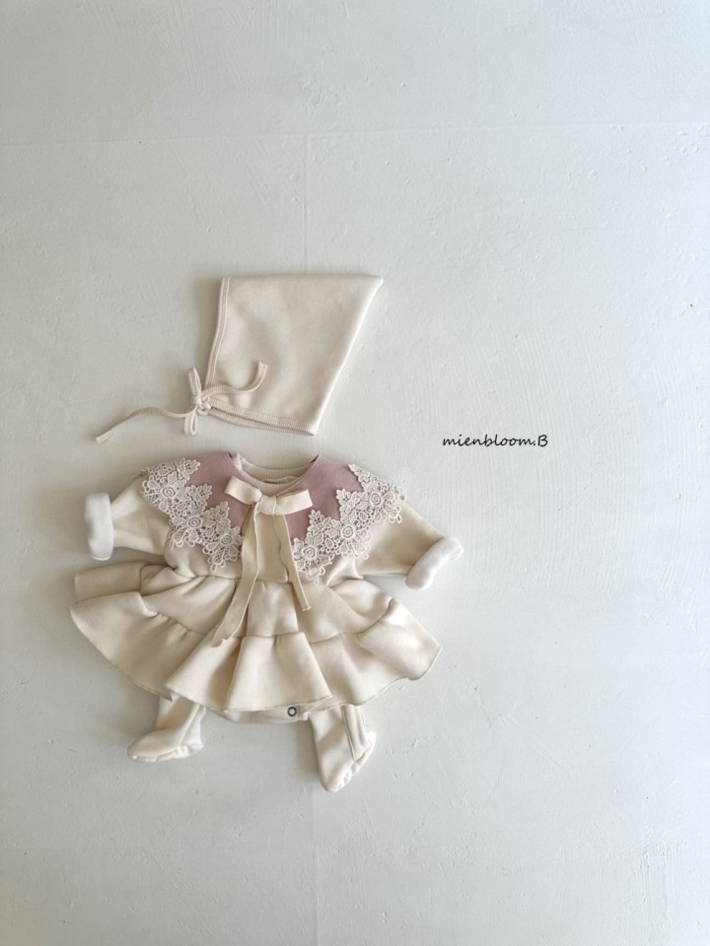 Bloom.b01|(0m-24m) 層次洋裝包屁衣含帽子