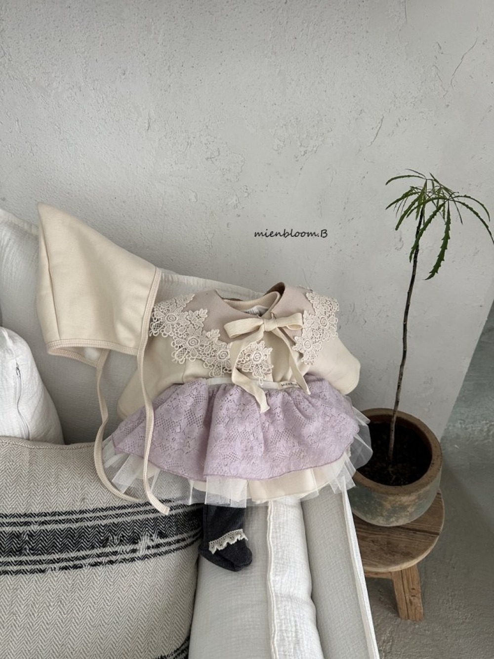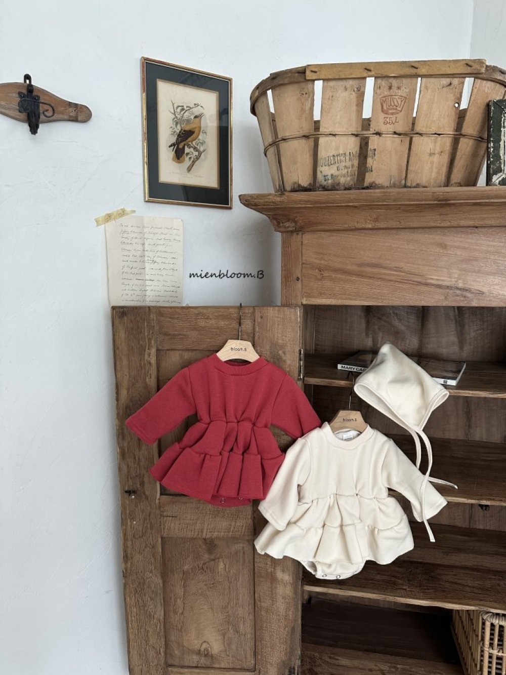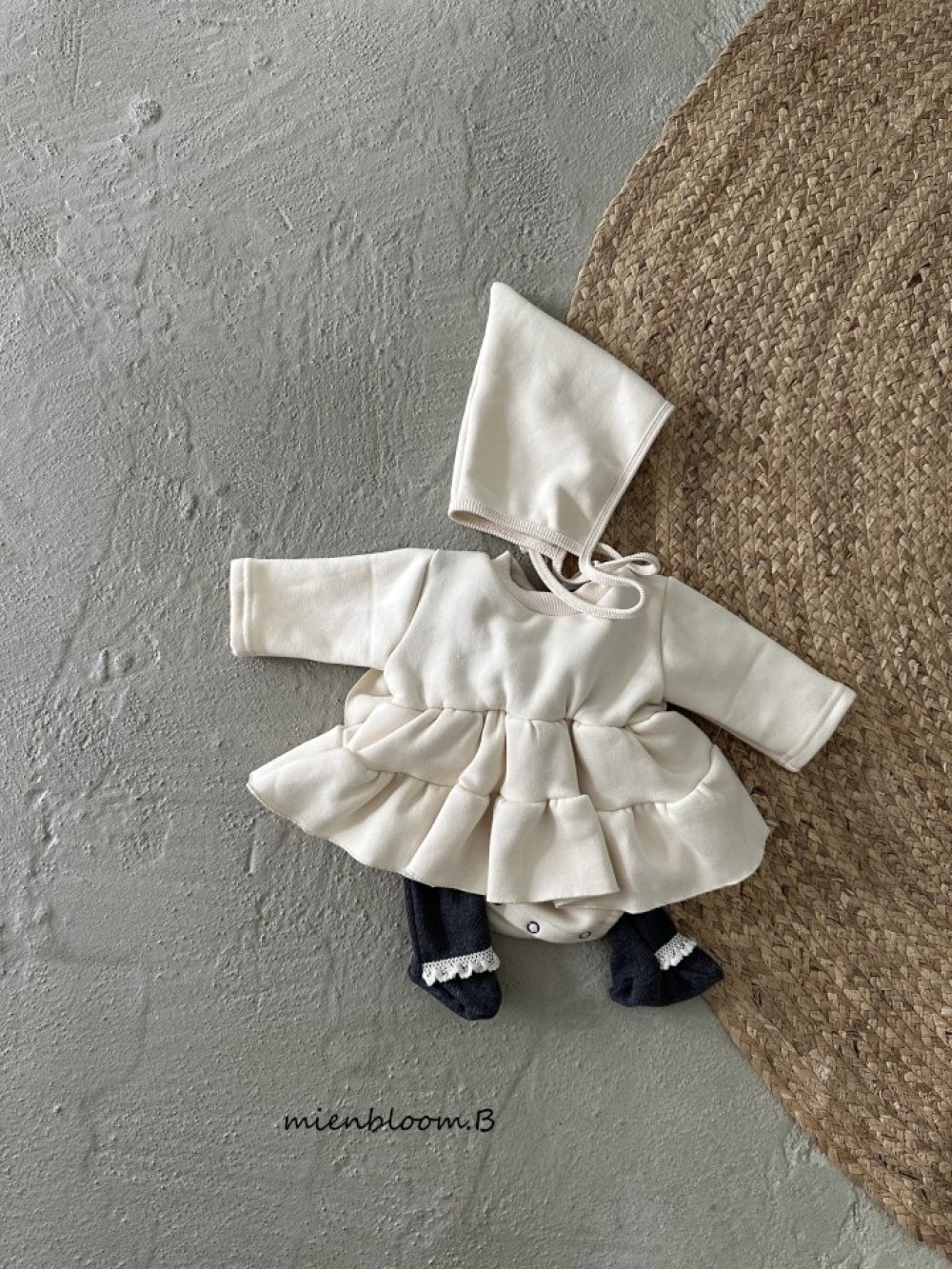 Bloom.b01|(0m-24m) 層次洋裝包屁衣含帽子