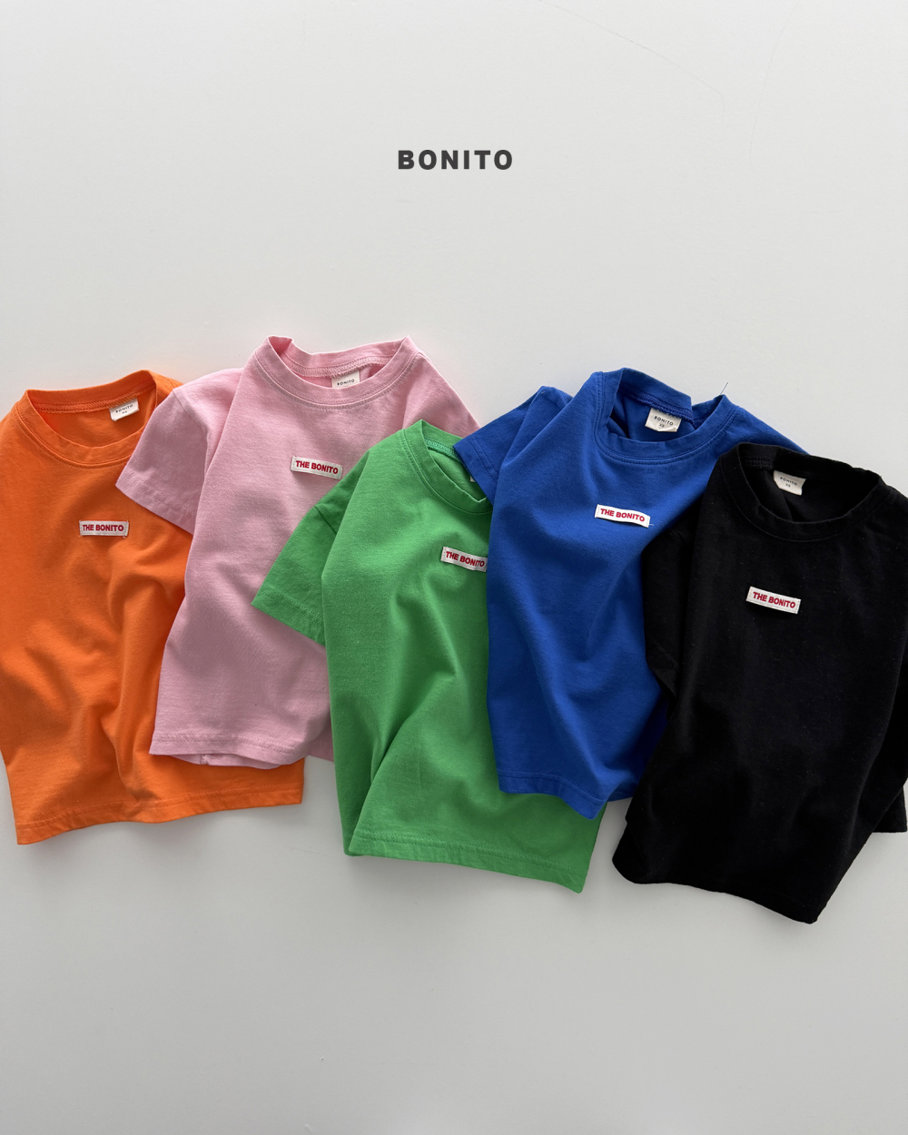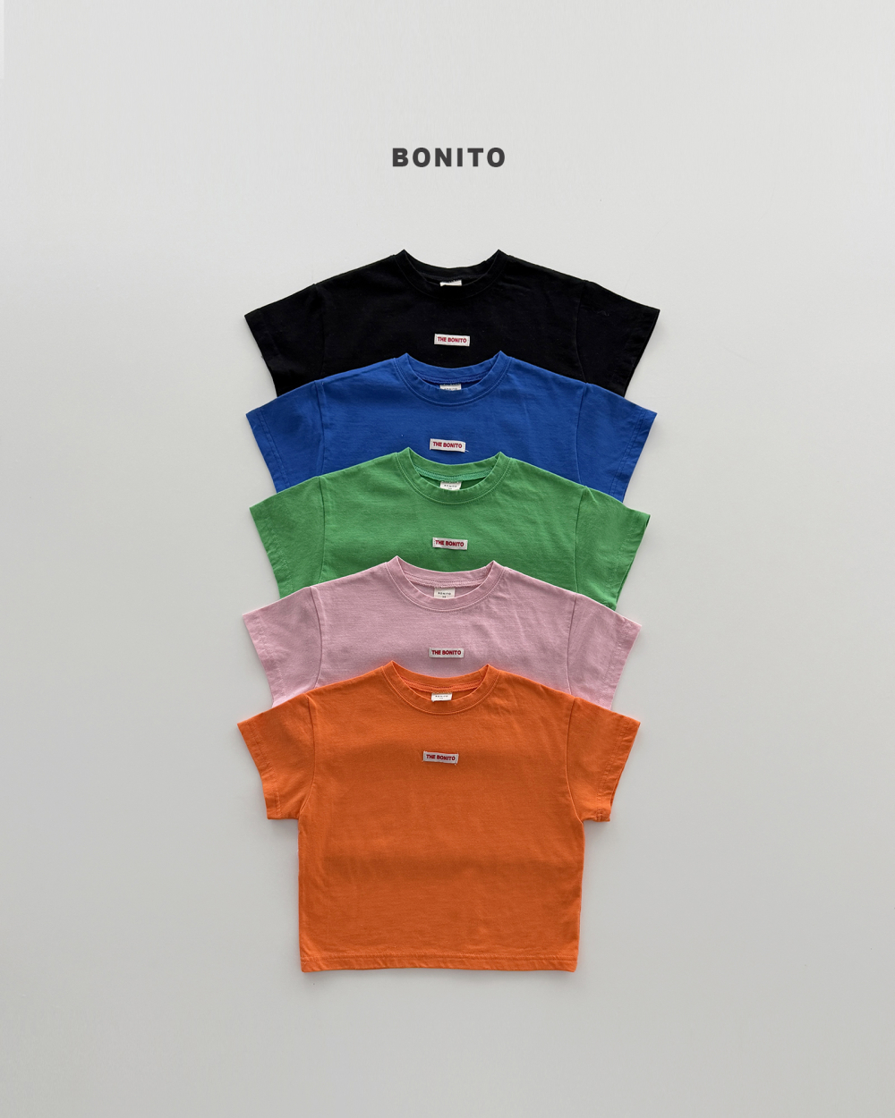 Bonito48|(75cm-125cm) 5色小標貼圓領上衣