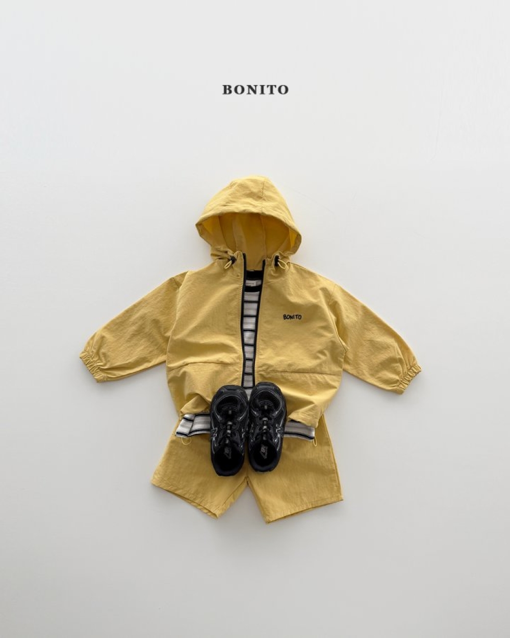 Bonito55|(75cm-125cm) 3色刺繡字母防風帽套裝