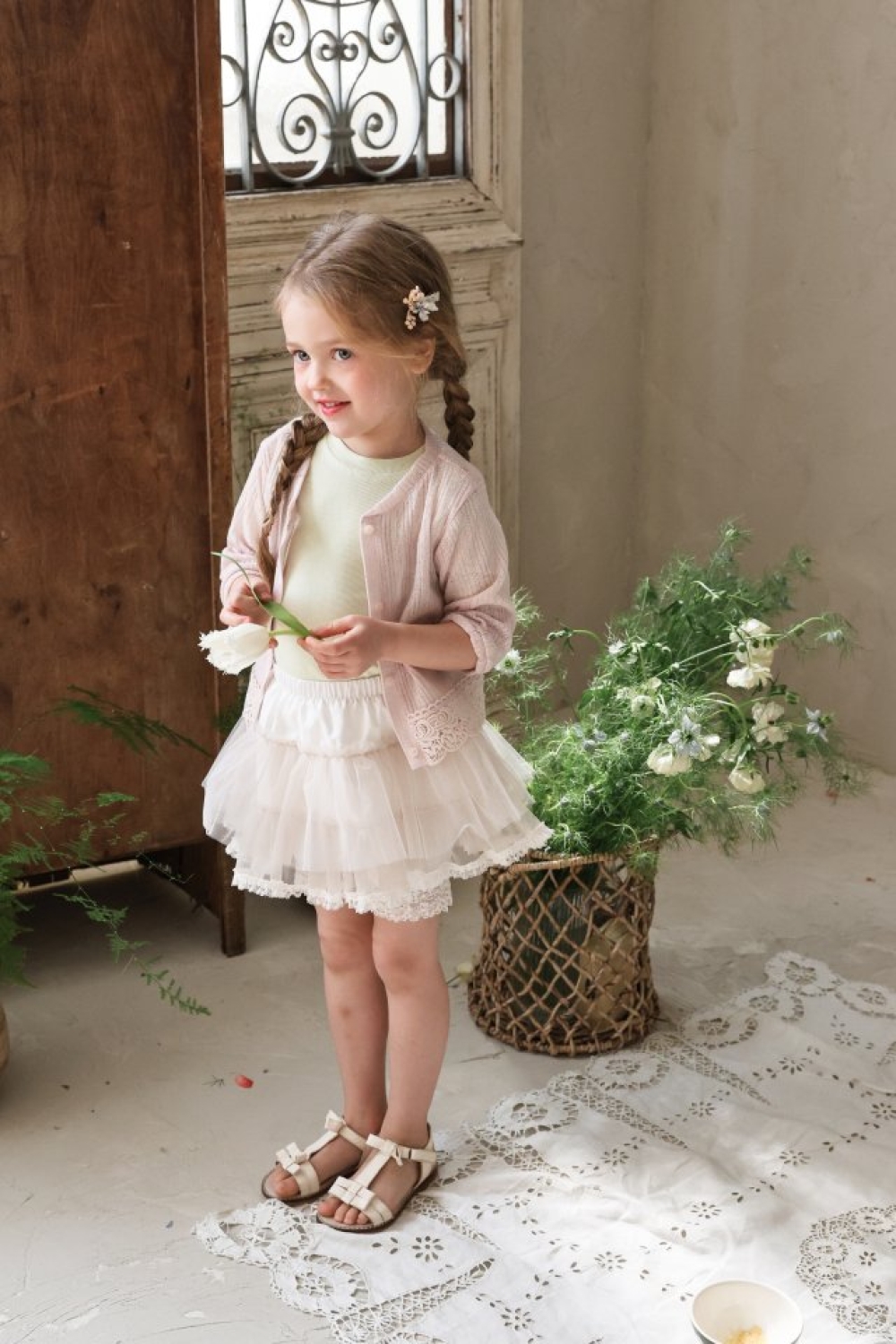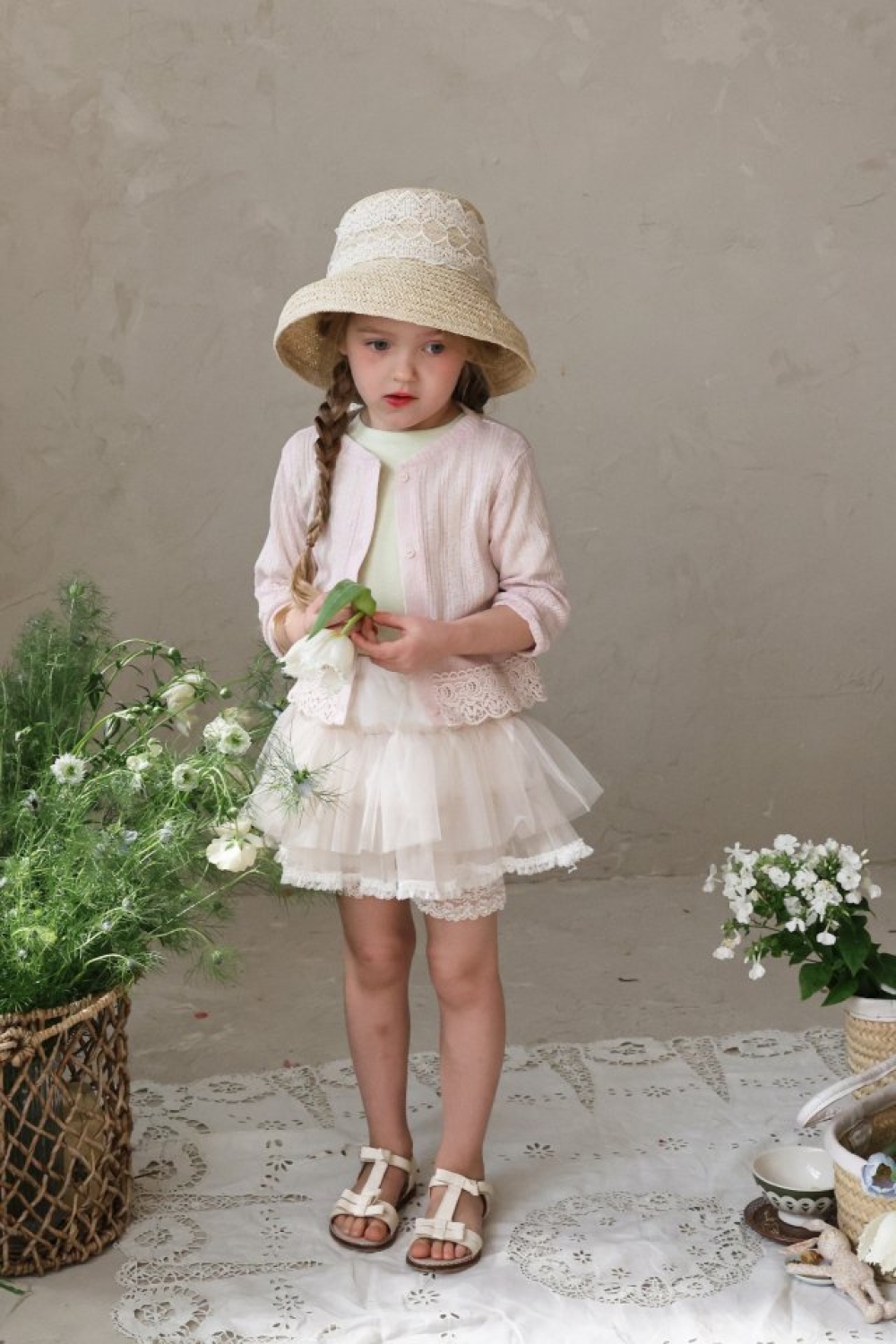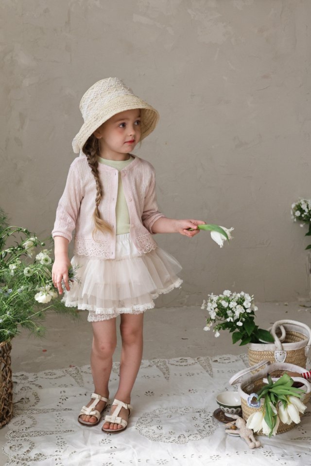 FLO04|(75-140) 四色蕾絲七分袖開衫