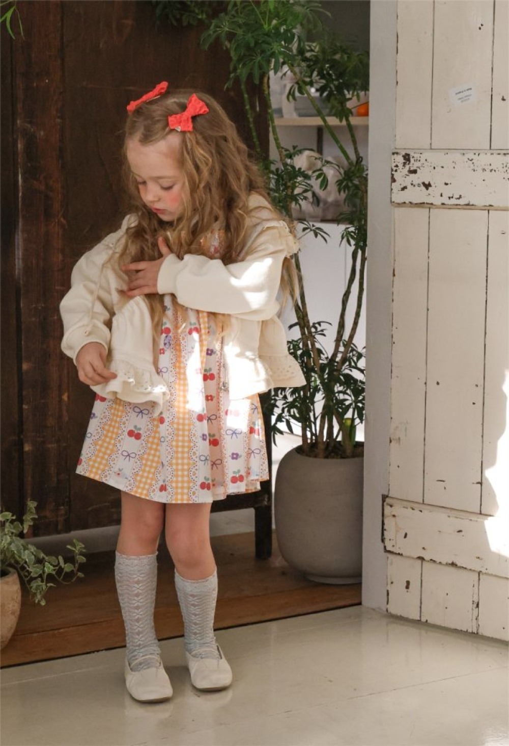 Marron05|(1y-6y) 蝴蝶結滾邊翻領開襟外套
