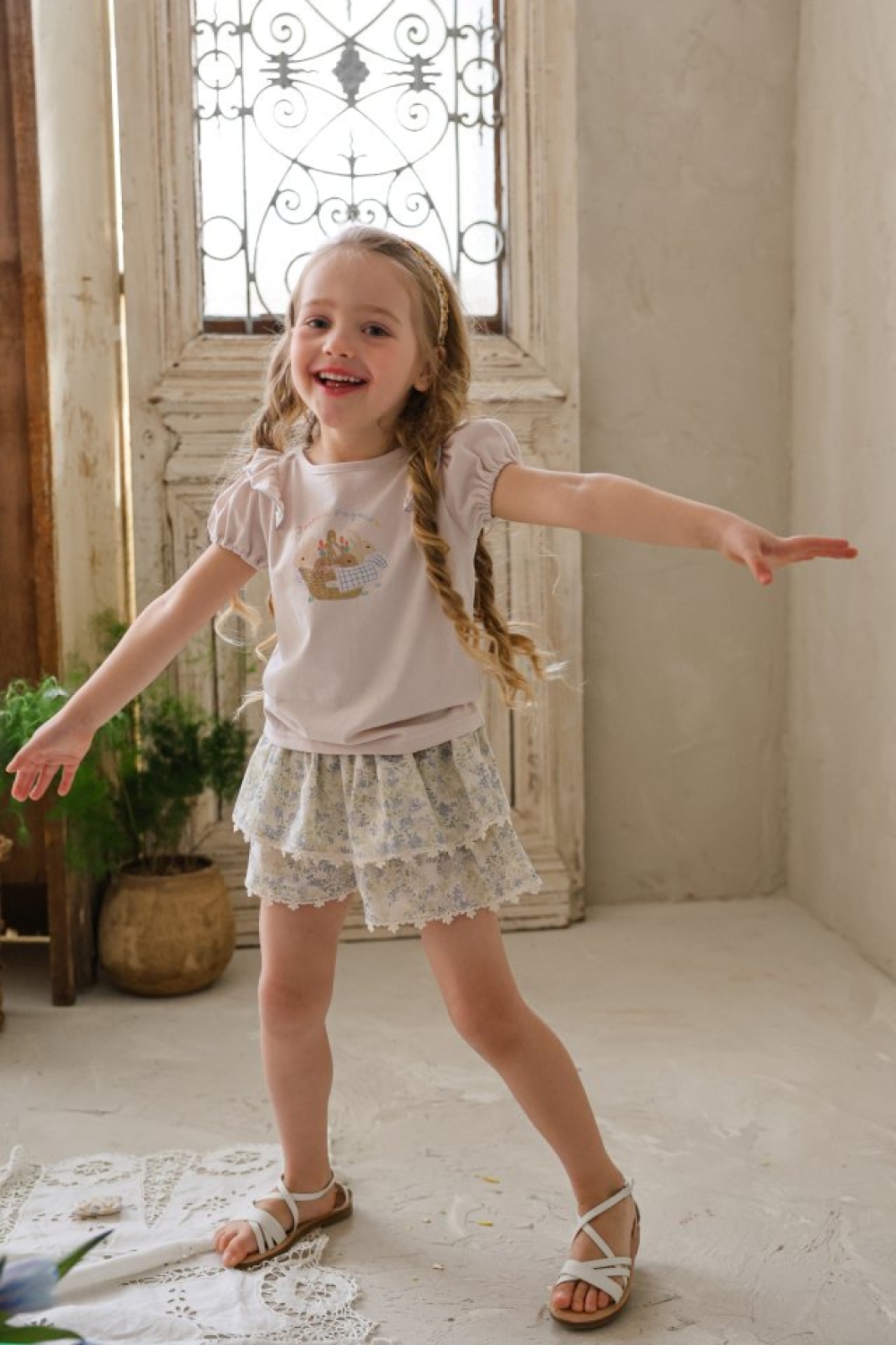 FLO12|(75-140) 兔兔公主袖上衣
