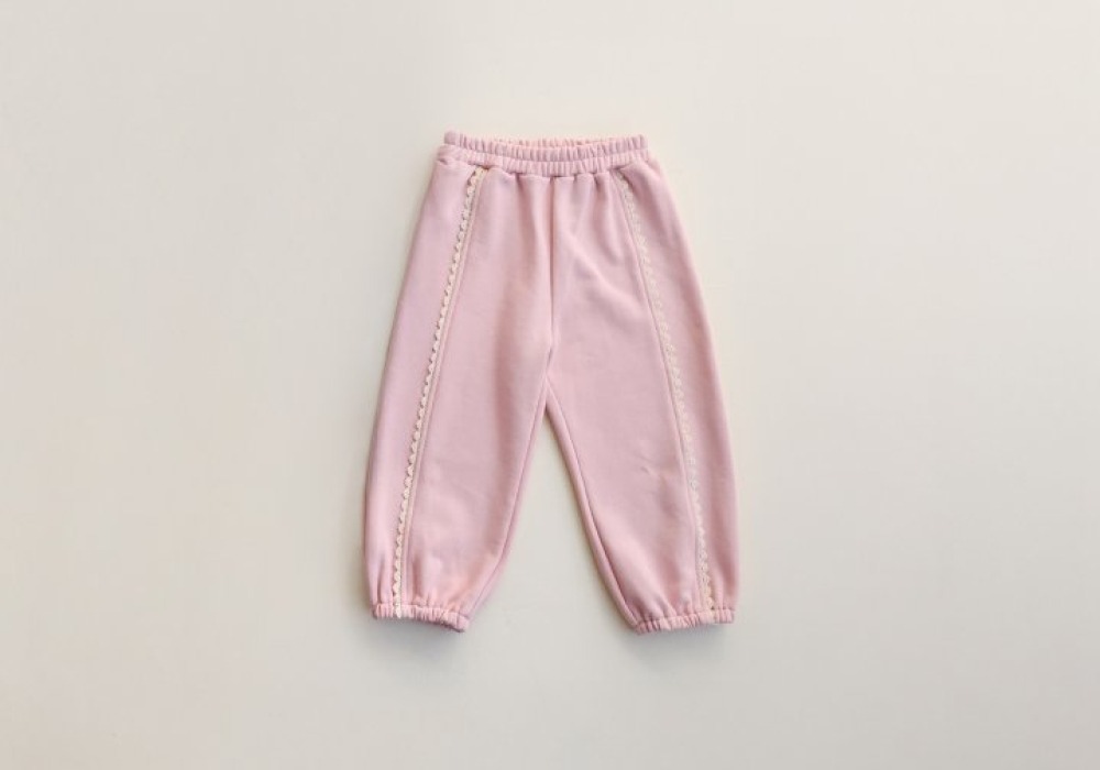 FLO13|(75-140) 2色蕾絲滾邊休閒縮口褲