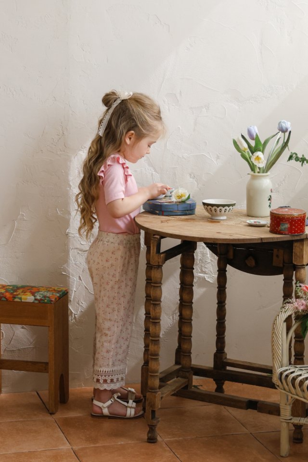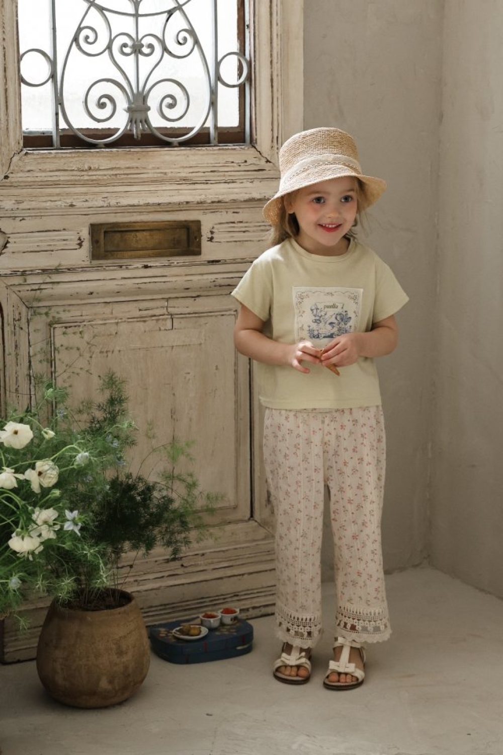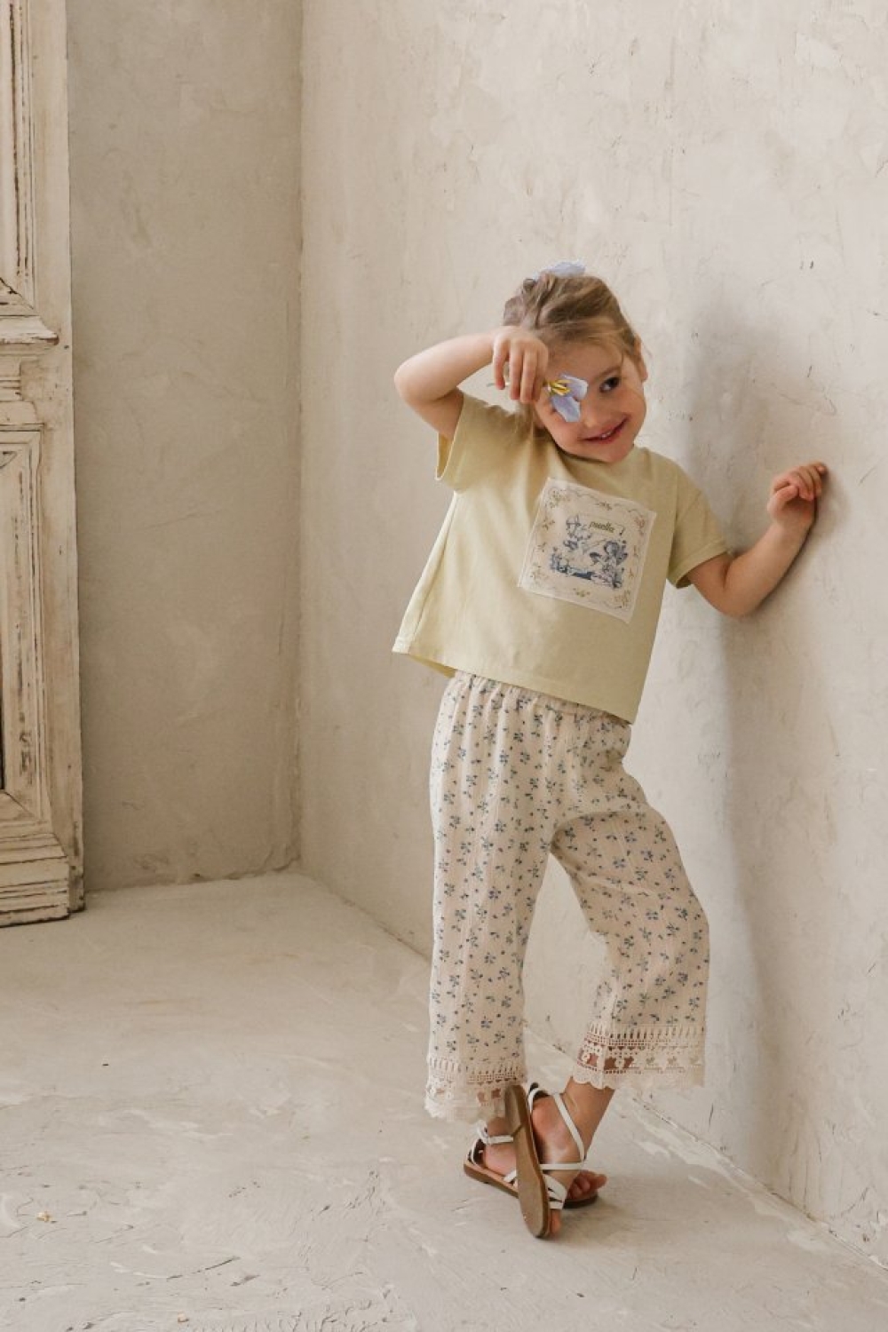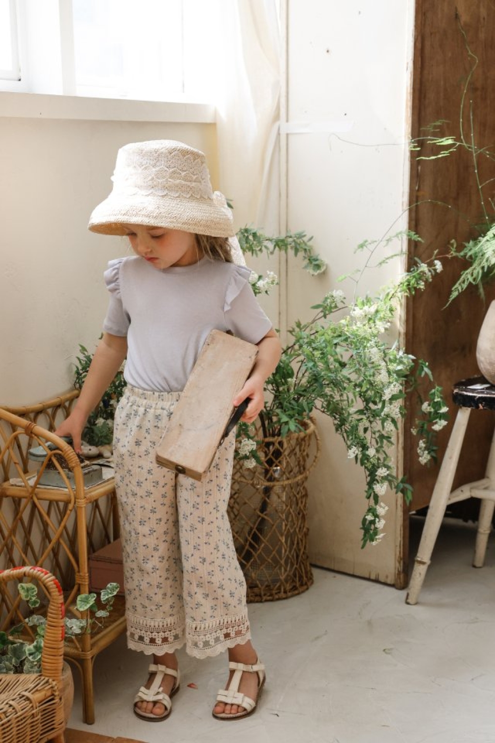 FLO18|(75-140) 碎花蕾絲邊長褲