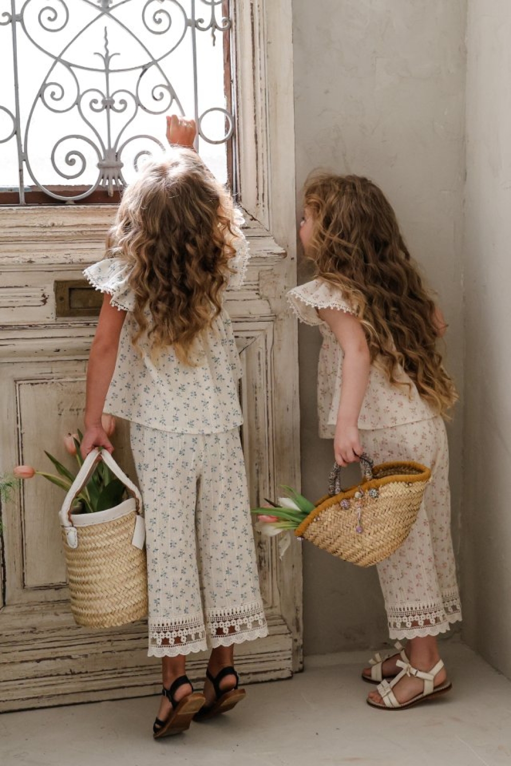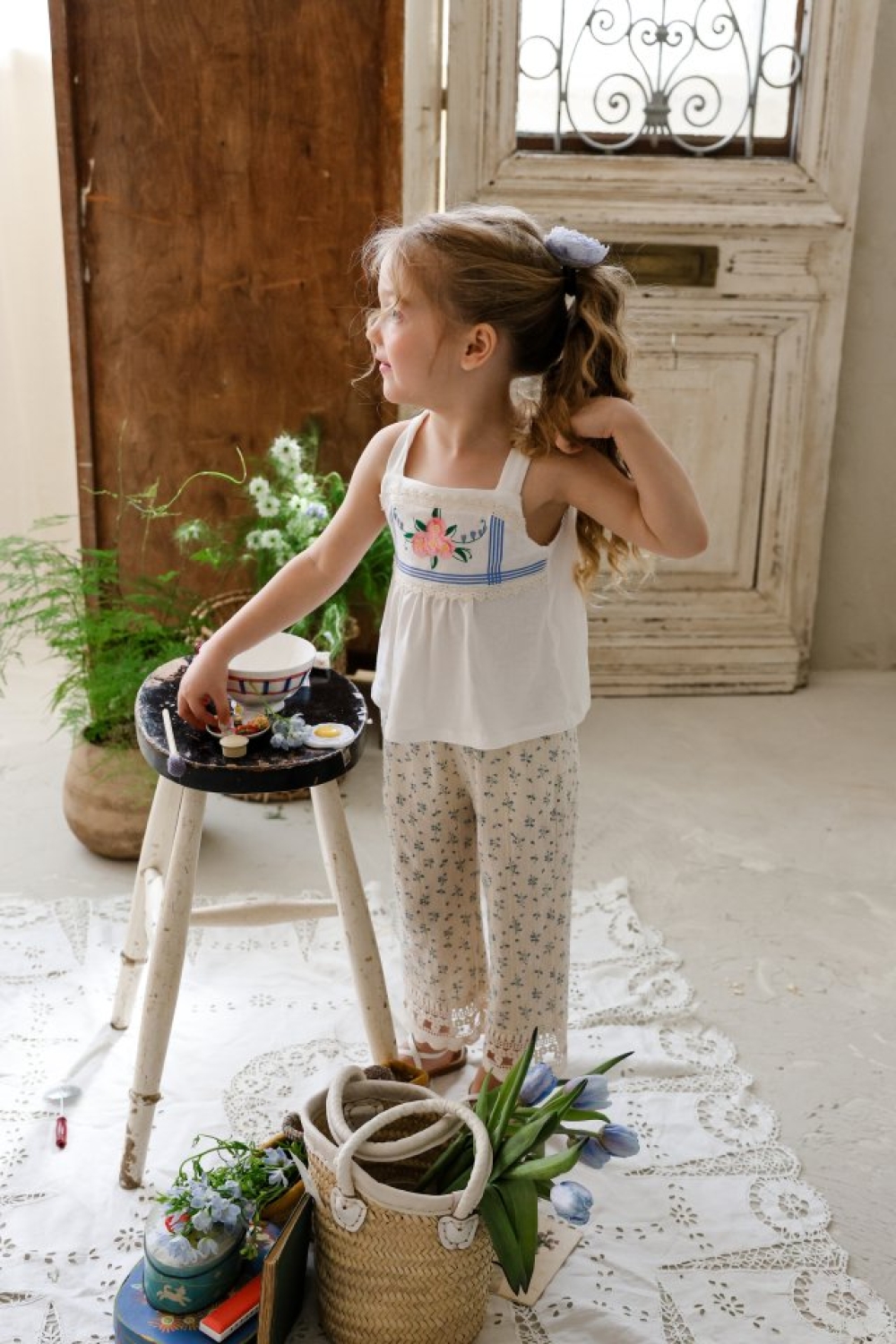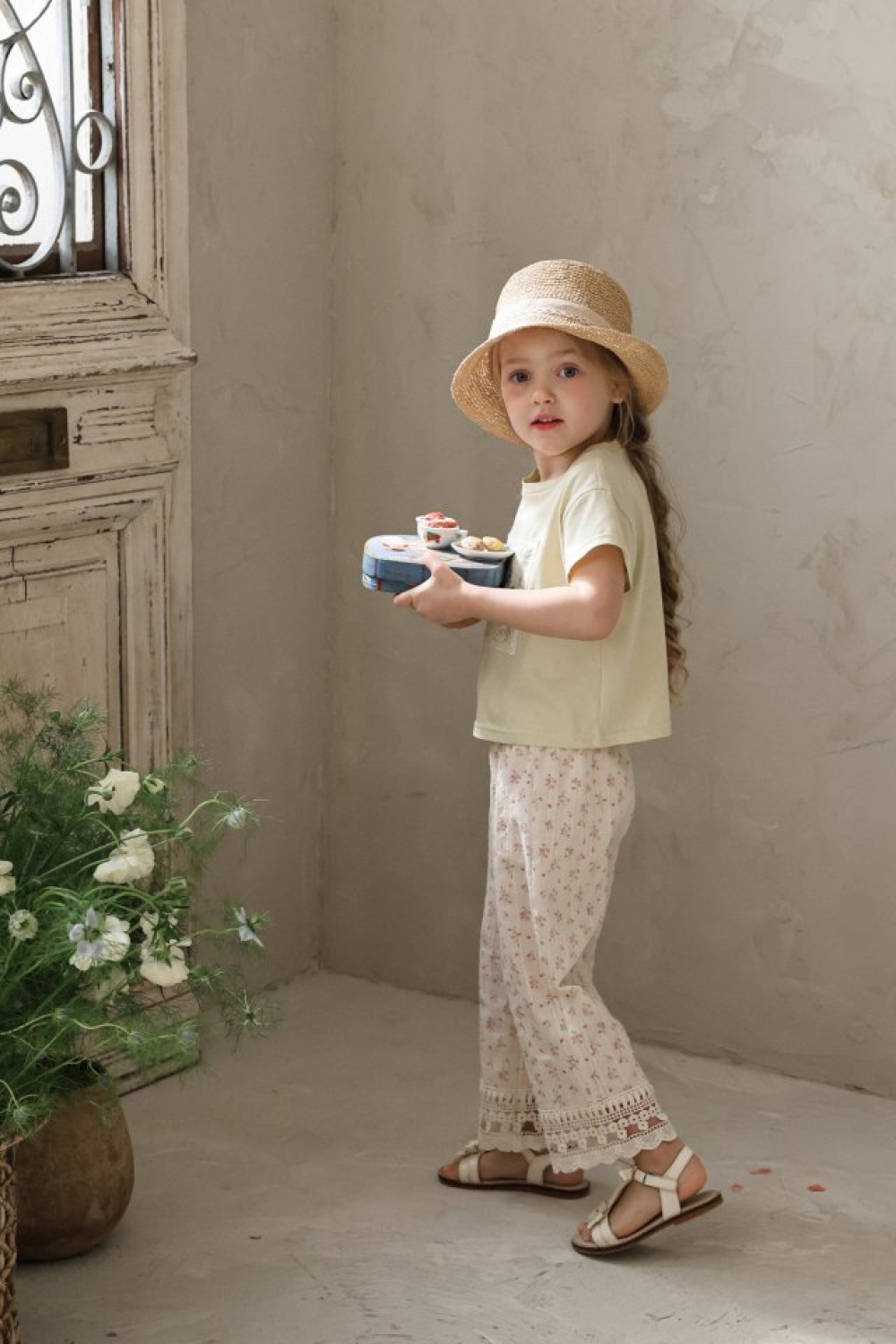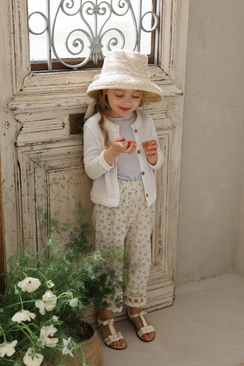 FLO18|(75-140) 碎花蕾絲邊長褲