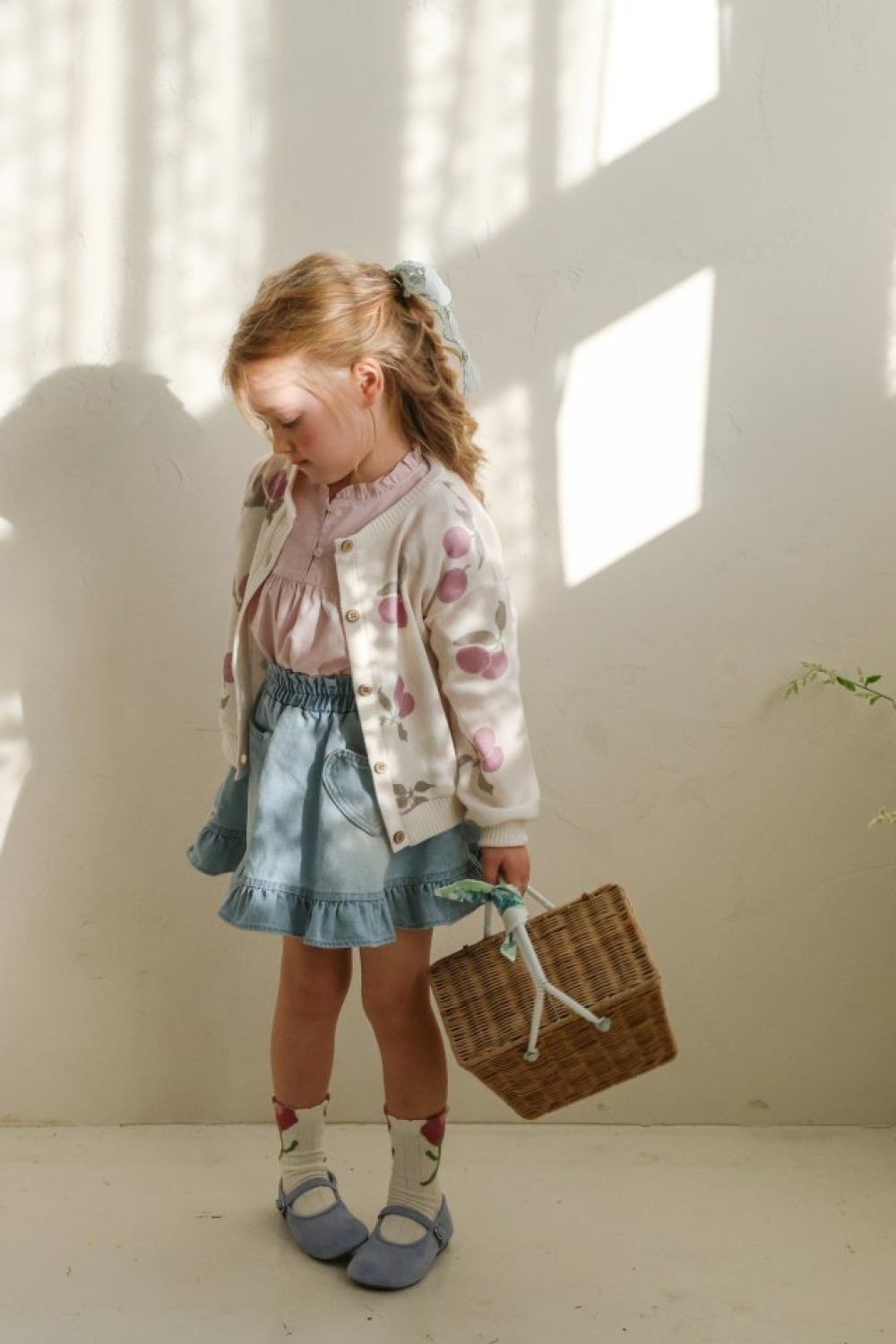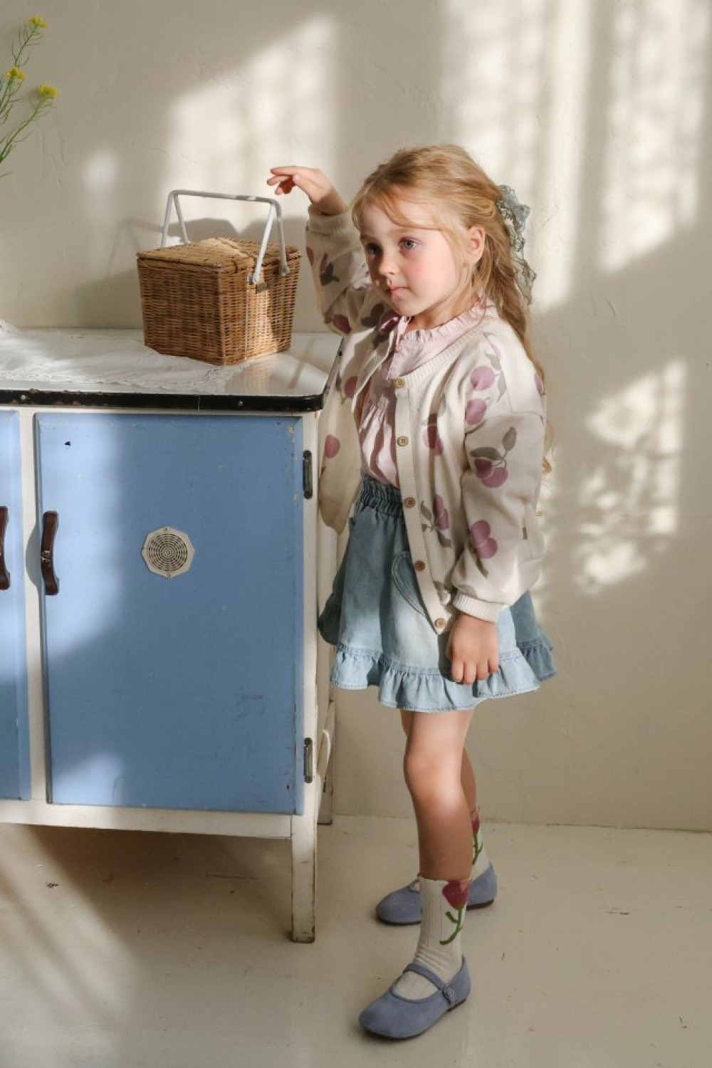 FLO21|(75-140) 2色愛心荷葉牛仔裙