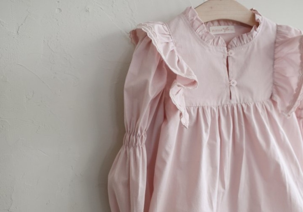 FLO20|(75-140) 2色荷葉滾邊飛袖襯衫