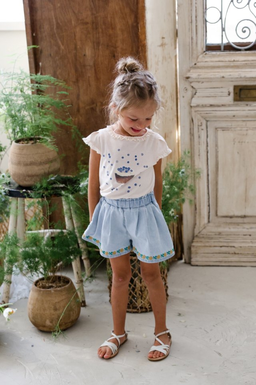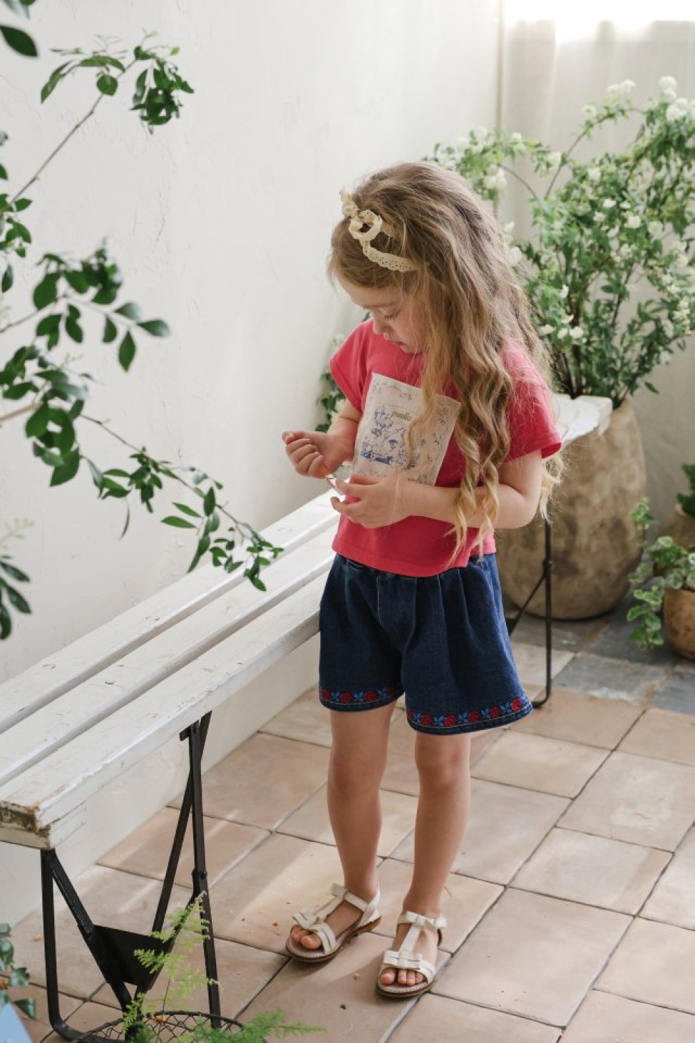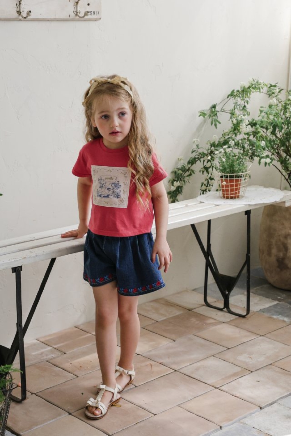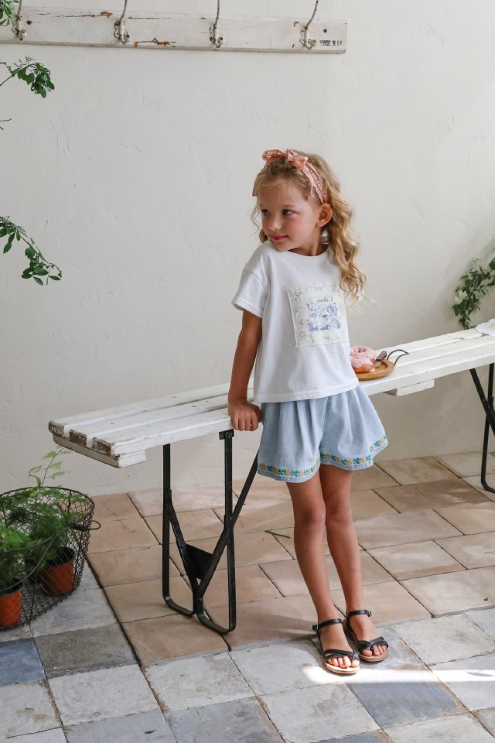 1st blue02|(~93-118cm) 蝴蝶結滾邊刺繡短褲
