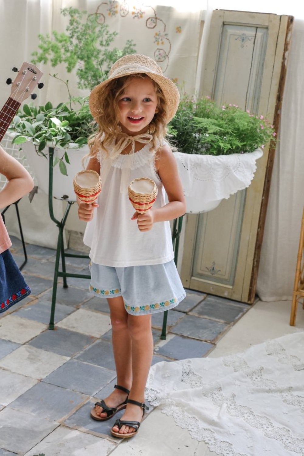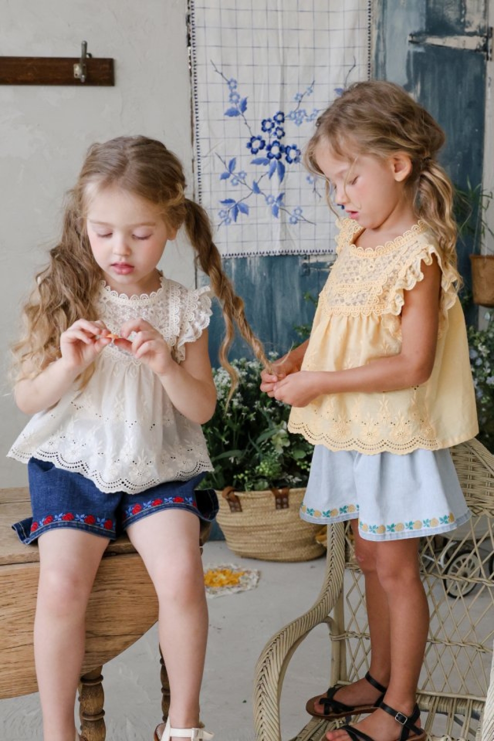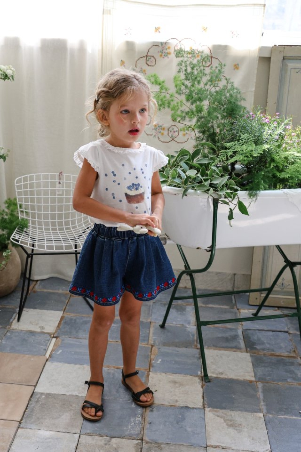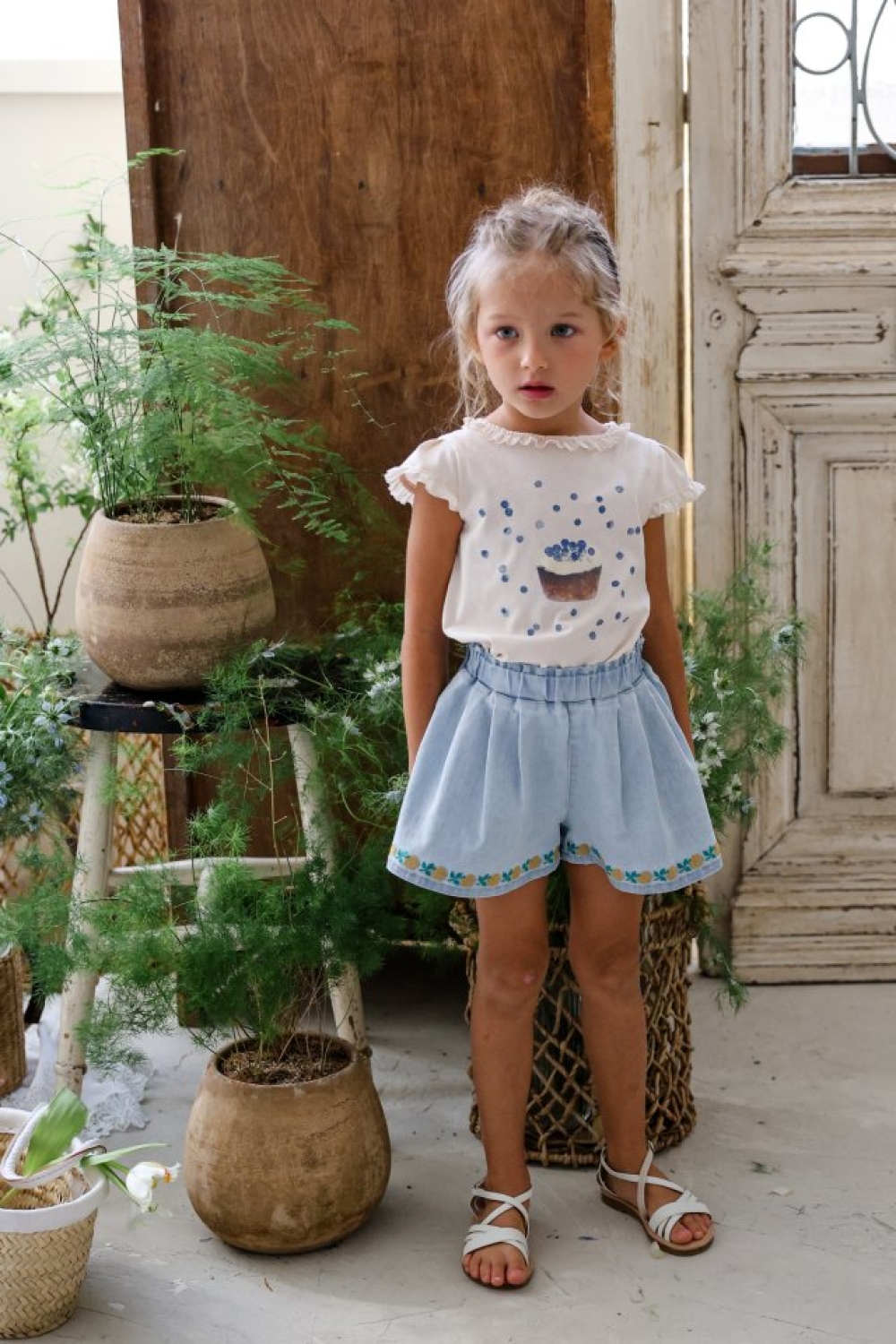 1st blue02|(~93-118cm) 蝴蝶結滾邊刺繡短褲