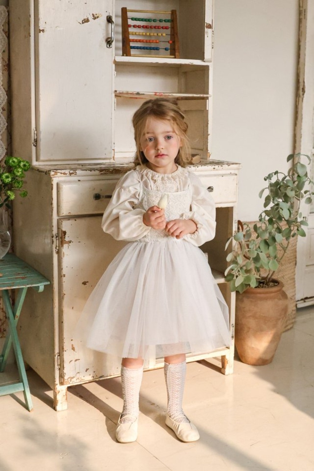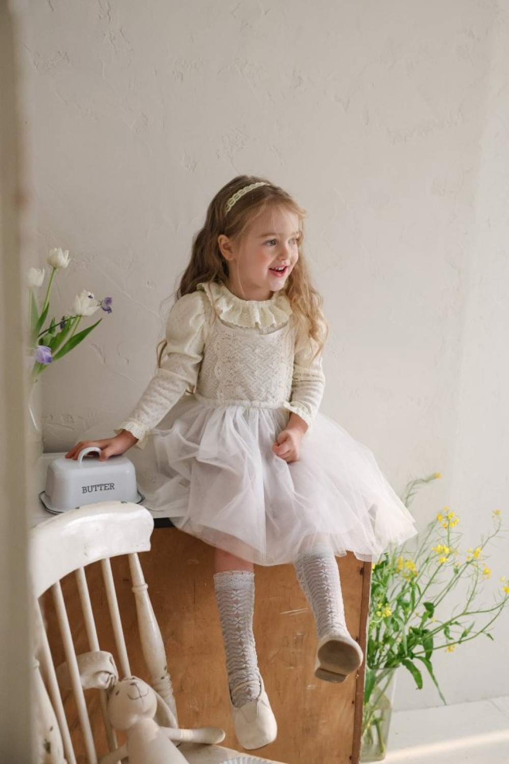 Bebe holic34|(3m-18m) 花瓣蕾絲立領上衣