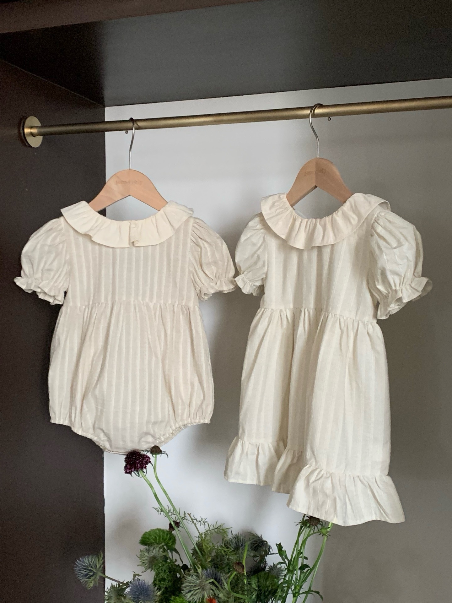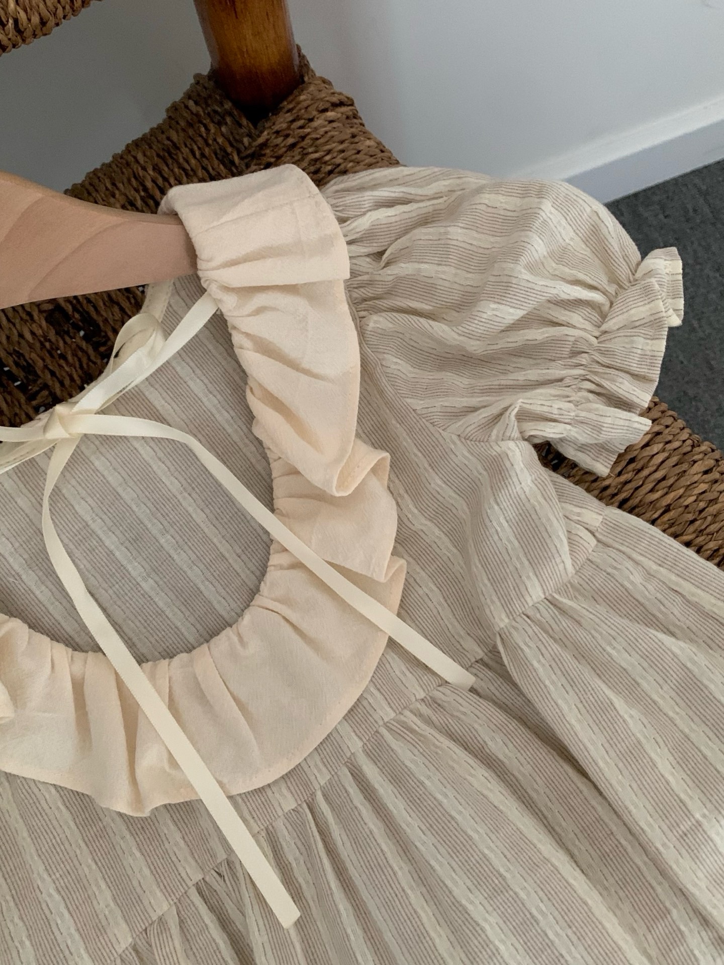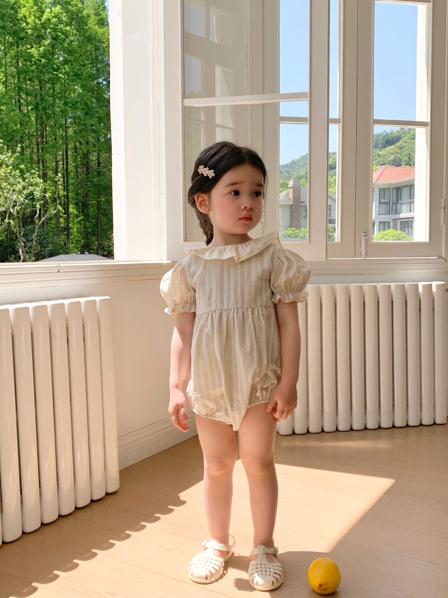 JE31|(66-120cm) 荷葉領條紋包屁衣/洋裝