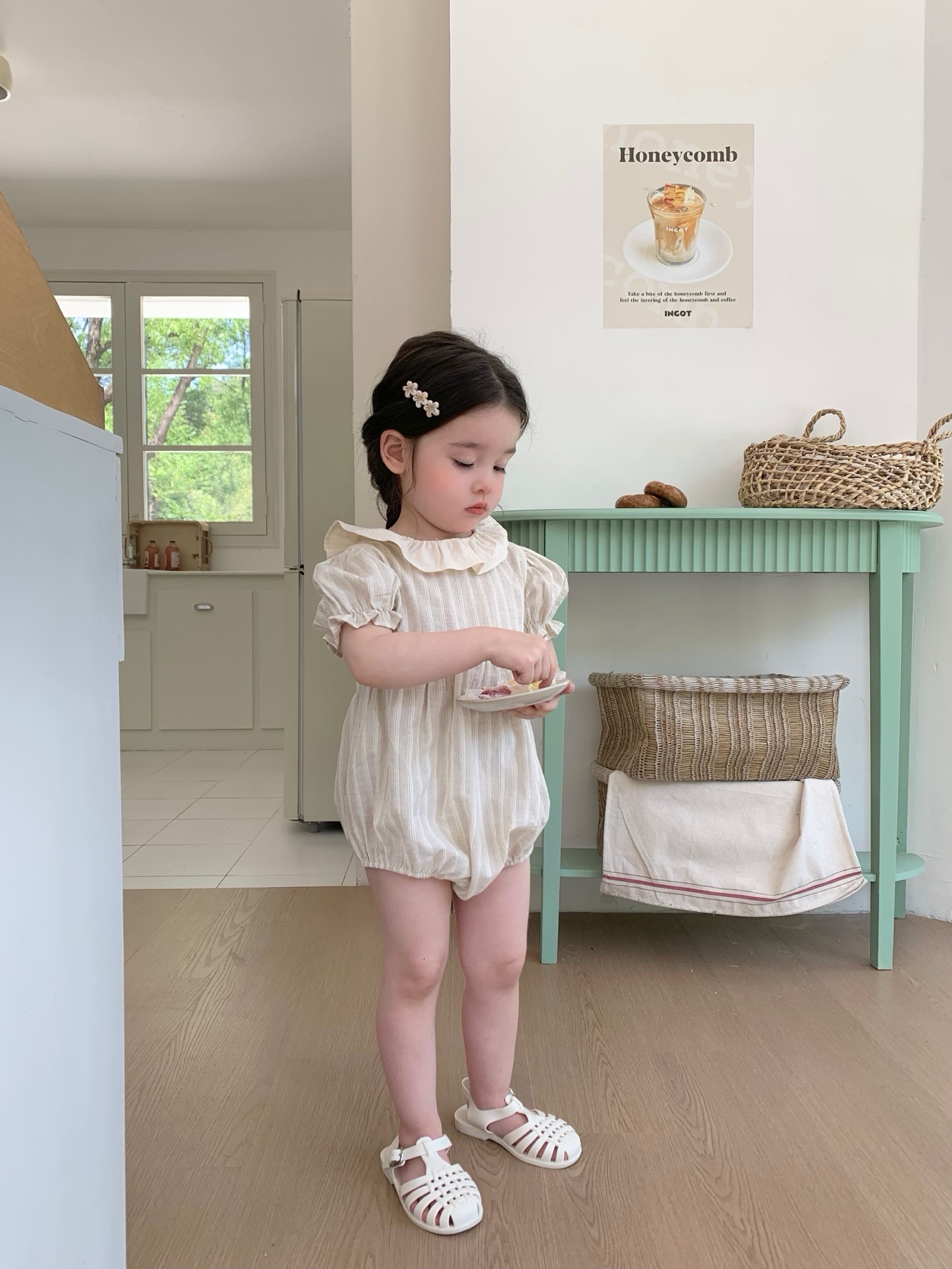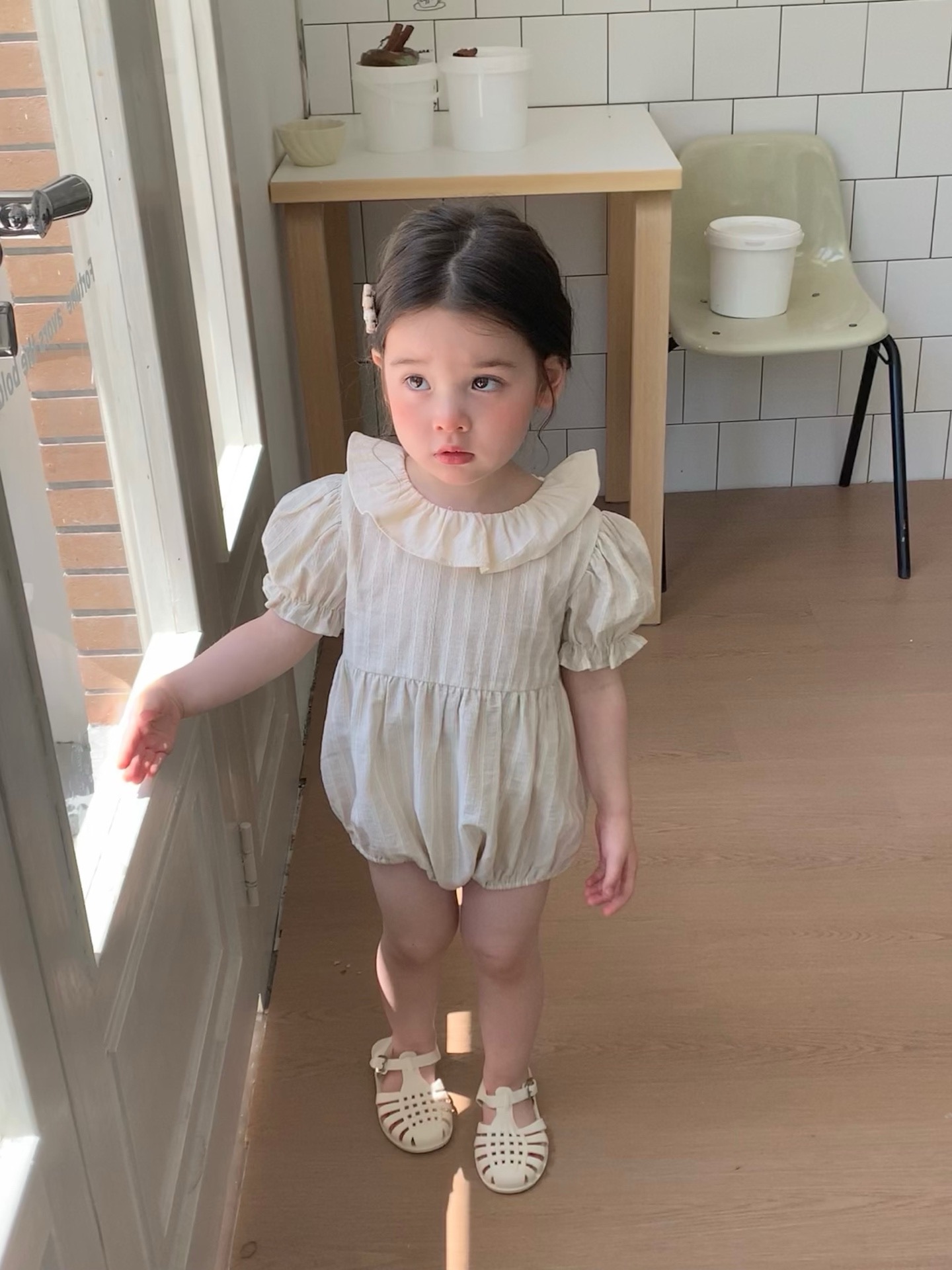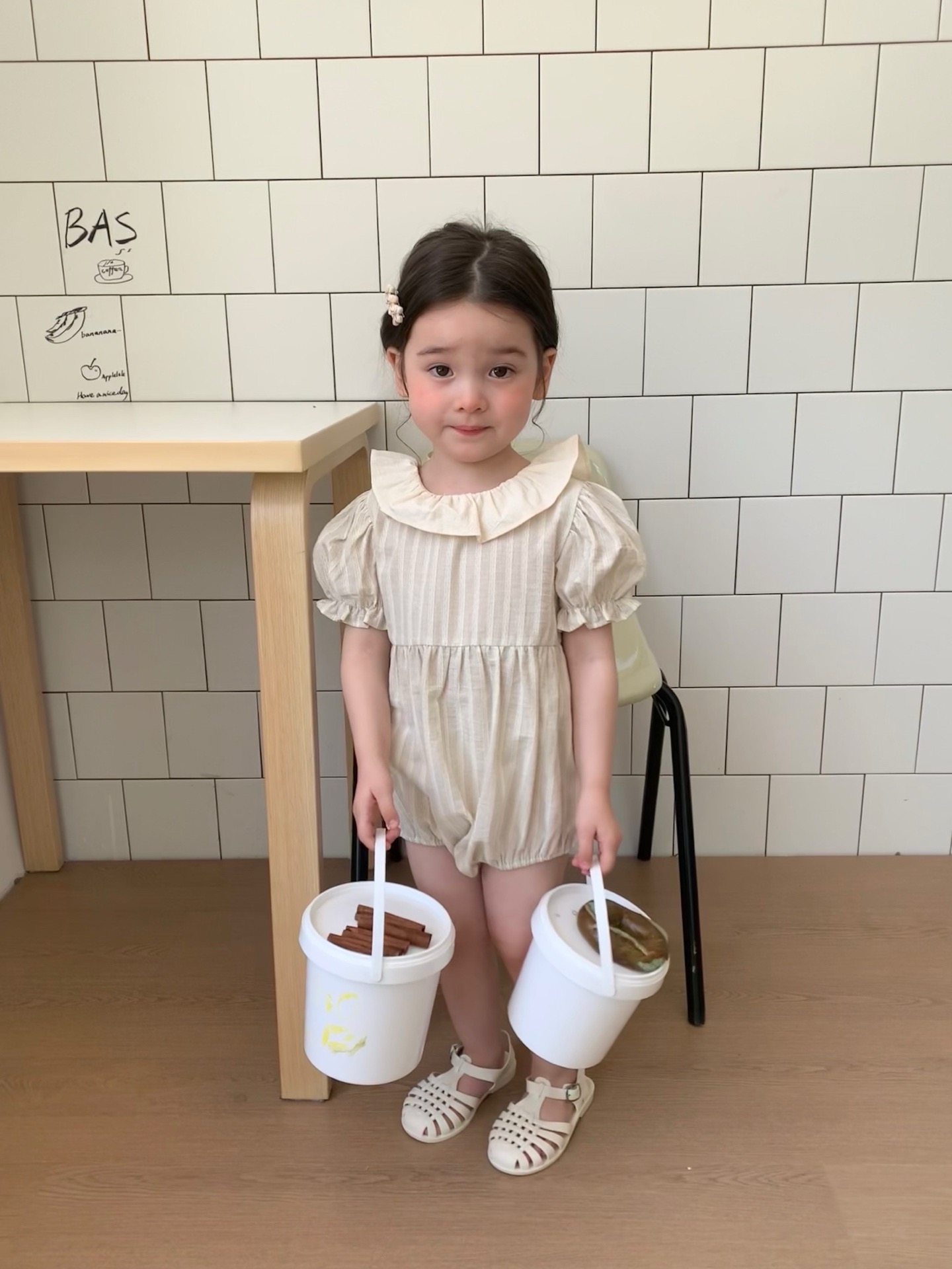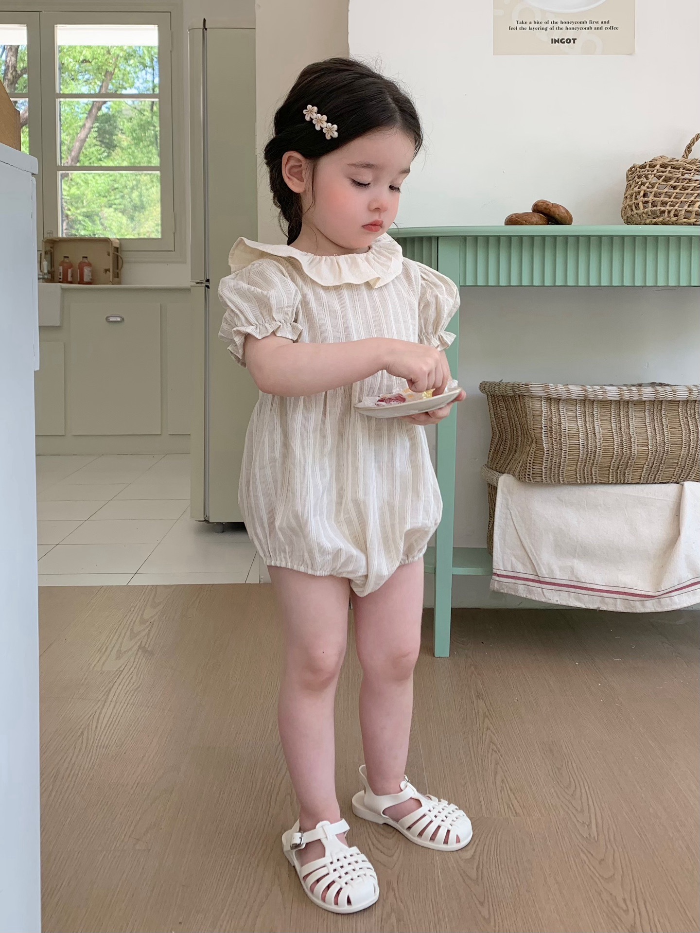 JE31|(66-120cm) 荷葉領條紋包屁衣/洋裝