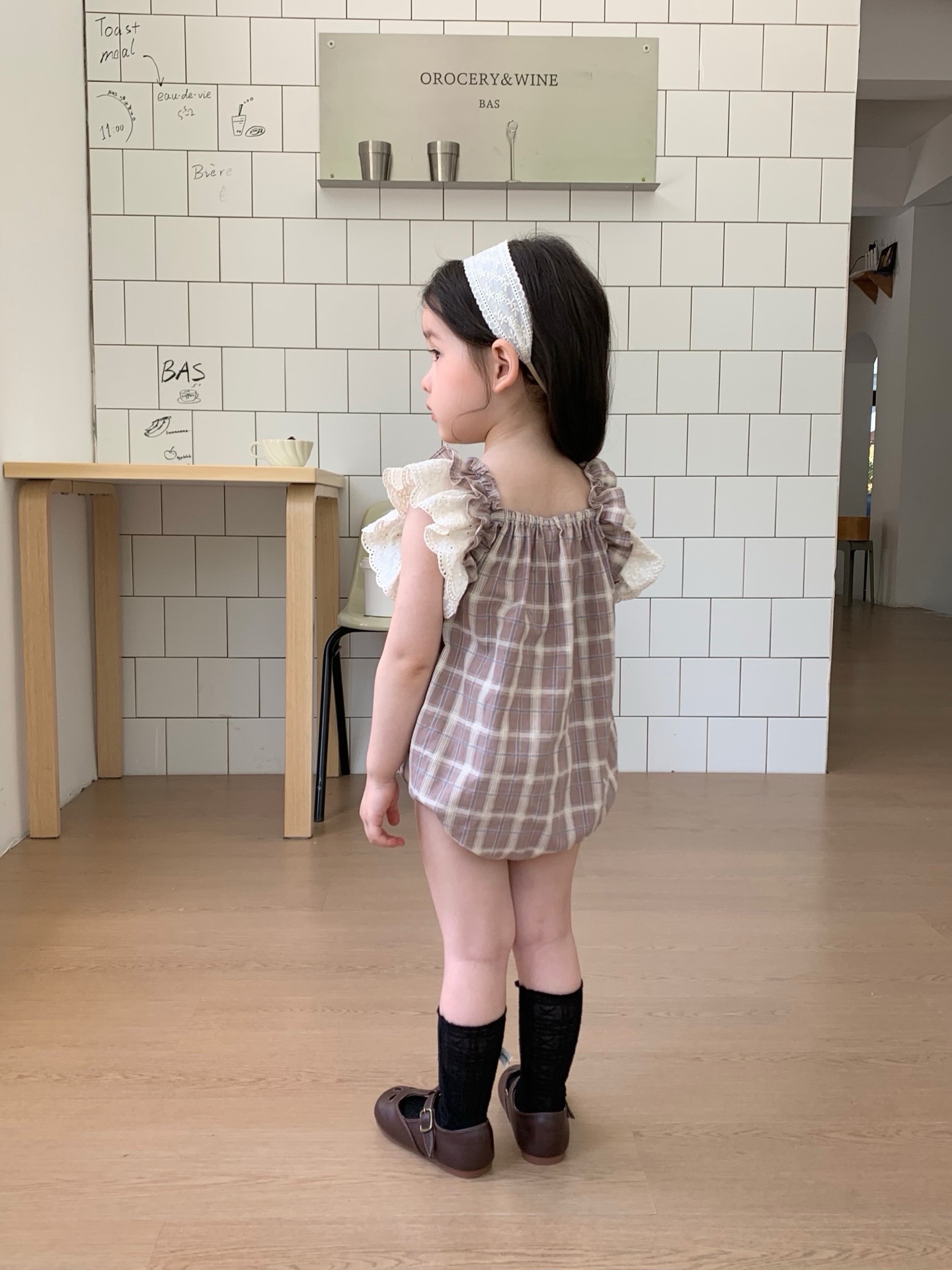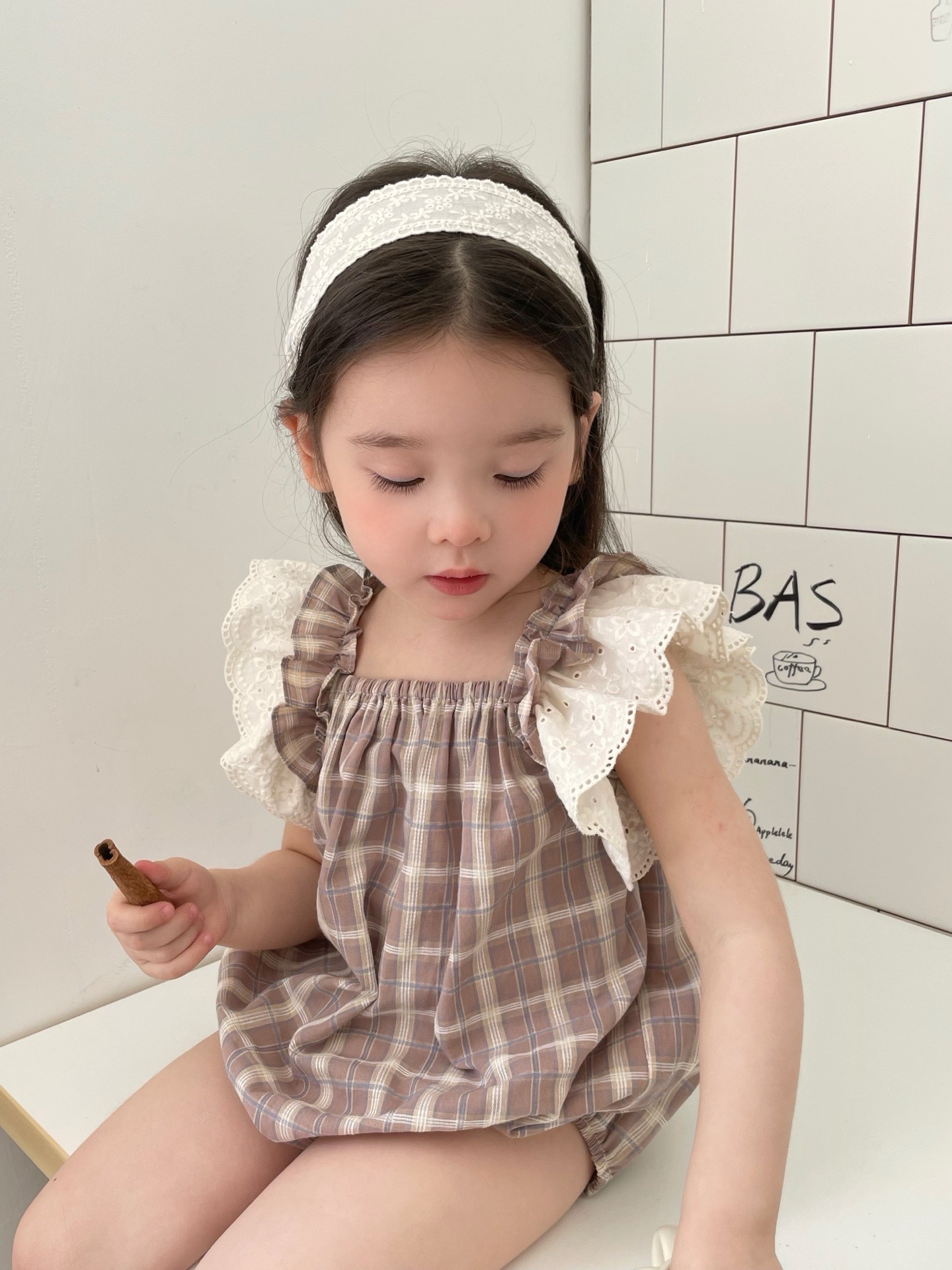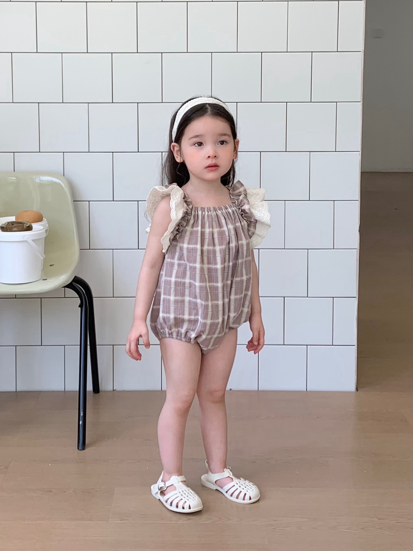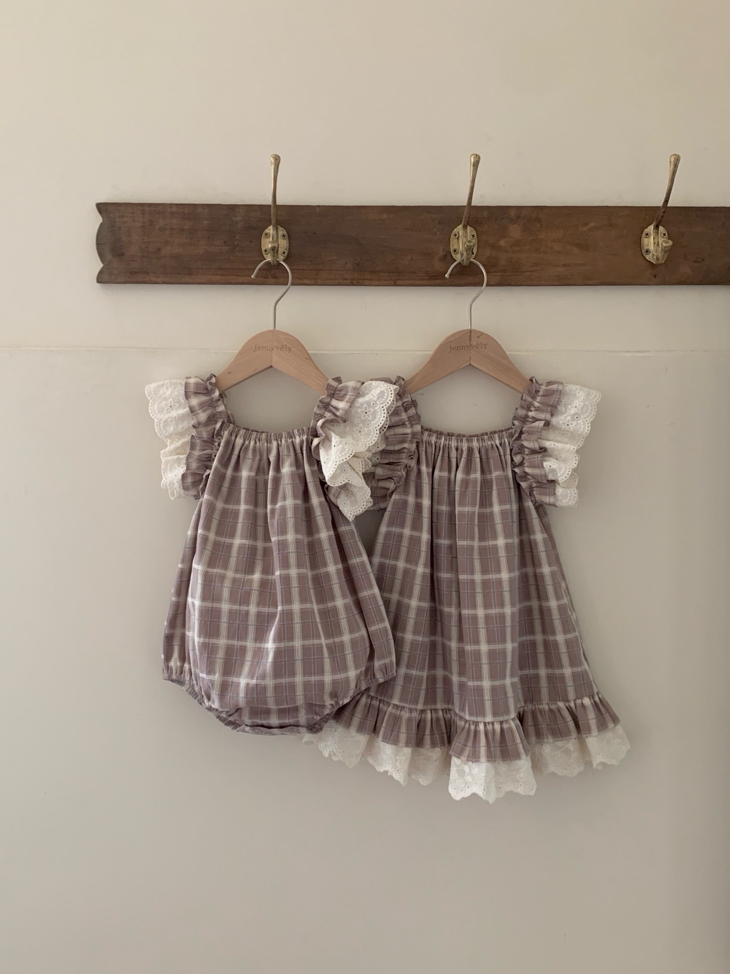 JE618|(73cm-100cm) 格紋蕾絲綁帶包屁衣