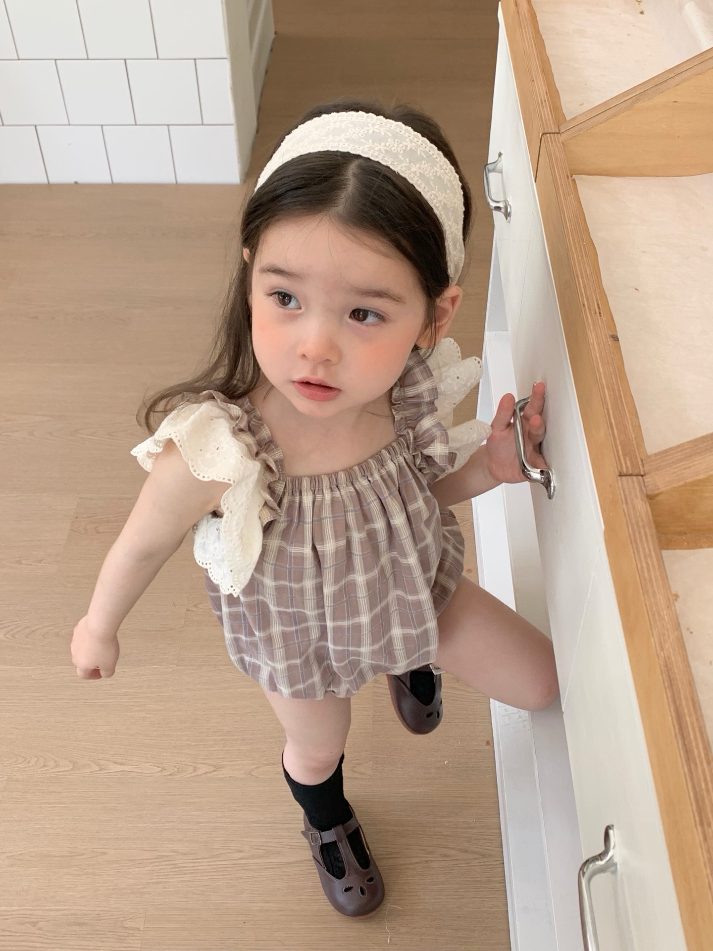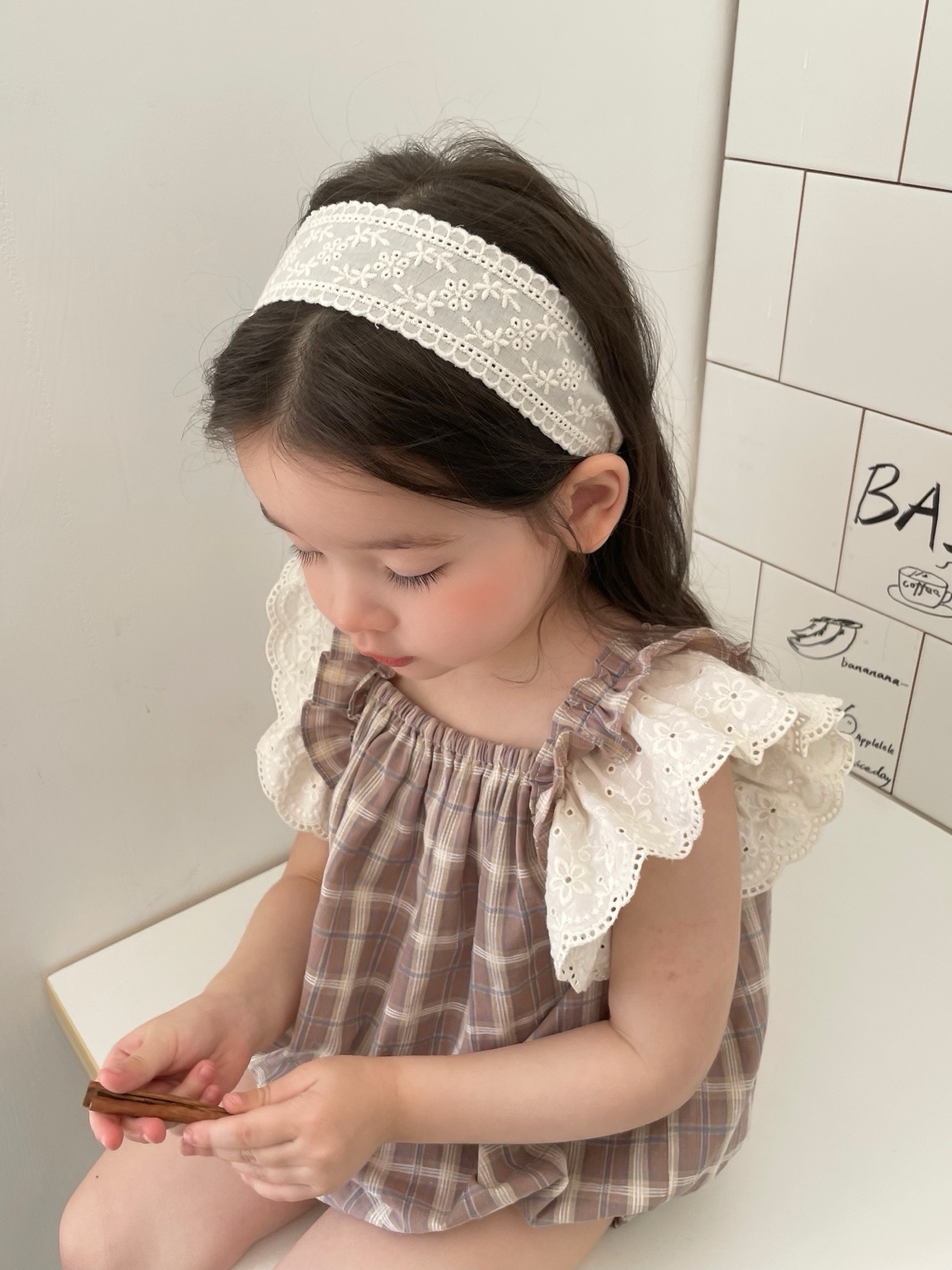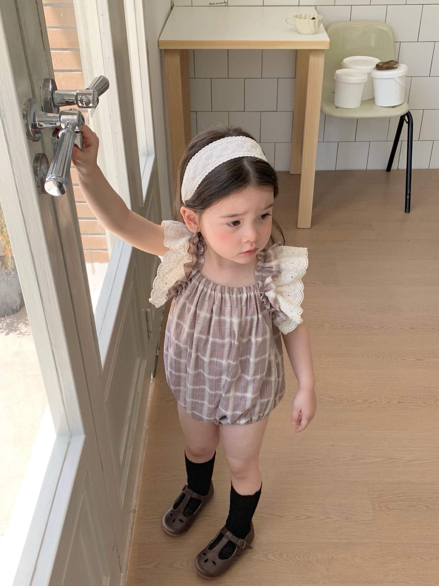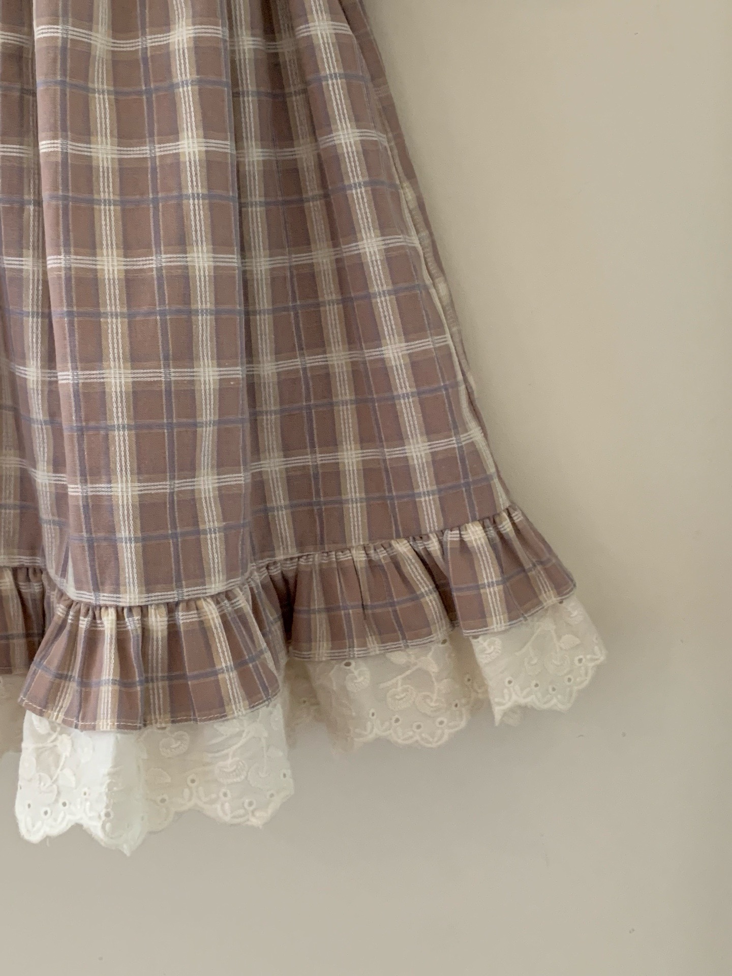 JE618|(73cm-100cm) 格紋蕾絲綁帶包屁衣