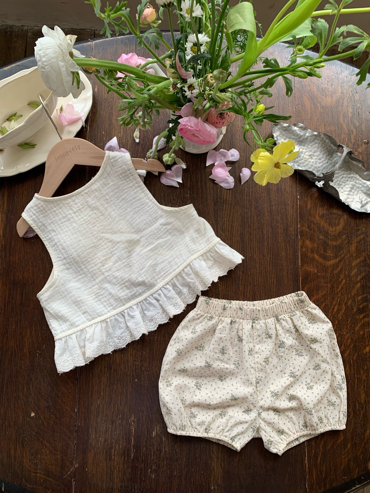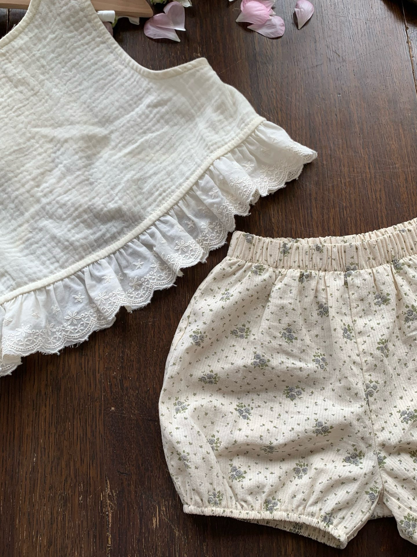 JE39|(73-100cm) 花邊背心碎花短褲套裝