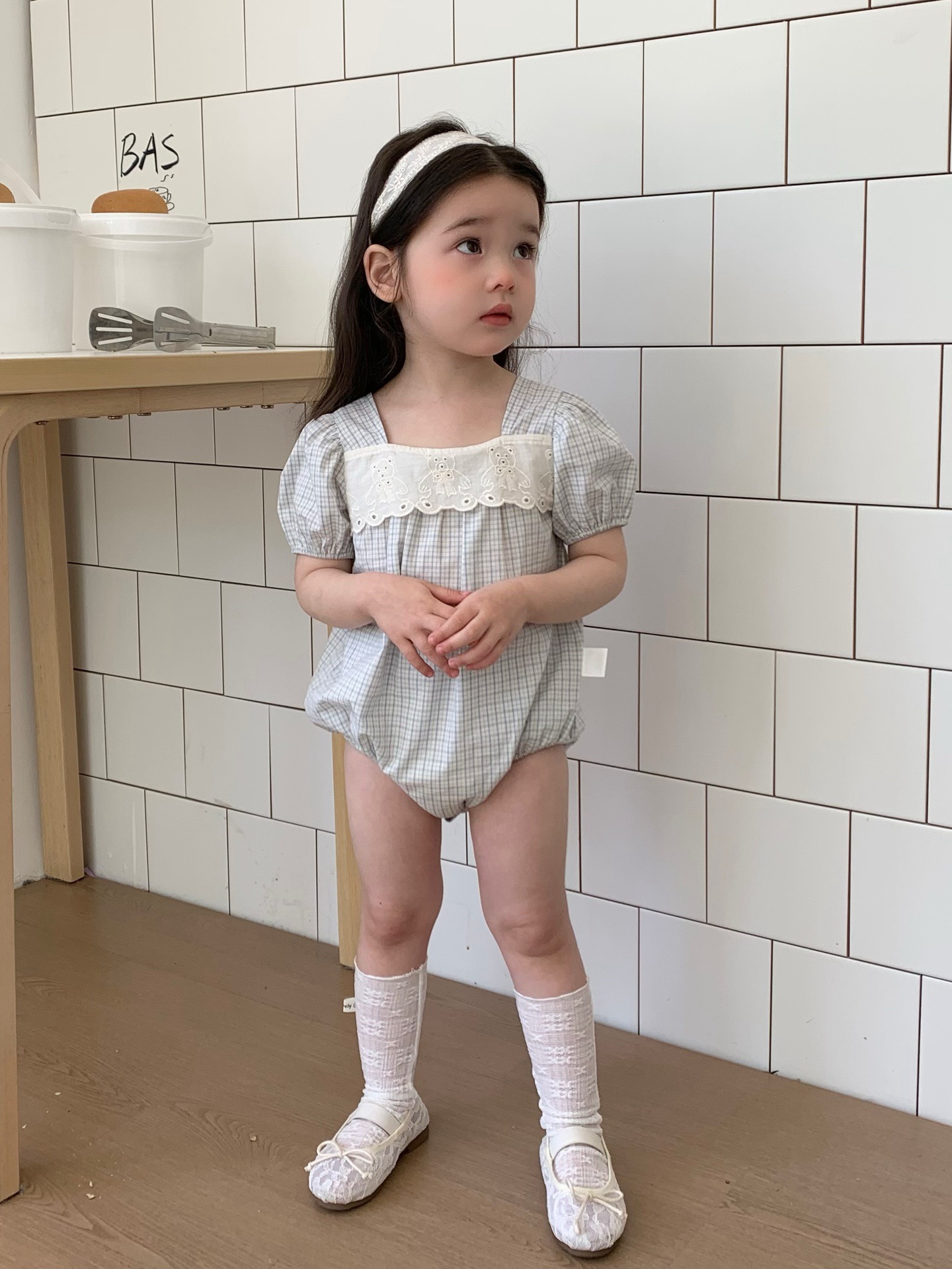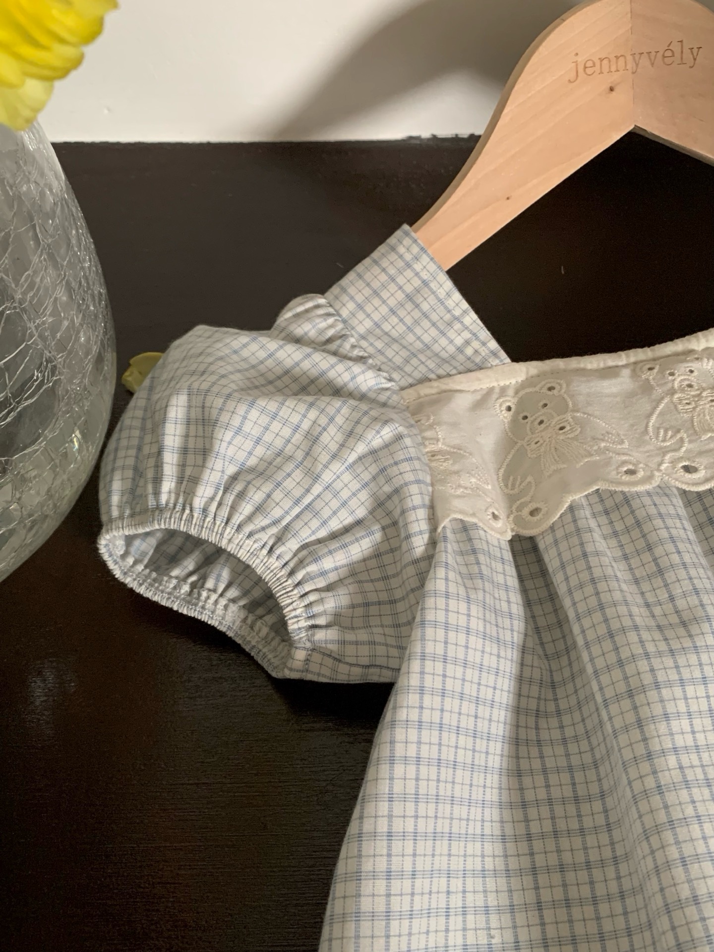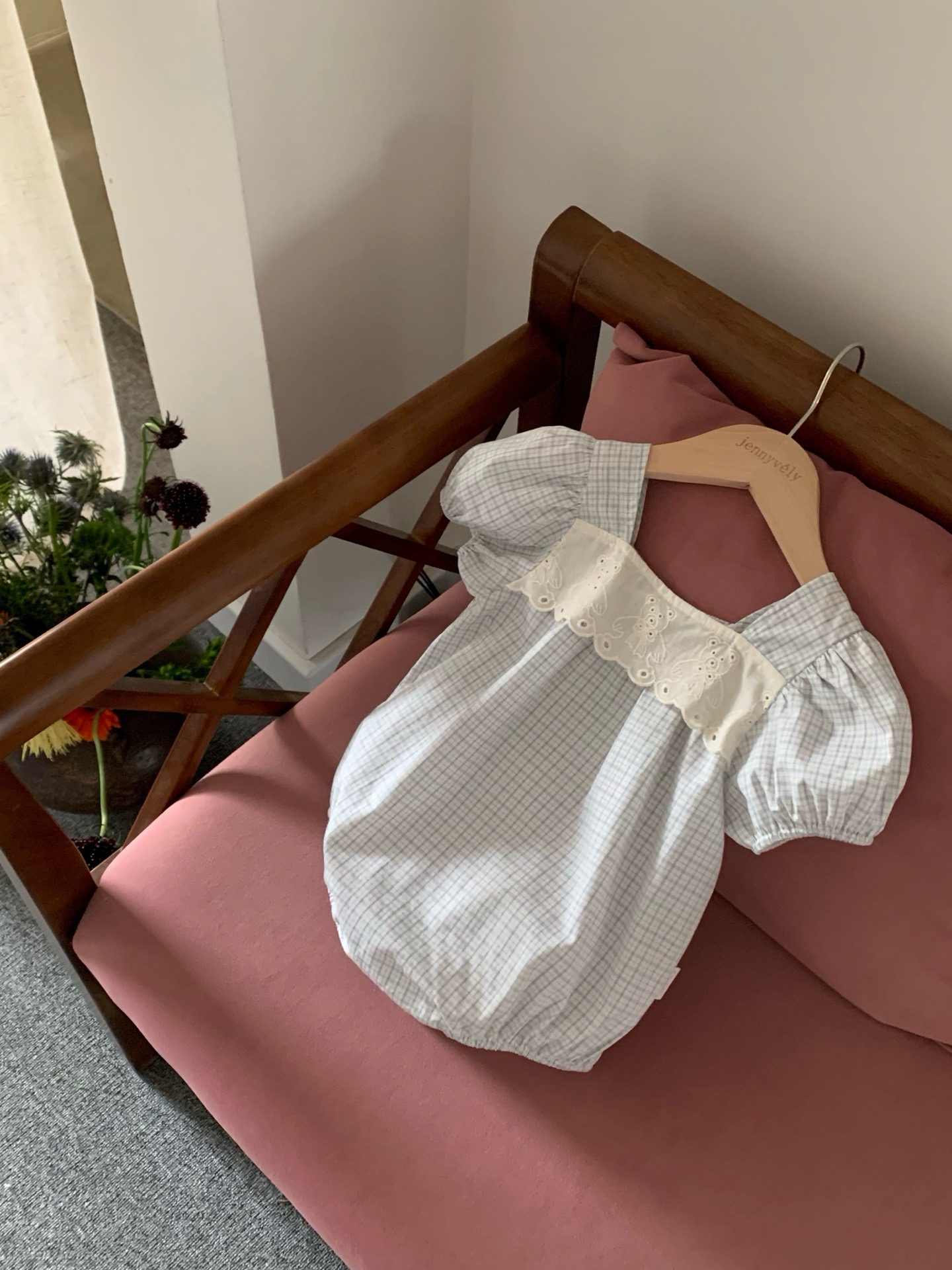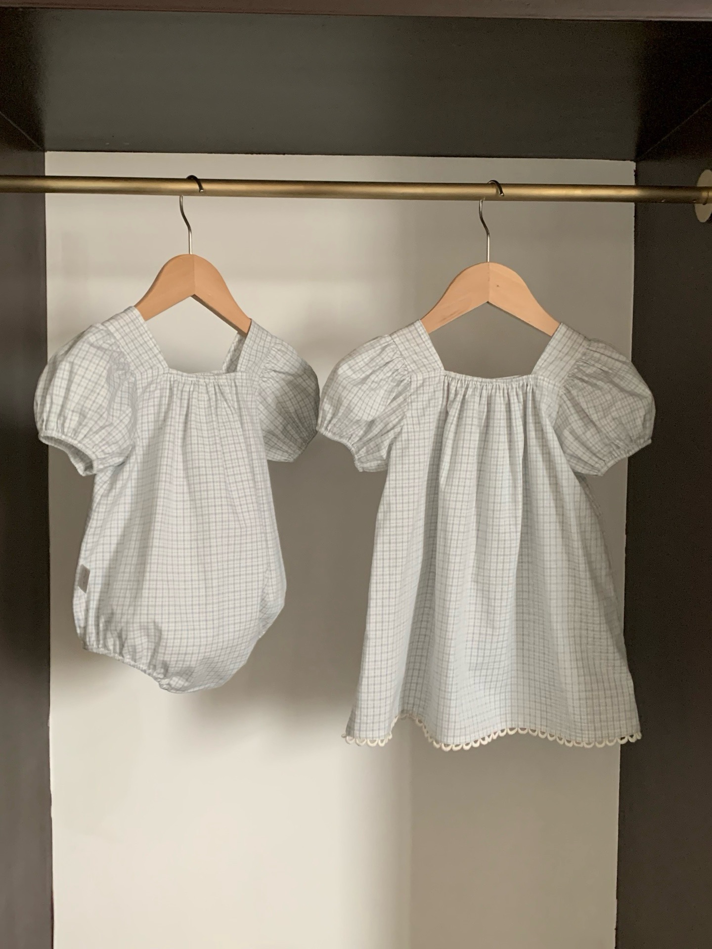 JE45|(66-120cm) 水藍格紋包屁衣/洋裝