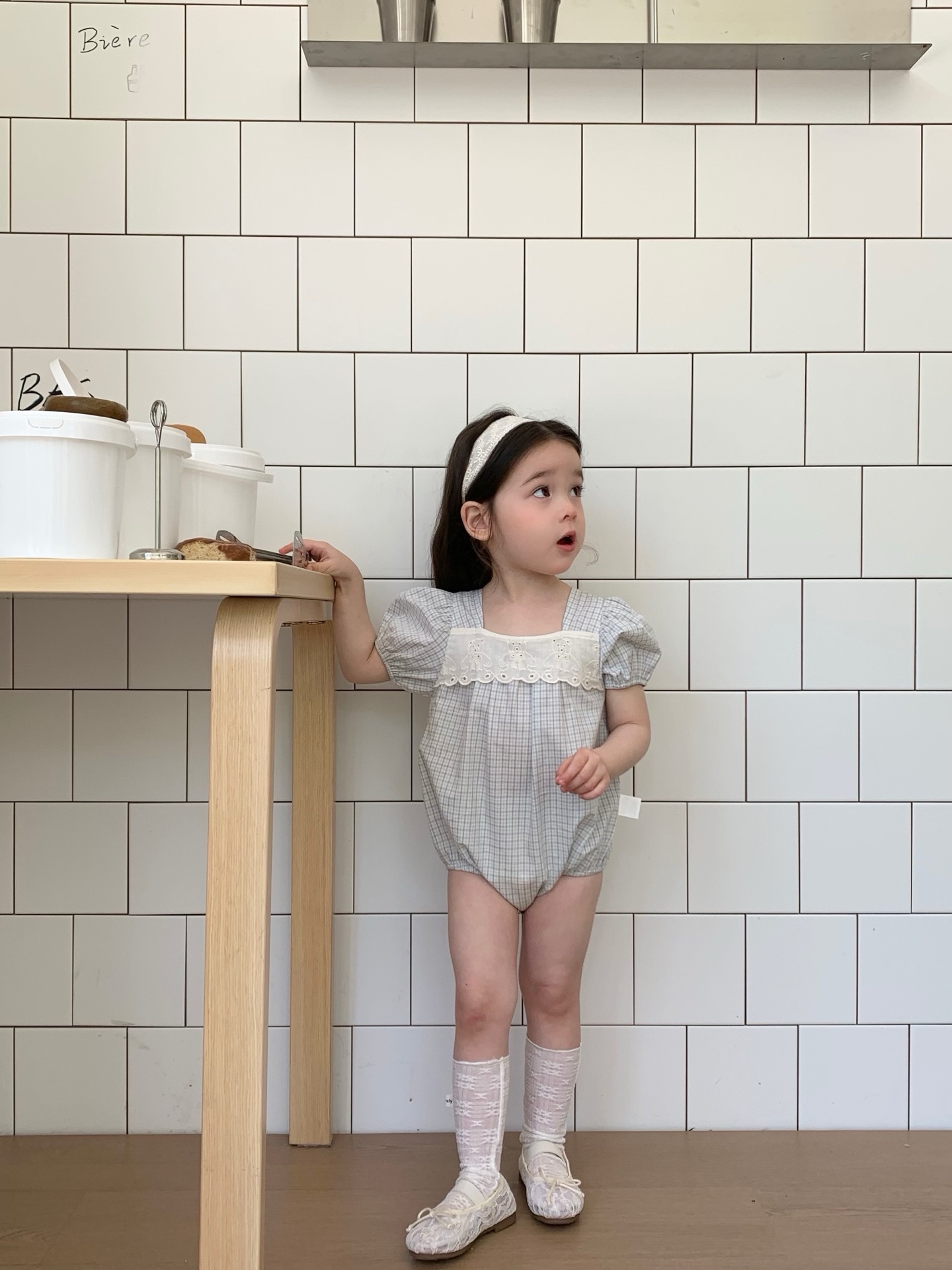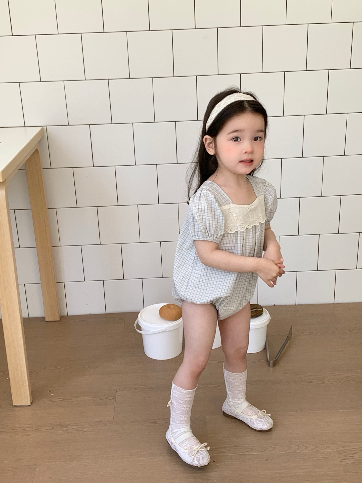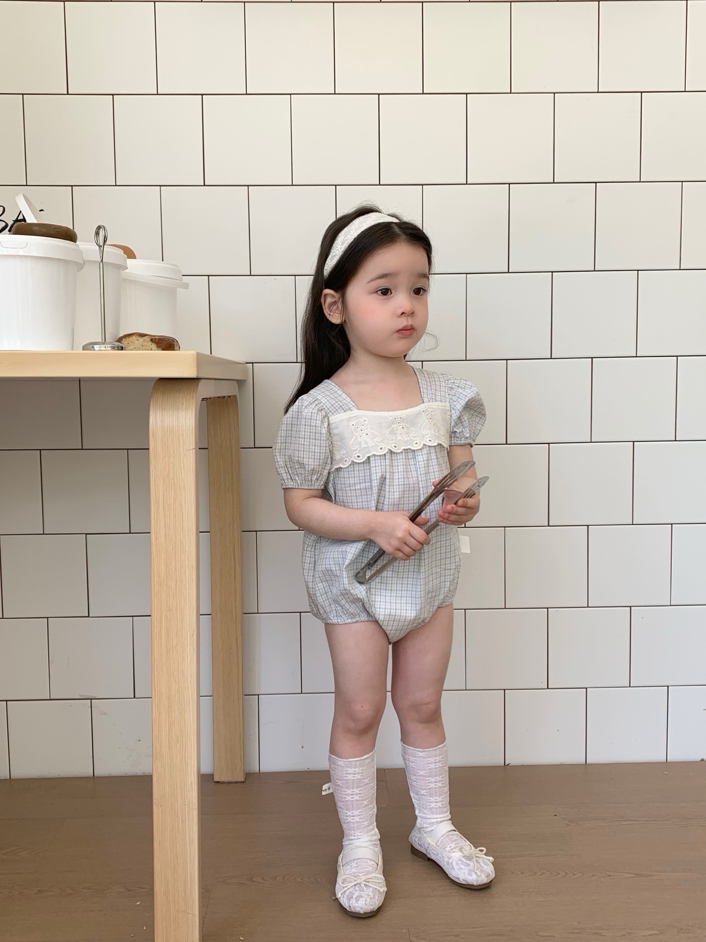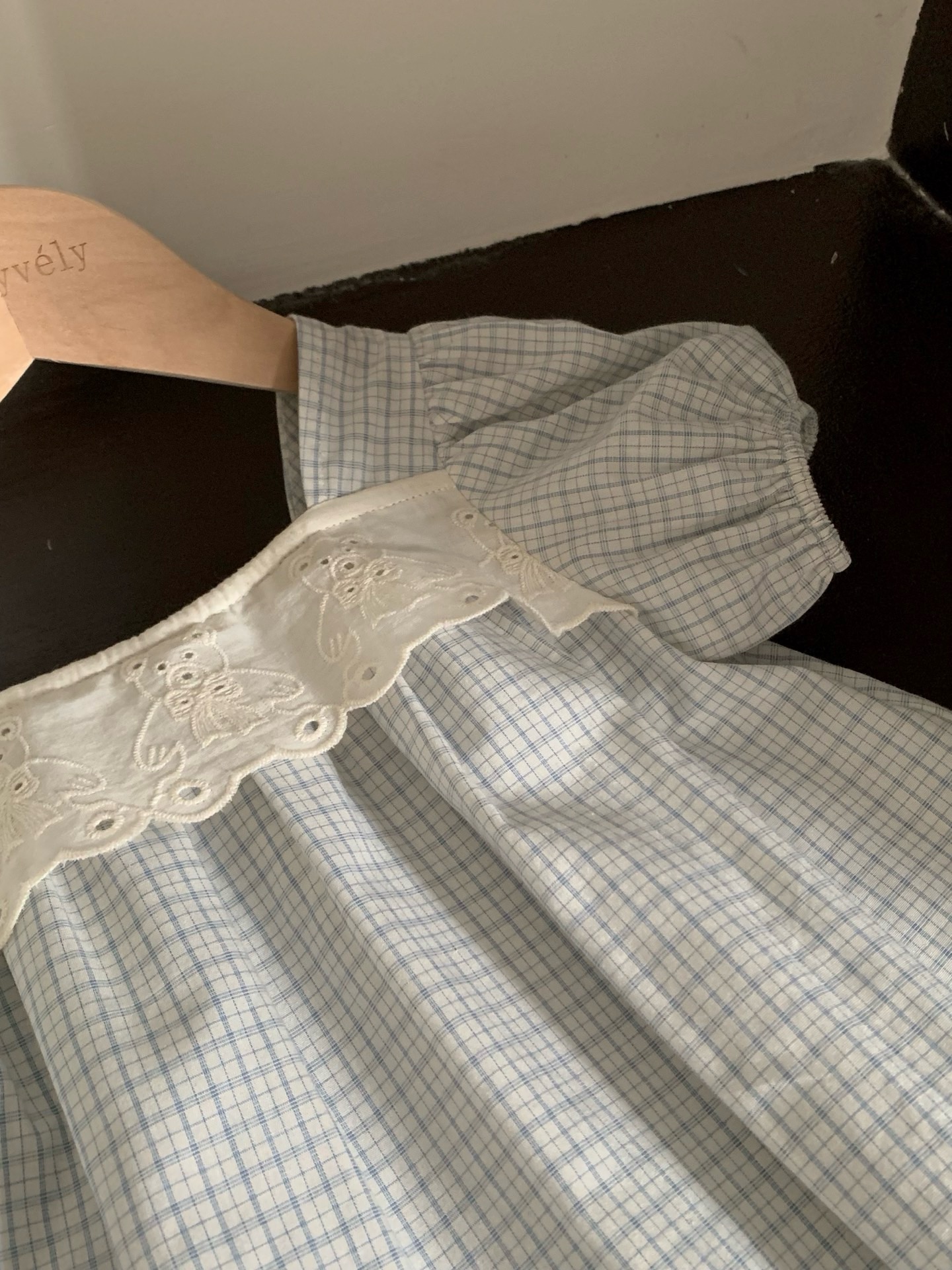 JE45|(66-120cm) 水藍格紋包屁衣/洋裝