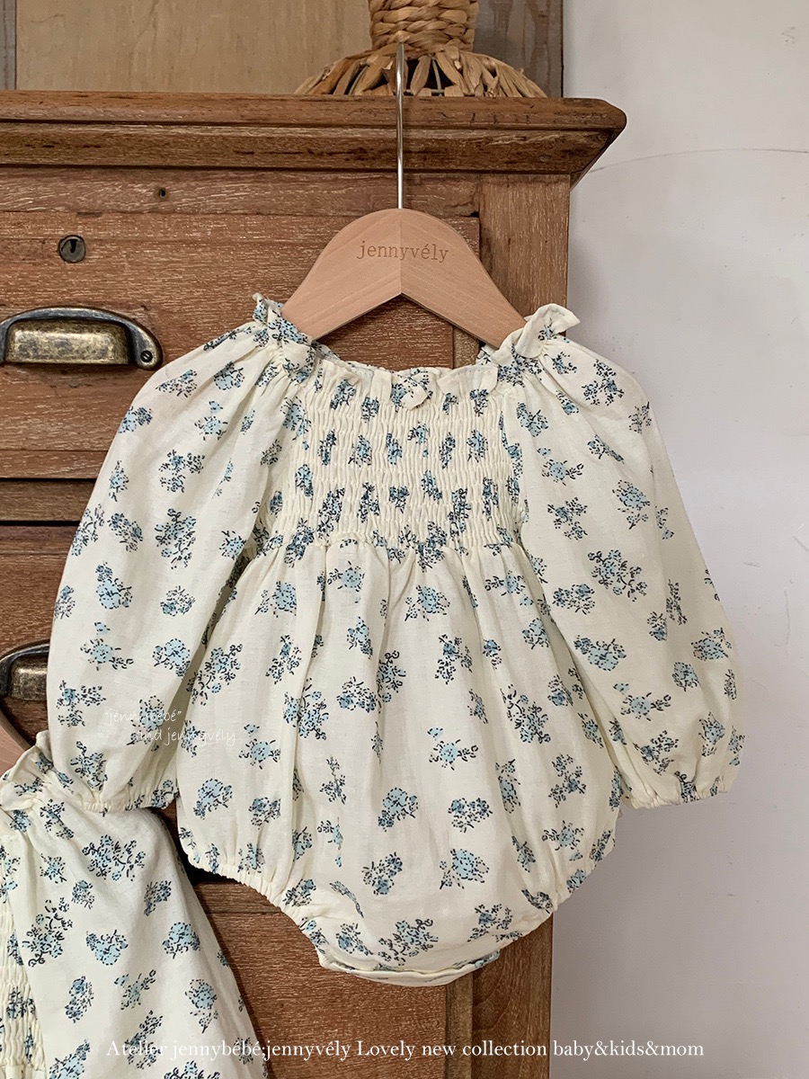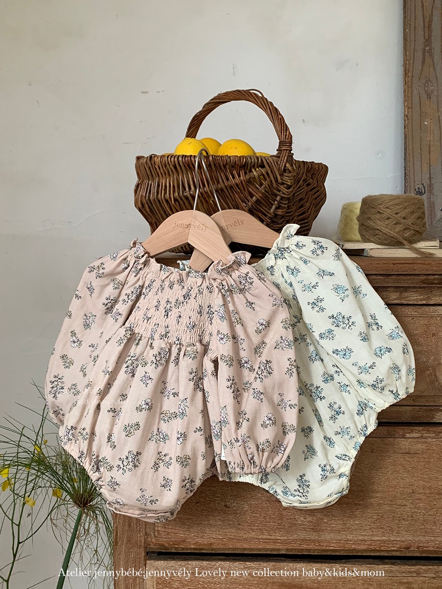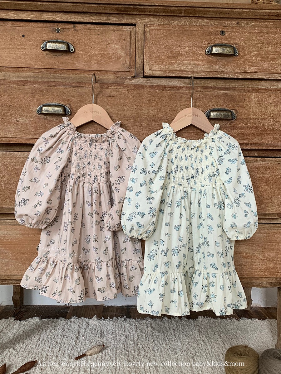 JE569|(66-120cm) 抓皺碎花公主袖包屁衣/洋裝