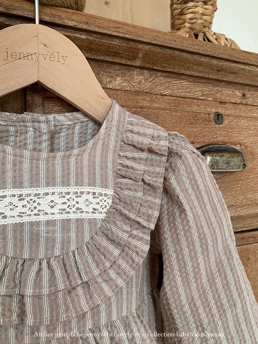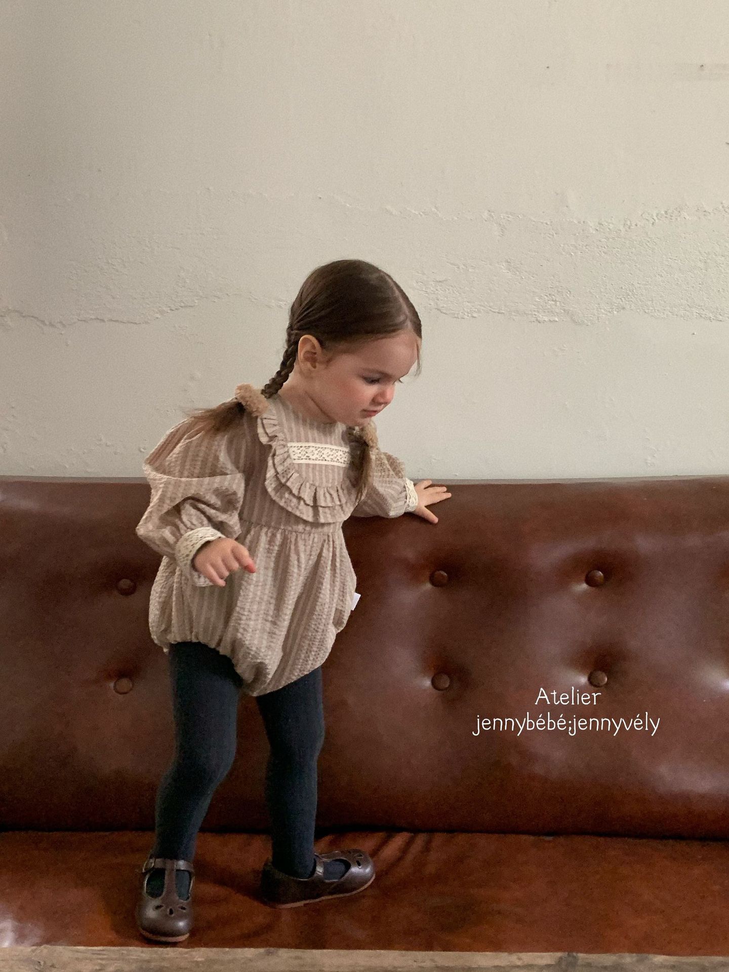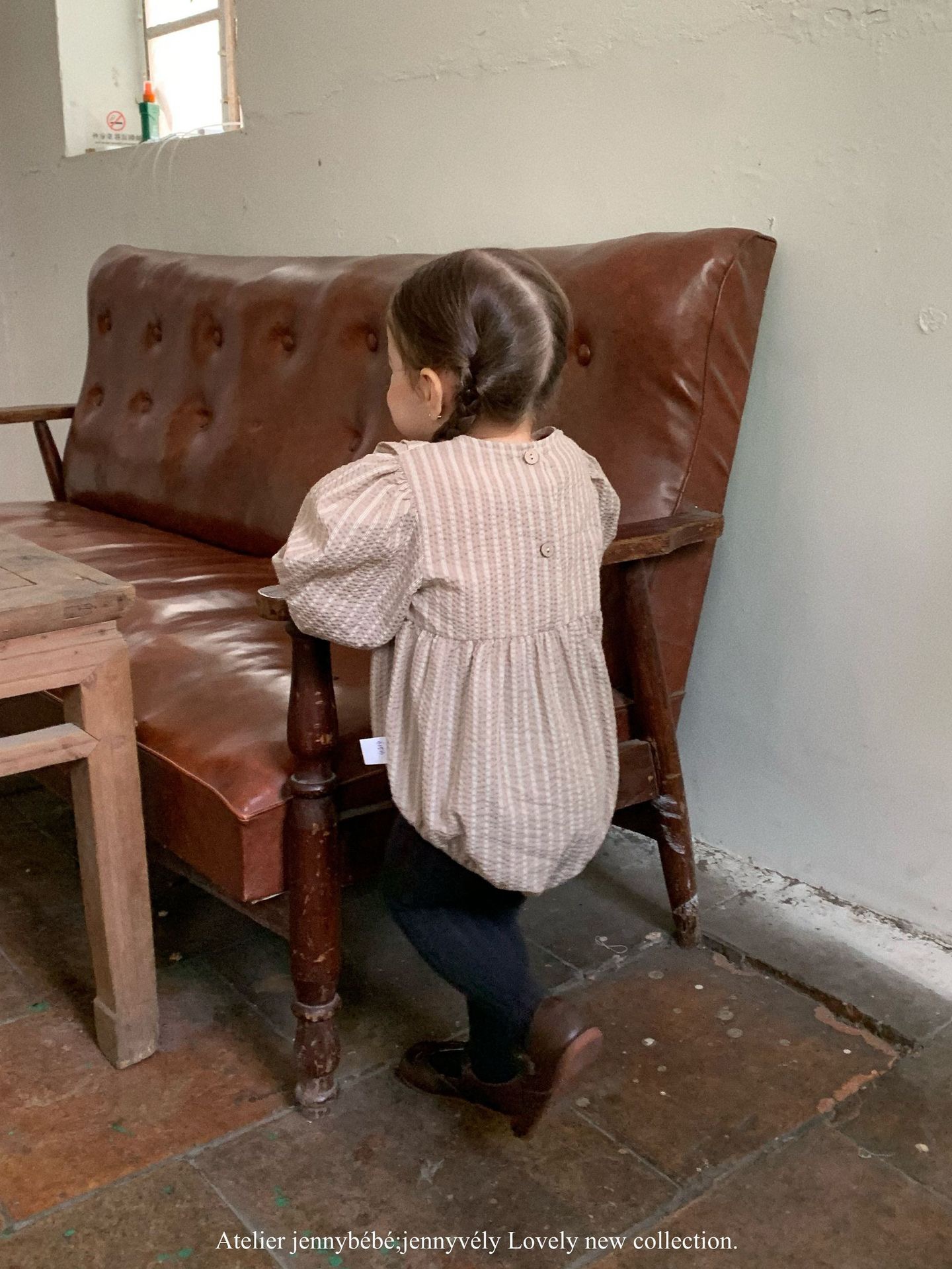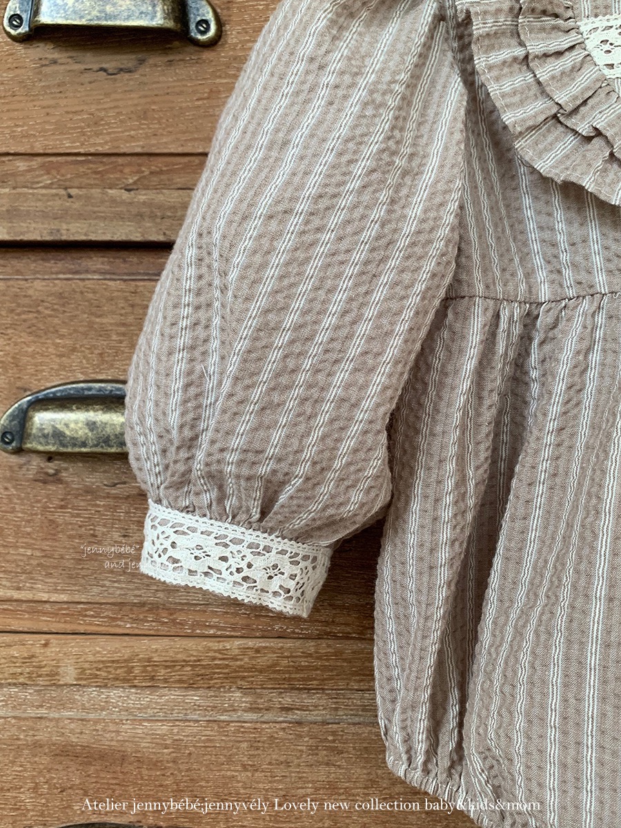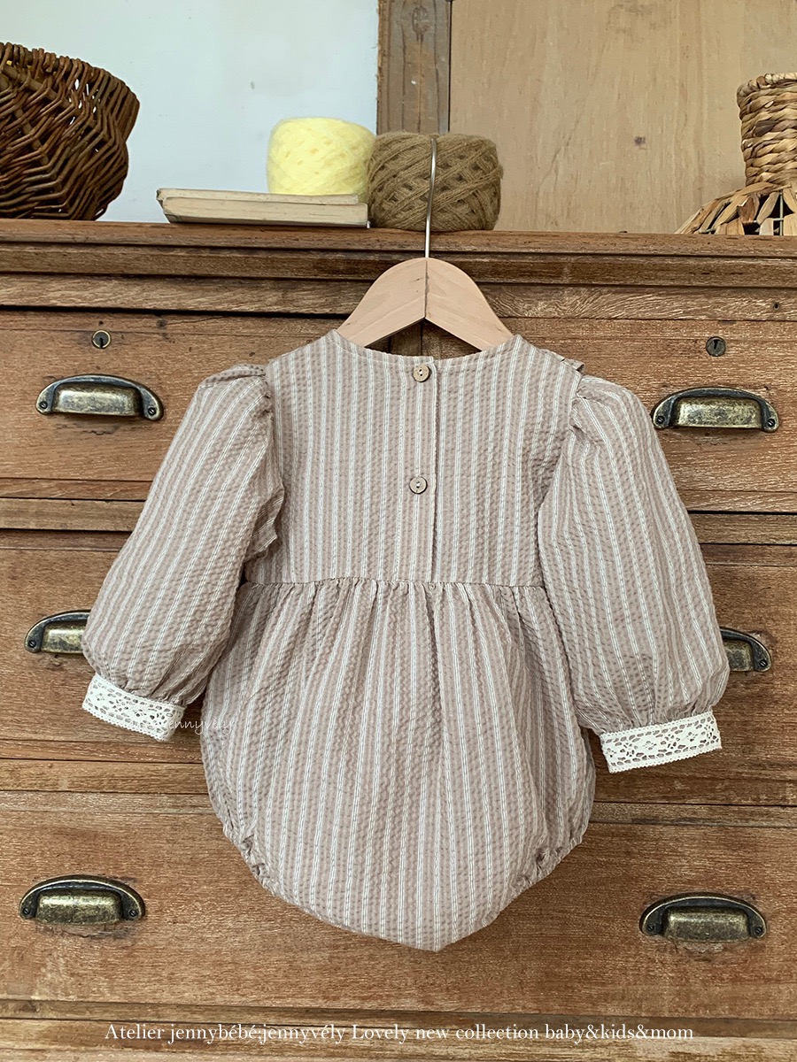 JE574|(66-90cm) 花邊領條紋包屁衣