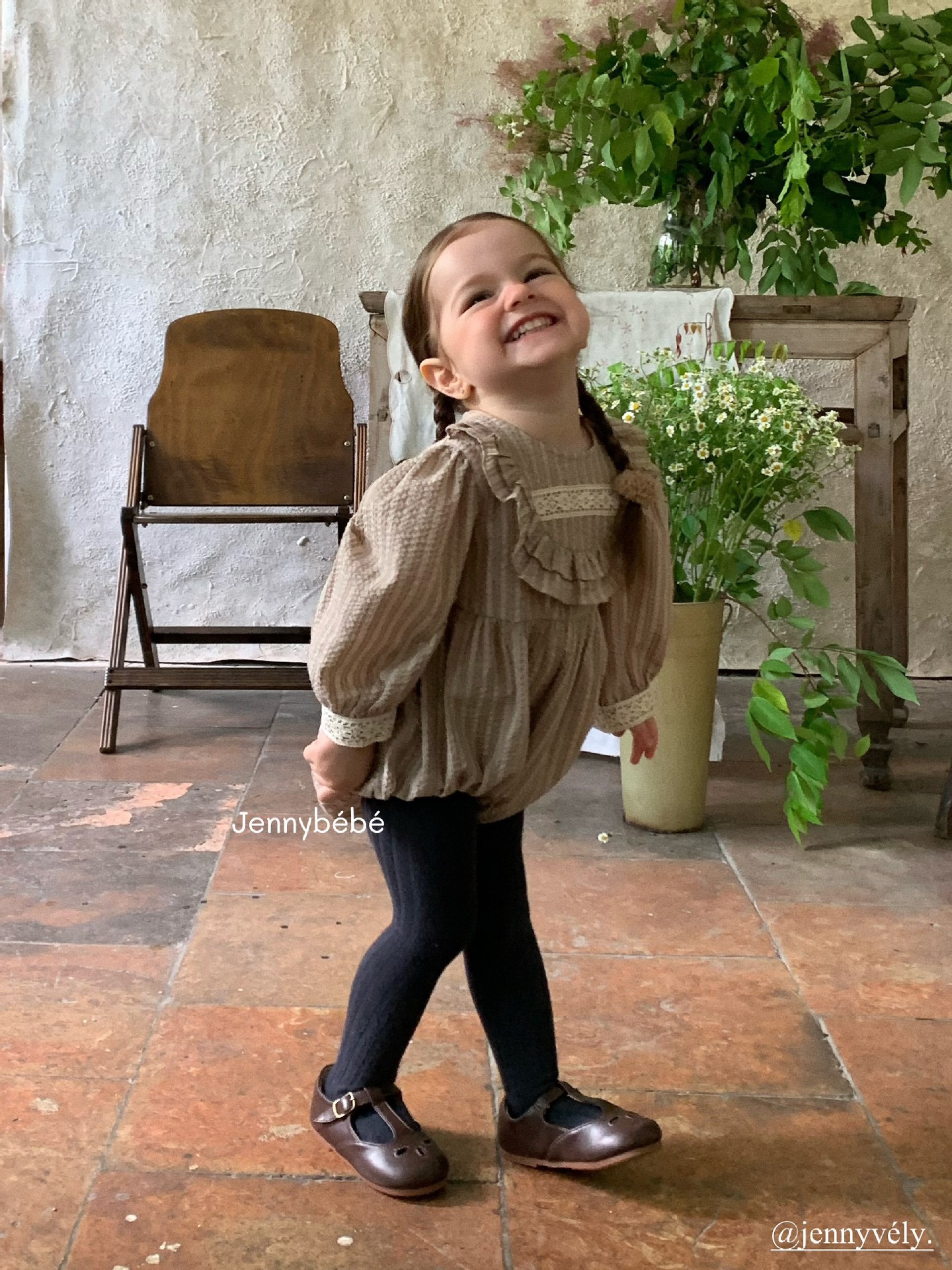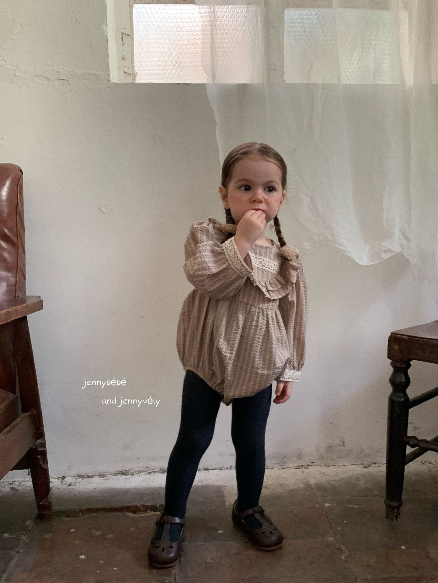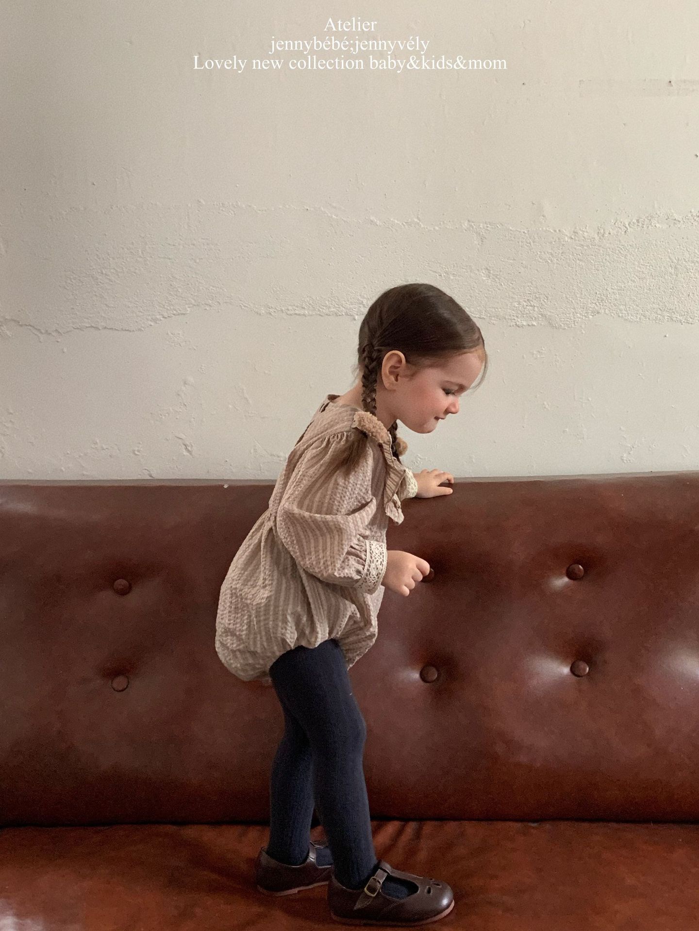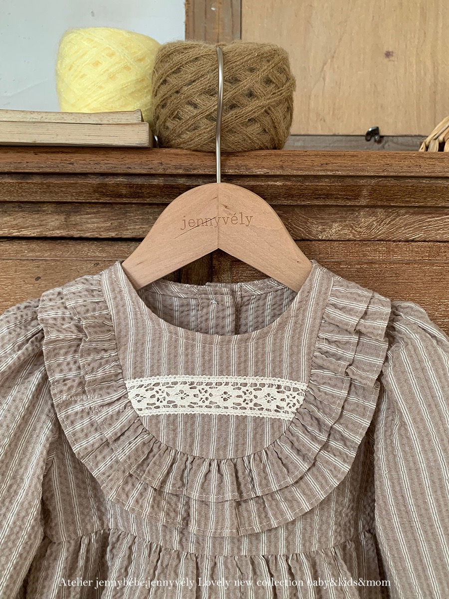 JE574|(66-90cm) 花邊領條紋包屁衣