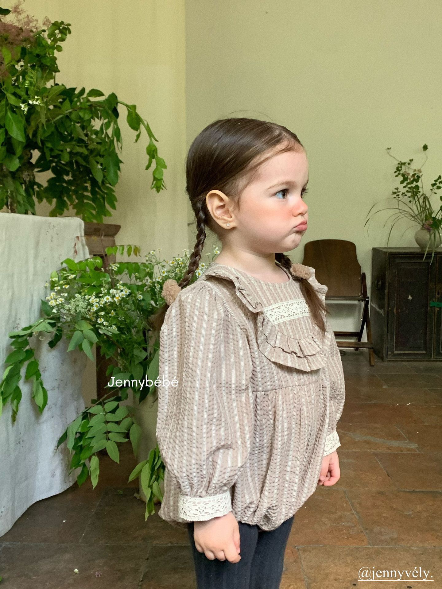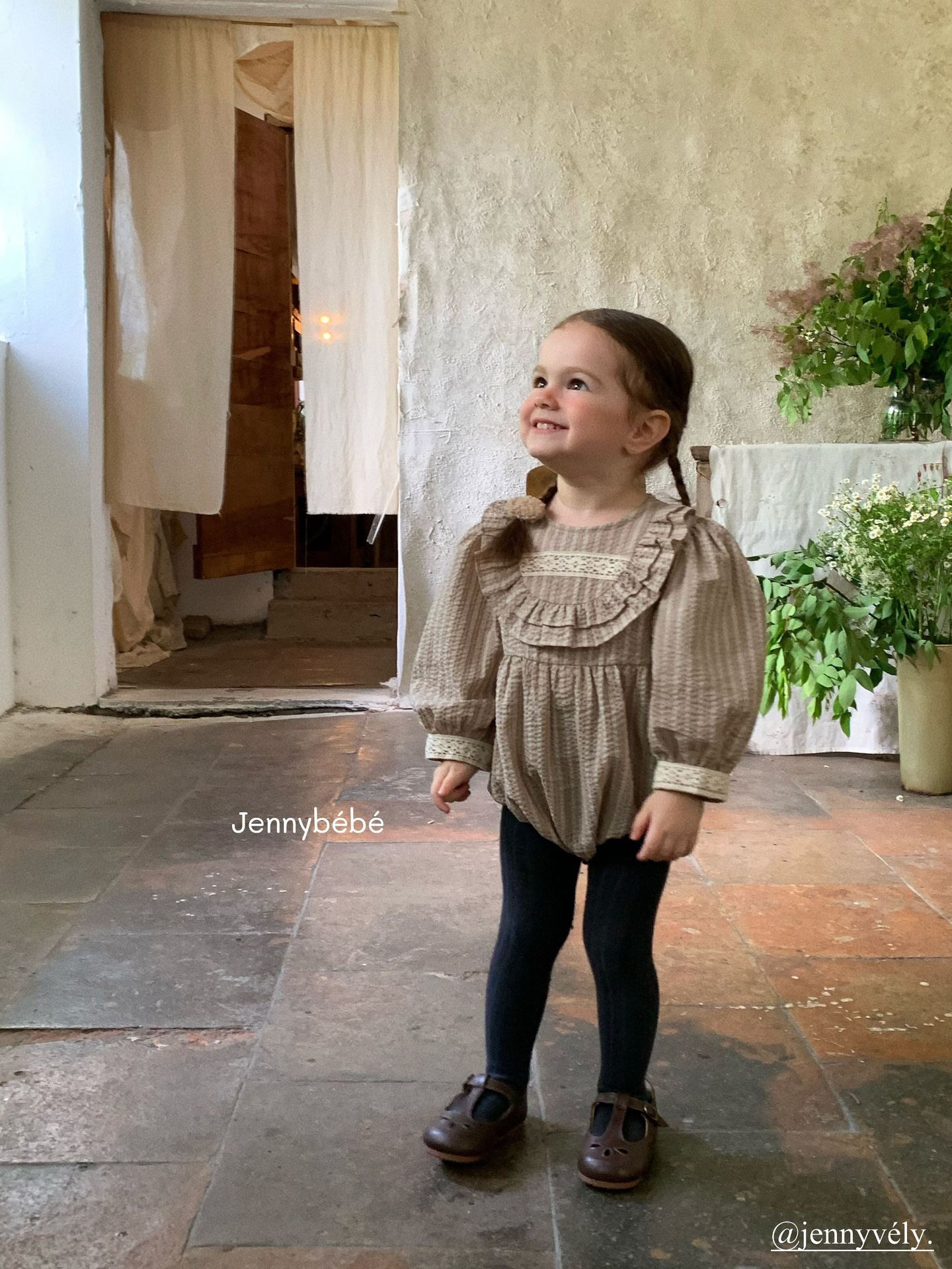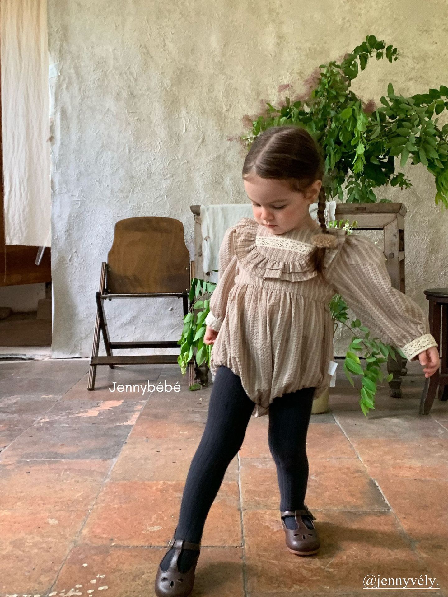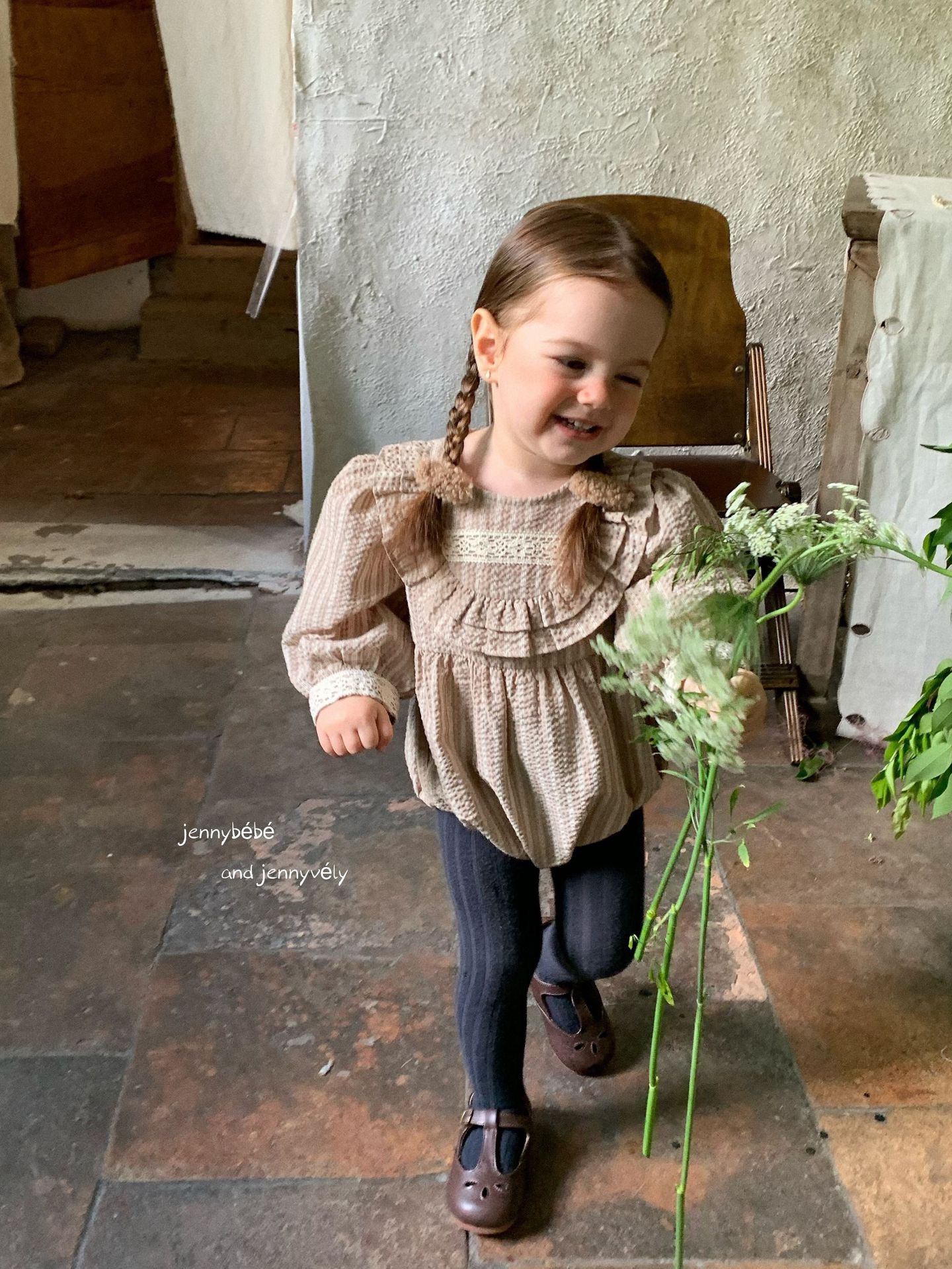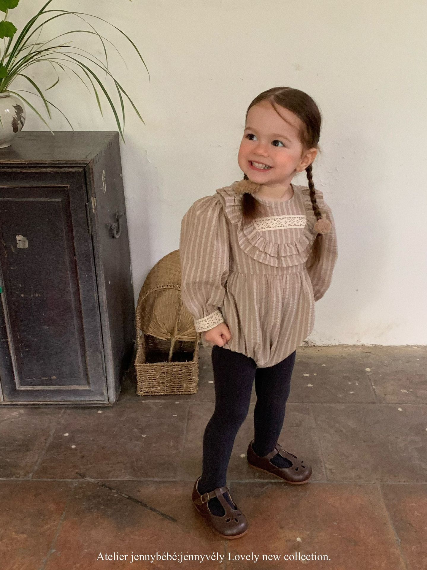 JE574|(66-90cm) 花邊領條紋包屁衣